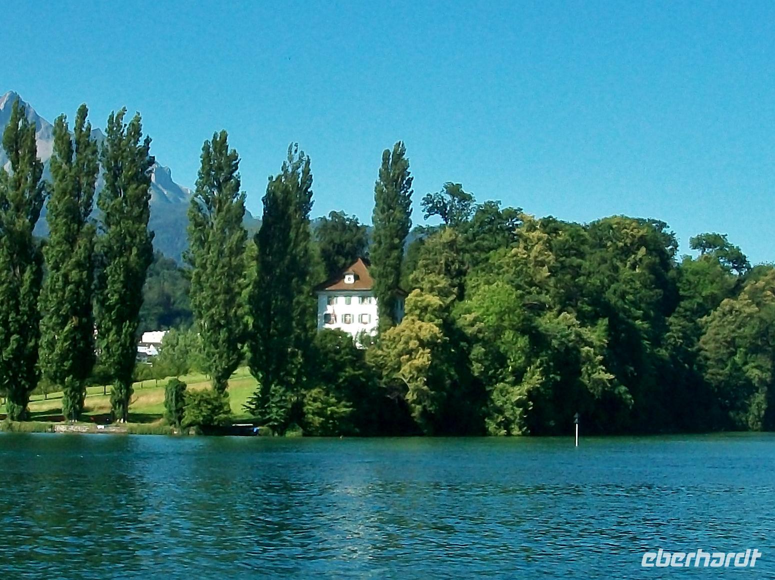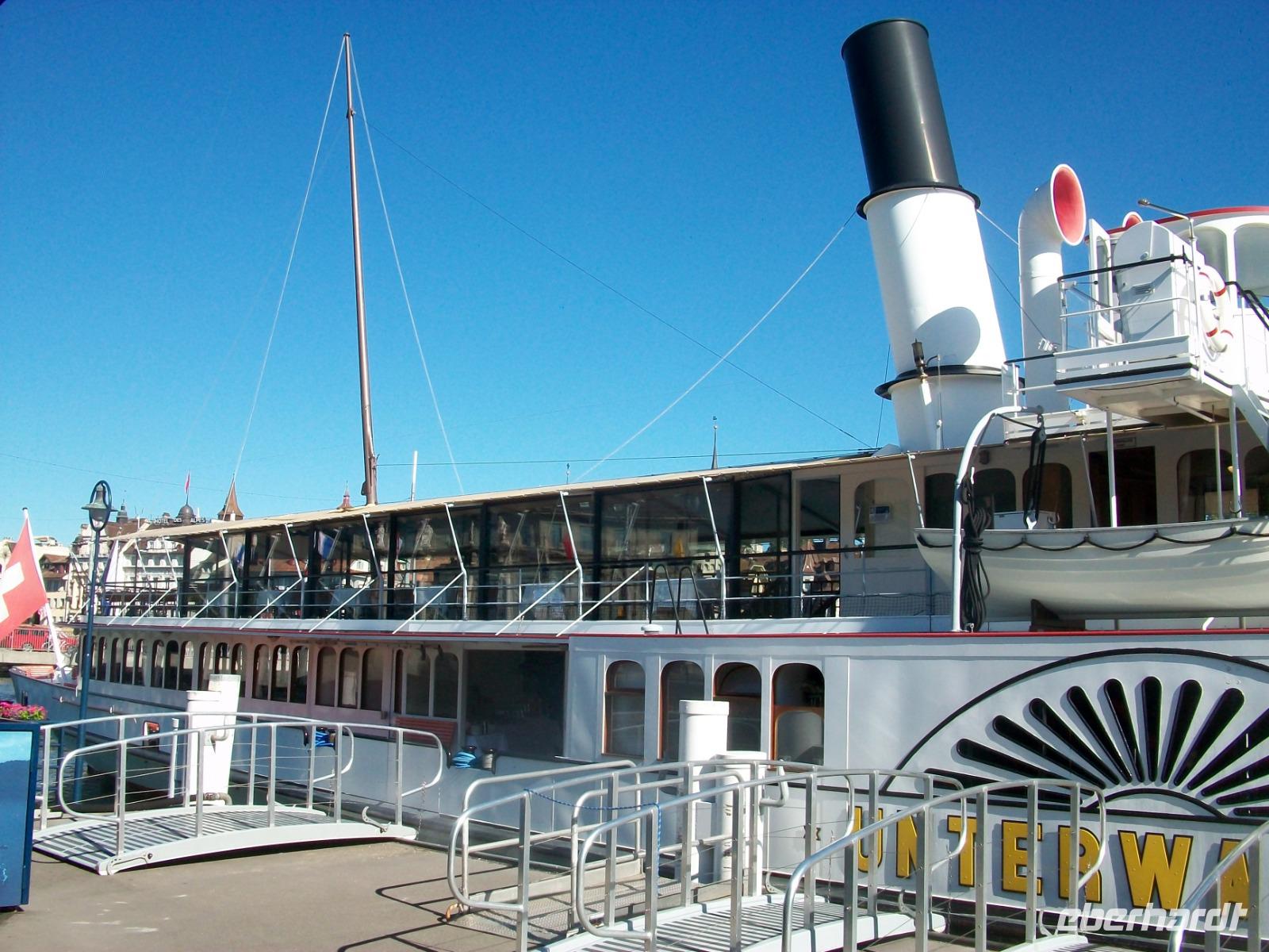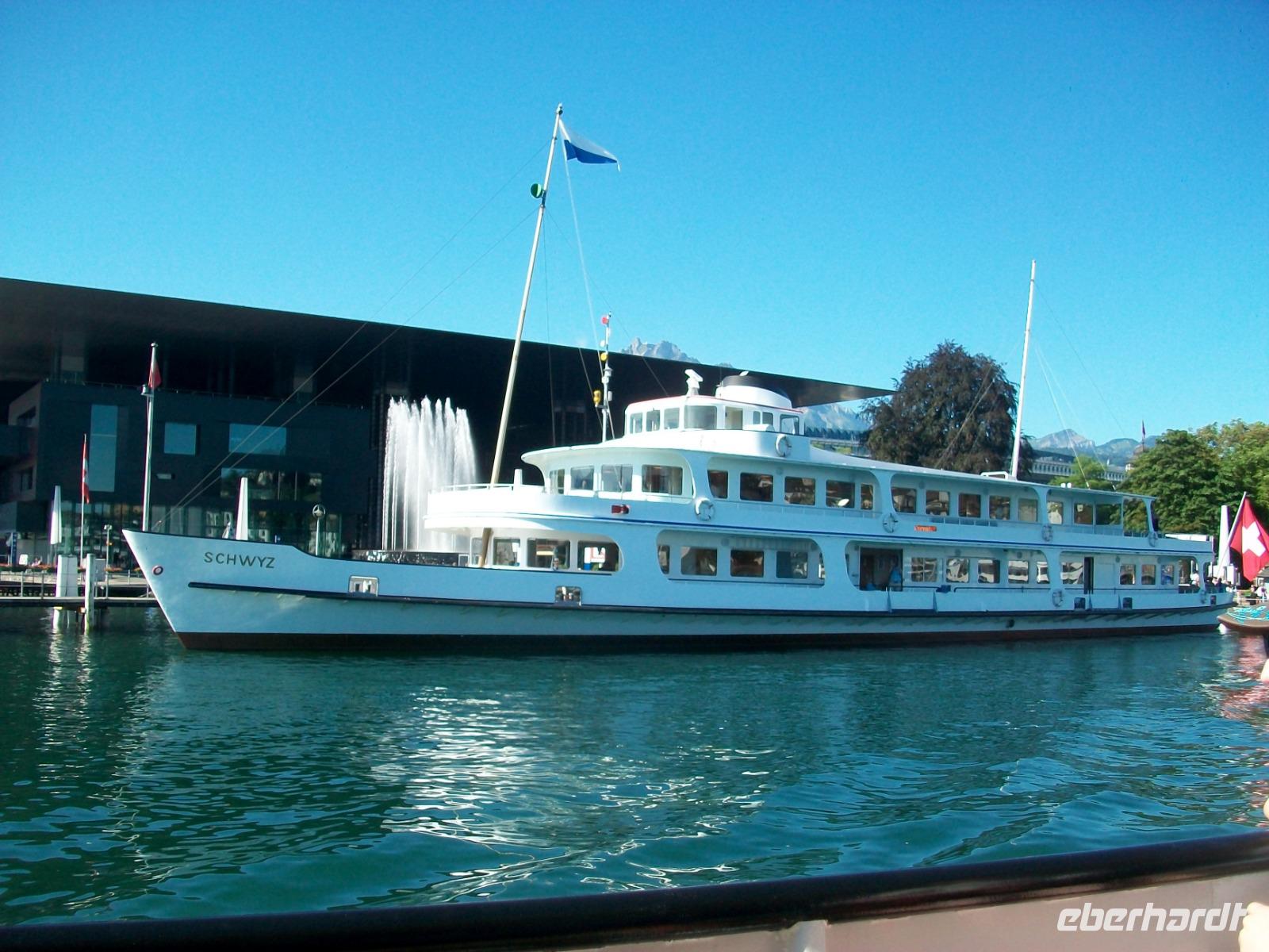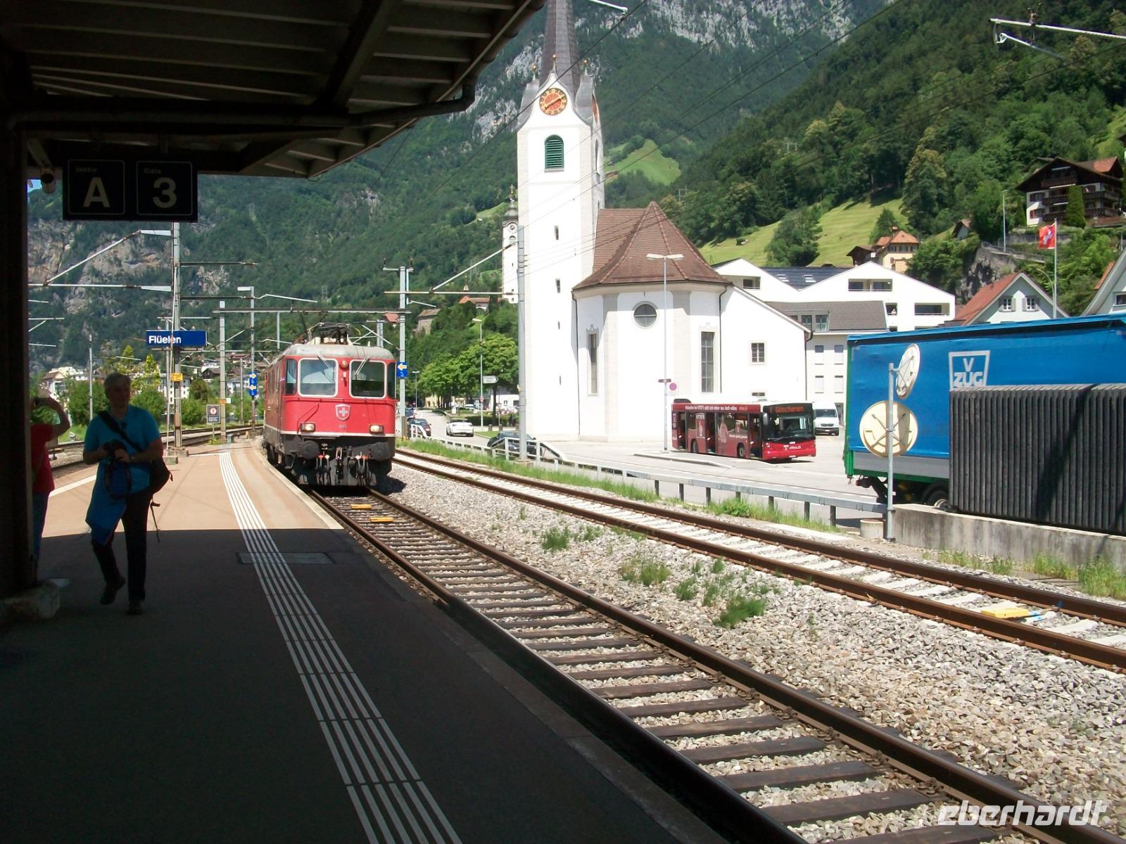 Doch dann, gegen elf, gelangen wir an Bord des Schiffes welches uns hinüber nach Flüelen und somit an das andere Ende des Sees bringen wird. Jeder hat sich ein gemütliches Plätzchen an Deck gesucht, ein Pfiff deutet die Abfahrt an und dann geht es los. Schnell entschwindet Luzern unseren Blicken; das Schiff legt an den wichtigsten Orten des Sees an und neue Passagiere kommen hinzu. Die Sonne wärmt uns, während ein angenehm kühles Lüftchen auf dem See für Erfrischung sorgt, solcherart ist das schlechte Wetter von gestern schnell vergessen! Der Vormittag vergeht, der Mittag kommt und nach kleinem Imbiss an Bord kommt das Ende des Sees schnell näher. In Flüelen verlassen wir das Schiff um in wenigen Metern den Bahnhof zu erreichen. Bald fährt der Zug ein der uns hinüber ins Tessin bringen wird.