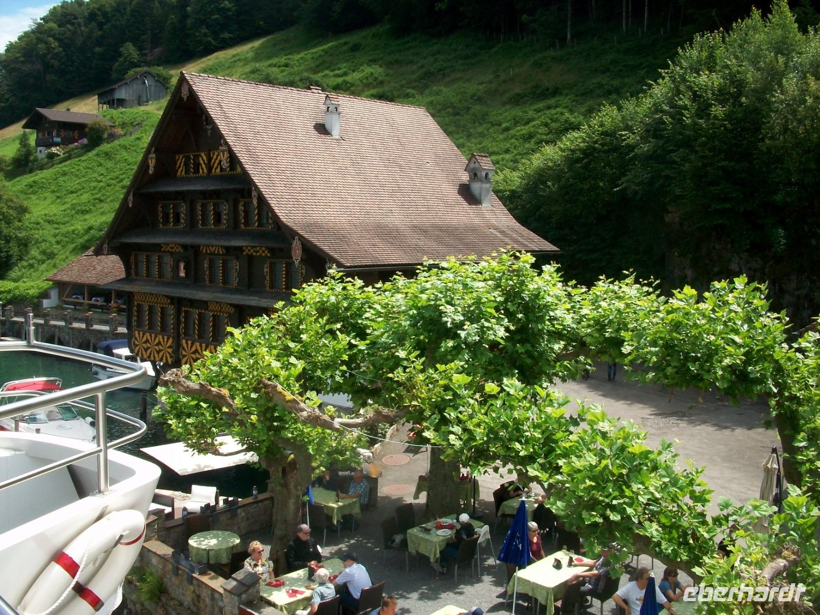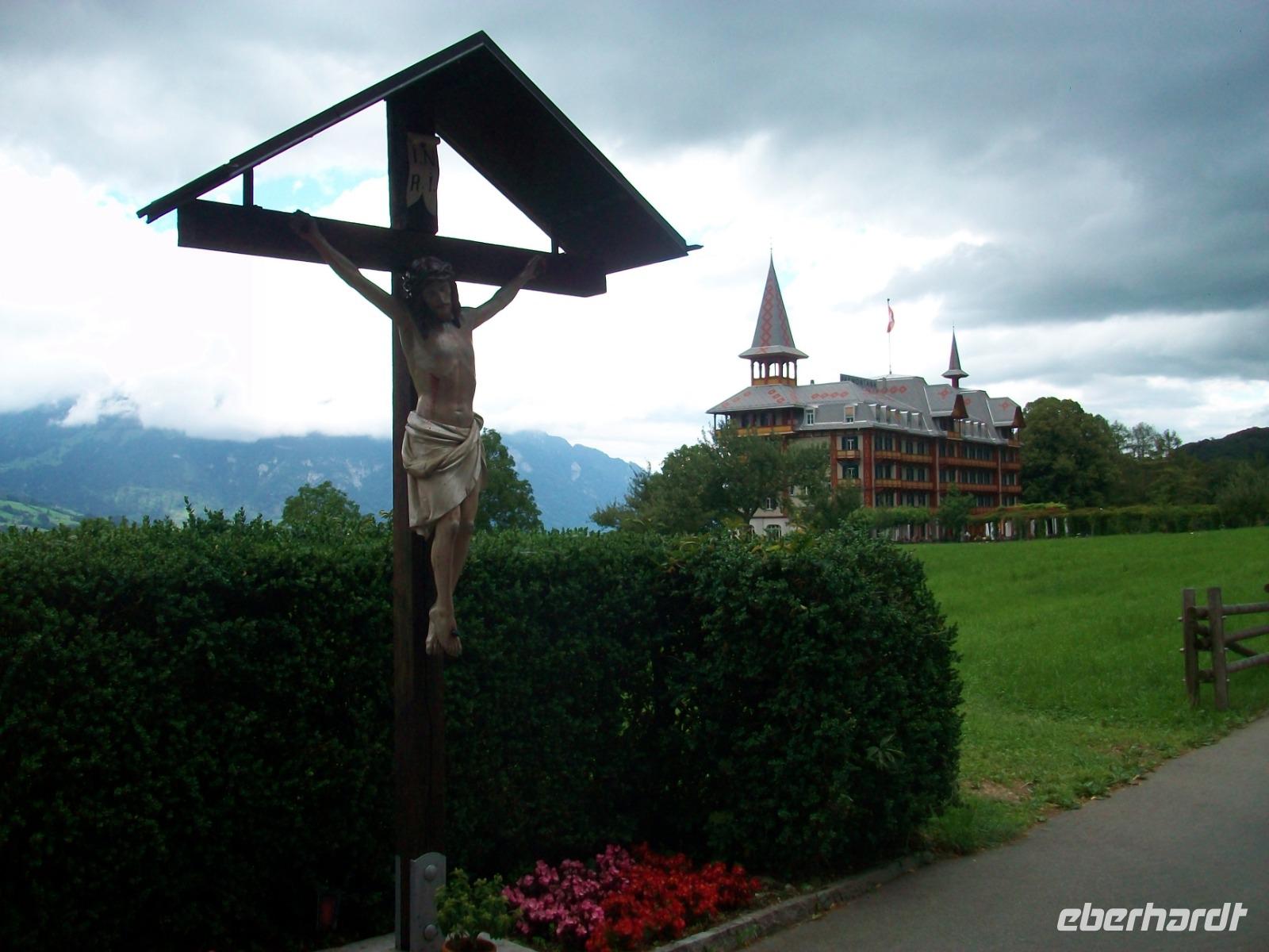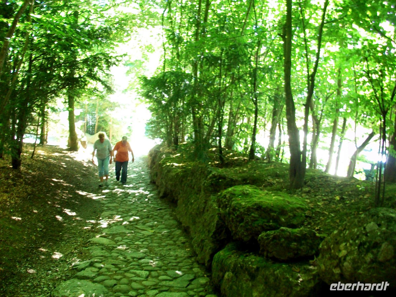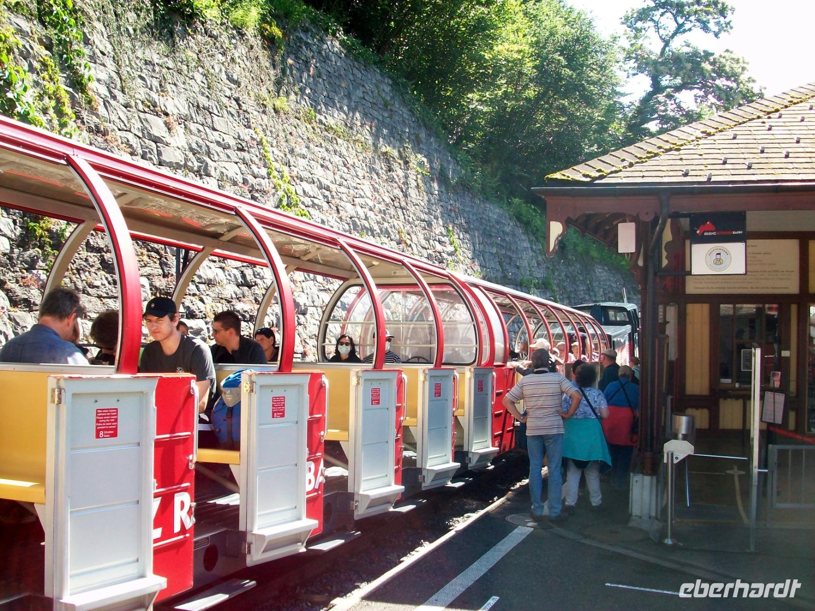 Doch auch hier vergeht die Zeit leider viel zu schnell; die Zahnradbahn, diesmal mit einer Elektrolok, bringt uns hinunter nach Vitznau und hier besteigen wir wieder unsere Busse. Strahlender Sonnenschein begleitet unseren Weg und bei Küssnacht besuchen wir die Hohle Gasse in welcher seinerzeit Wilhelm Tell seinem Widerpart dem Landvogt Gessler auflauerte, so wissen wir es jedenfalls von Friedrich Schiller, denn „...durch diese Hohle Gasse muss er kommen!"