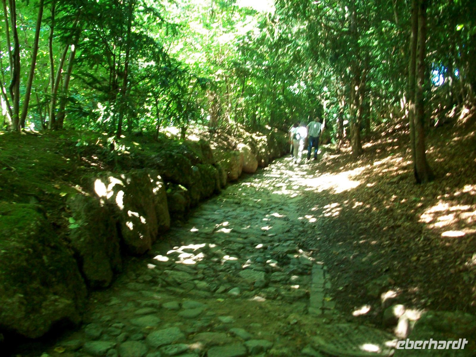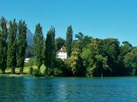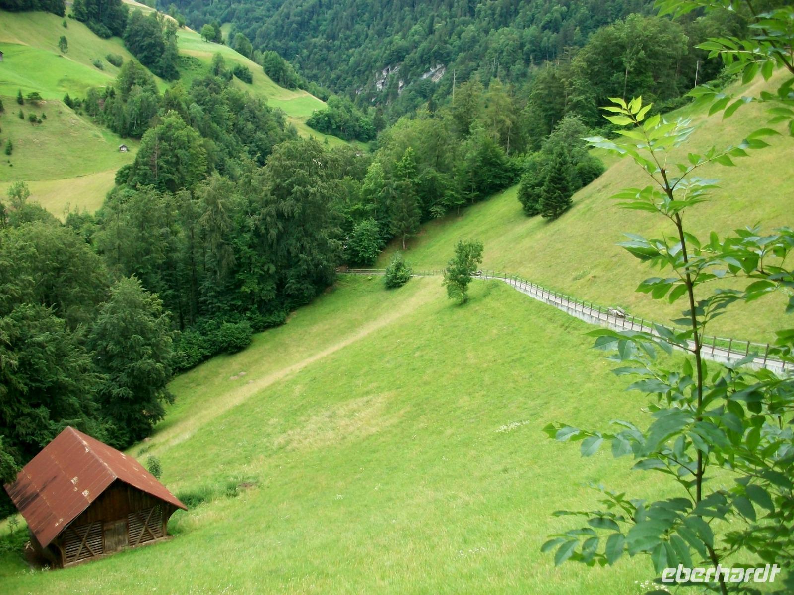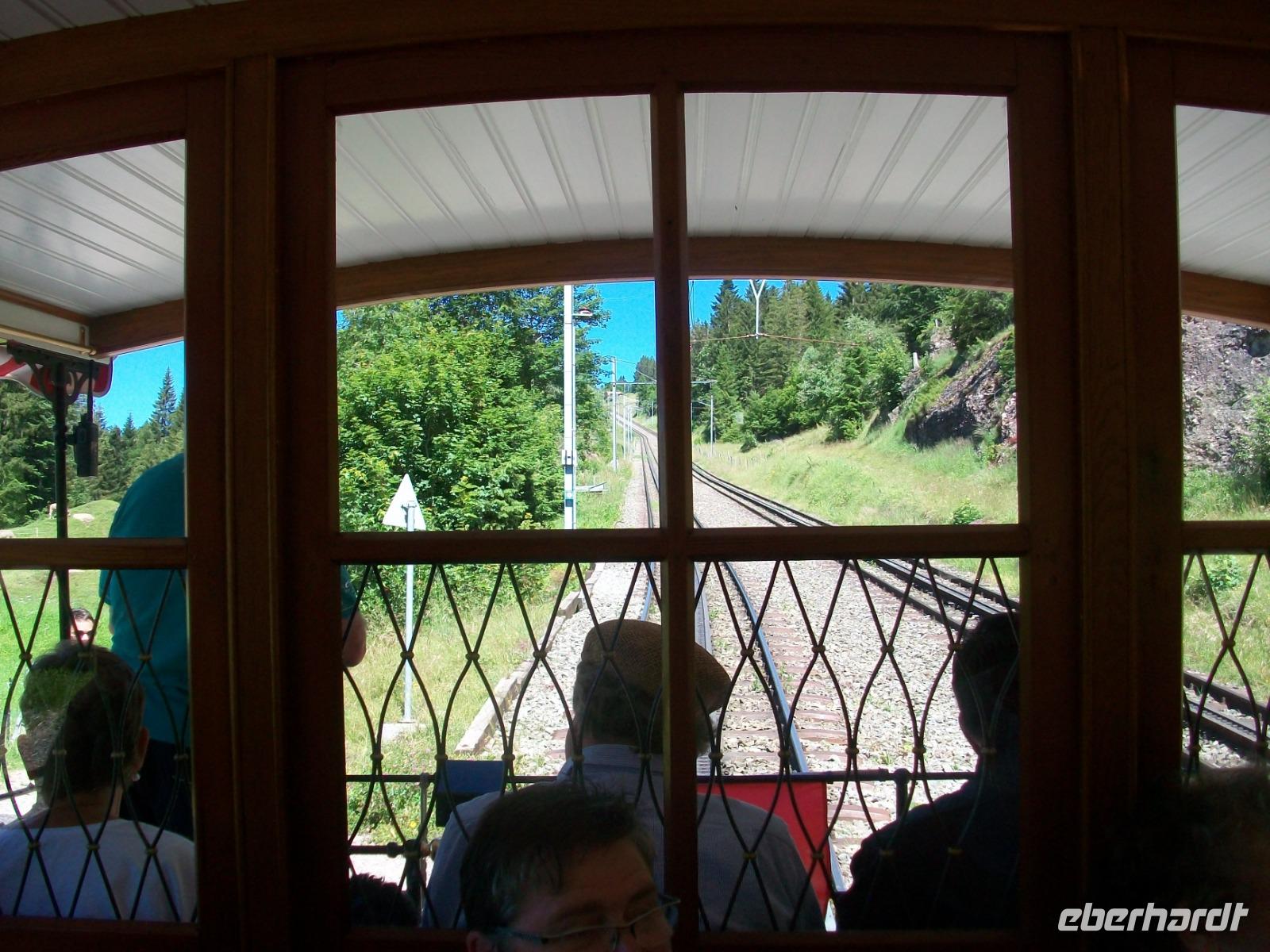 Doch auch hier vergeht die Zeit leider viel zu schnell; die Zahnradbahn, diesmal mit einer Elektrolok, bringt uns hinunter nach Vitznau und hier besteigen wir wieder unsere Busse. Strahlender Sonnenschein begleitet unseren Weg und bei Küssnacht besuchen wir die Hohle Gasse in welcher seinerzeit Wilhelm Tell seinem Widerpart dem Landvogt Gessler auflauerte, so wissen wir es jedenfalls von Friedrich Schiller, denn „...durch diese Hohle Gasse muss er kommen!"