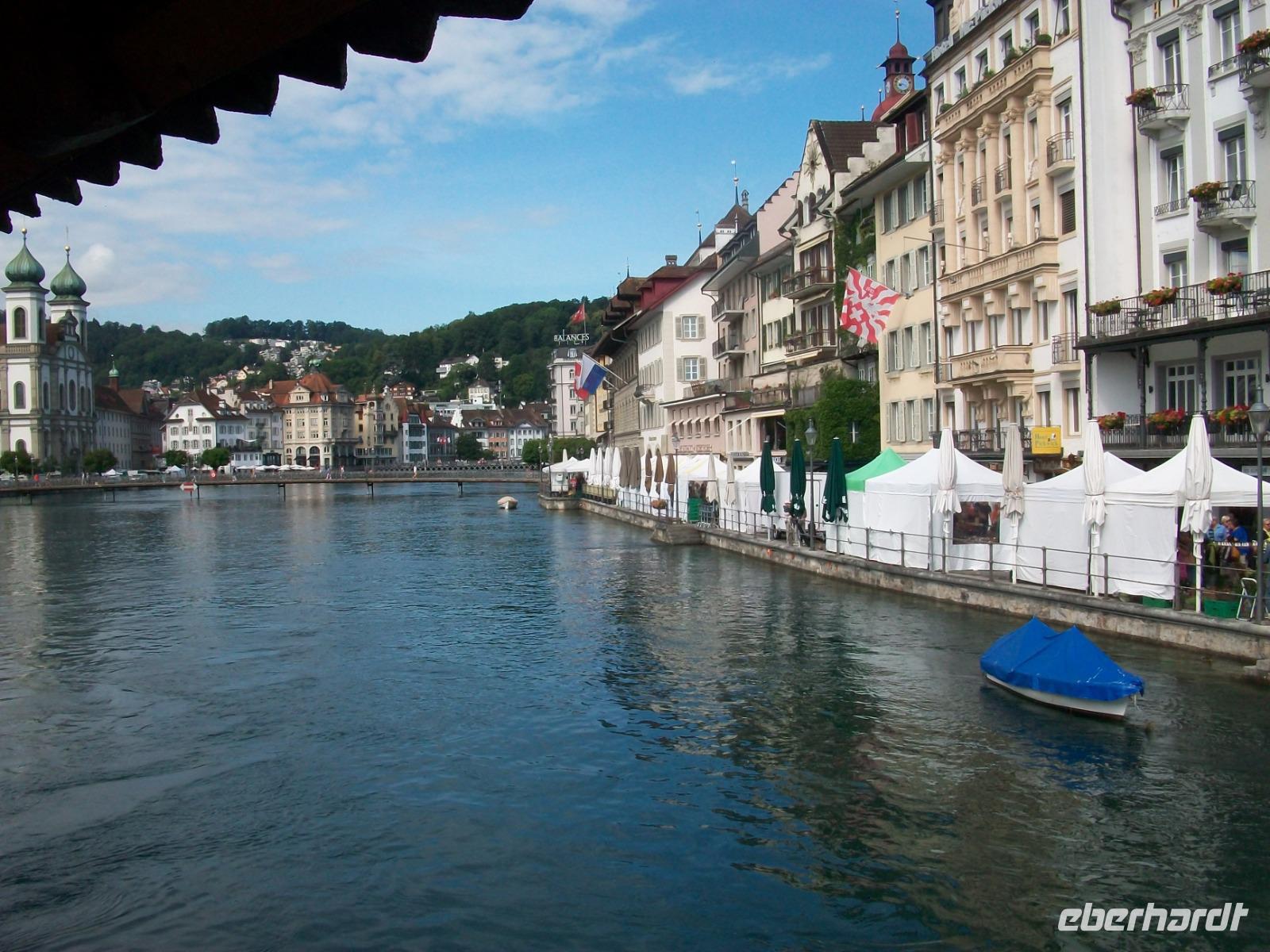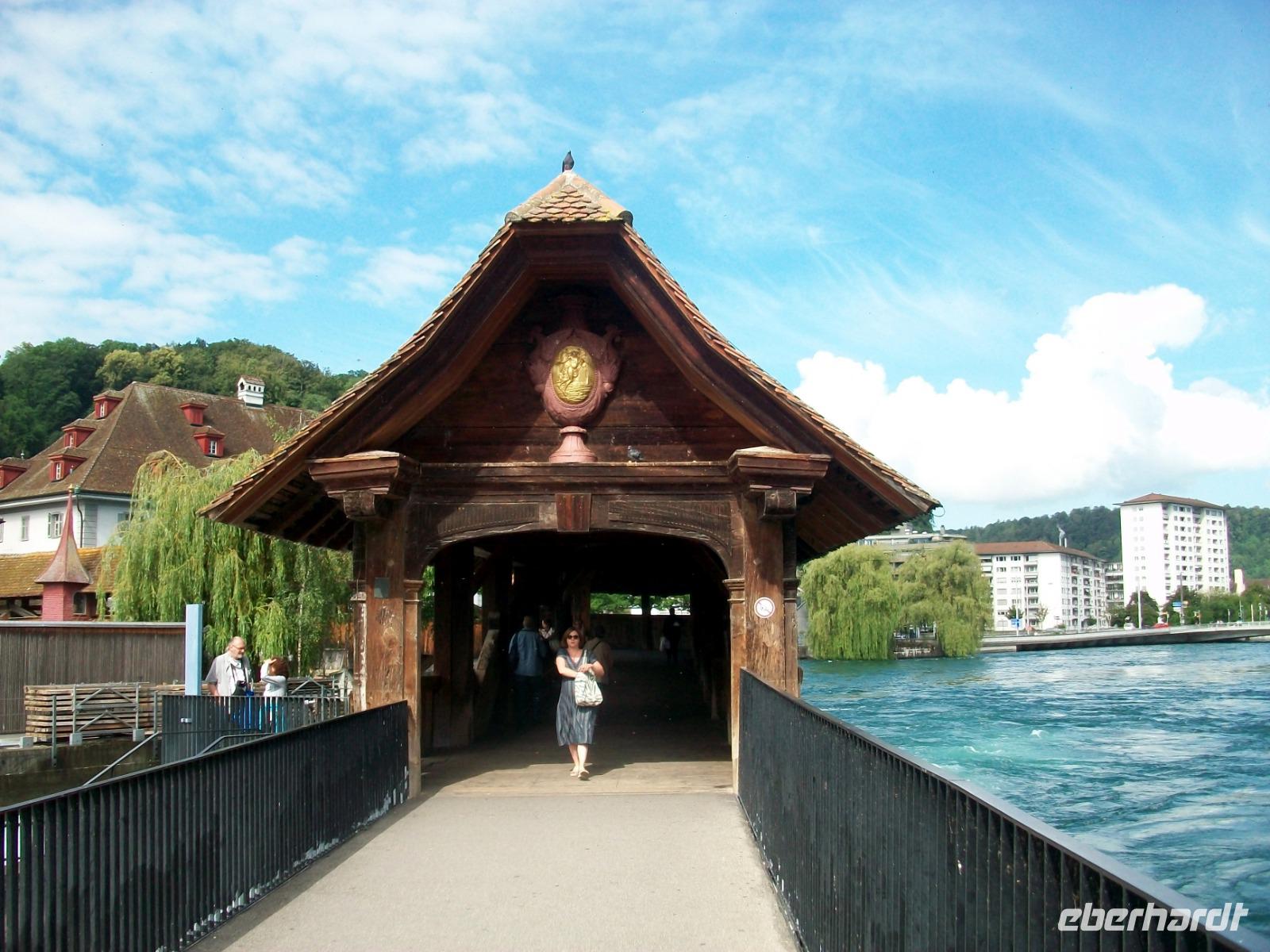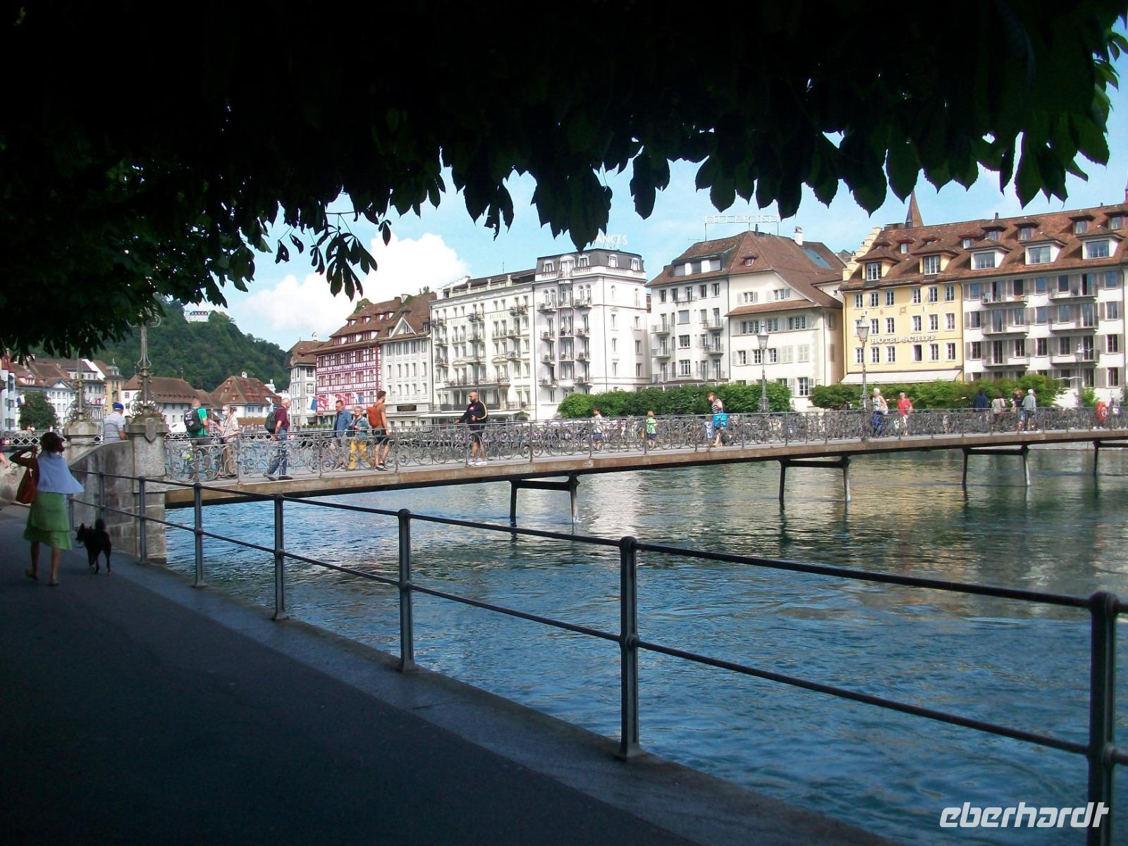4.7.2020. Noch halb in den Träumen gefangen, kitzelt mich ein Sonnenstrahl aus dem Schlaf. Alles Trübe ist geschwunden, die Wolken fast aufgelöst und somit ist die Welt des Touristen wieder in Ordnung. Ein besonderes Erlebnis erwartet uns heute, und voller Optimismus verlassen wir die Hochebene von Flüeli Ranft um in Richtung Luzern einzuschwenken. Gesäumt von Pilatus und Stanserhorn gelangen wir an den Vierwaldstättersee und, vom großen Parkplatz hier, zu Fuß zum Zentrum. Hier gönnen wir uns ein Stündchen zum Bummeln in die reizvolle Altstadt von Luzern hinein und natürlich ist der Gang über die berühmte Kapellbrücke ein zwingendes Muss!