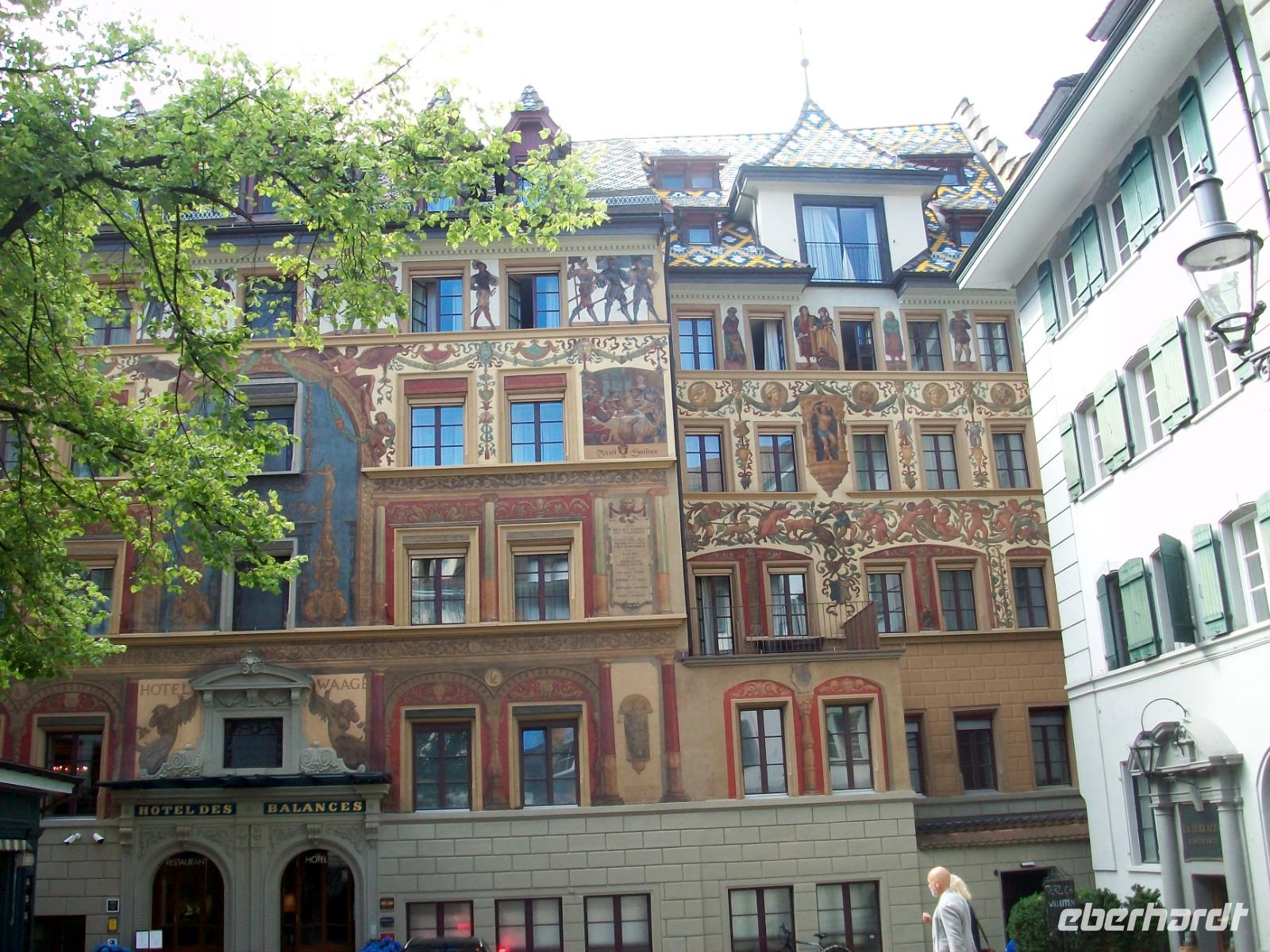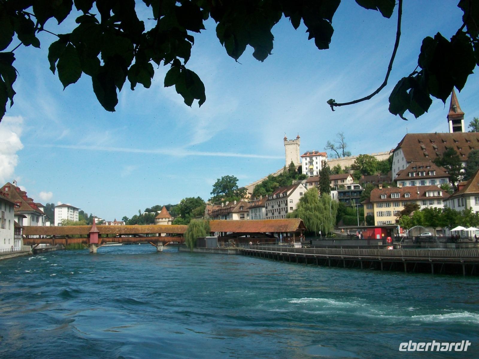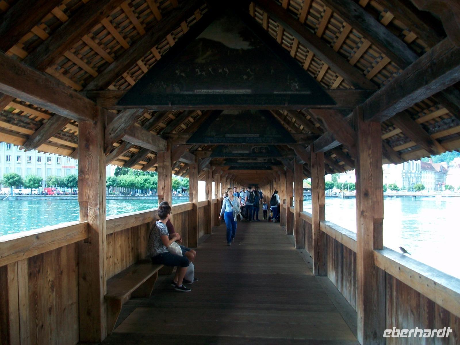 4.7.2020. Noch halb in den Träumen gefangen, kitzelt mich ein Sonnenstrahl aus dem Schlaf. Alles Trübe ist geschwunden, die Wolken fast aufgelöst und somit ist die Welt des Touristen wieder in Ordnung. Ein besonderes Erlebnis erwartet uns heute, und voller Optimismus verlassen wir die Hochebene von Flüeli Ranft um in Richtung Luzern einzuschwenken. Gesäumt von Pilatus und Stanserhorn gelangen wir an den Vierwaldstättersee und, vom großen Parkplatz hier, zu Fuß zum Zentrum. Hier gönnen wir uns ein Stündchen zum Bummeln in die reizvolle Altstadt von Luzern hinein und natürlich ist der Gang über die berühmte Kapellbrücke ein zwingendes Muss!