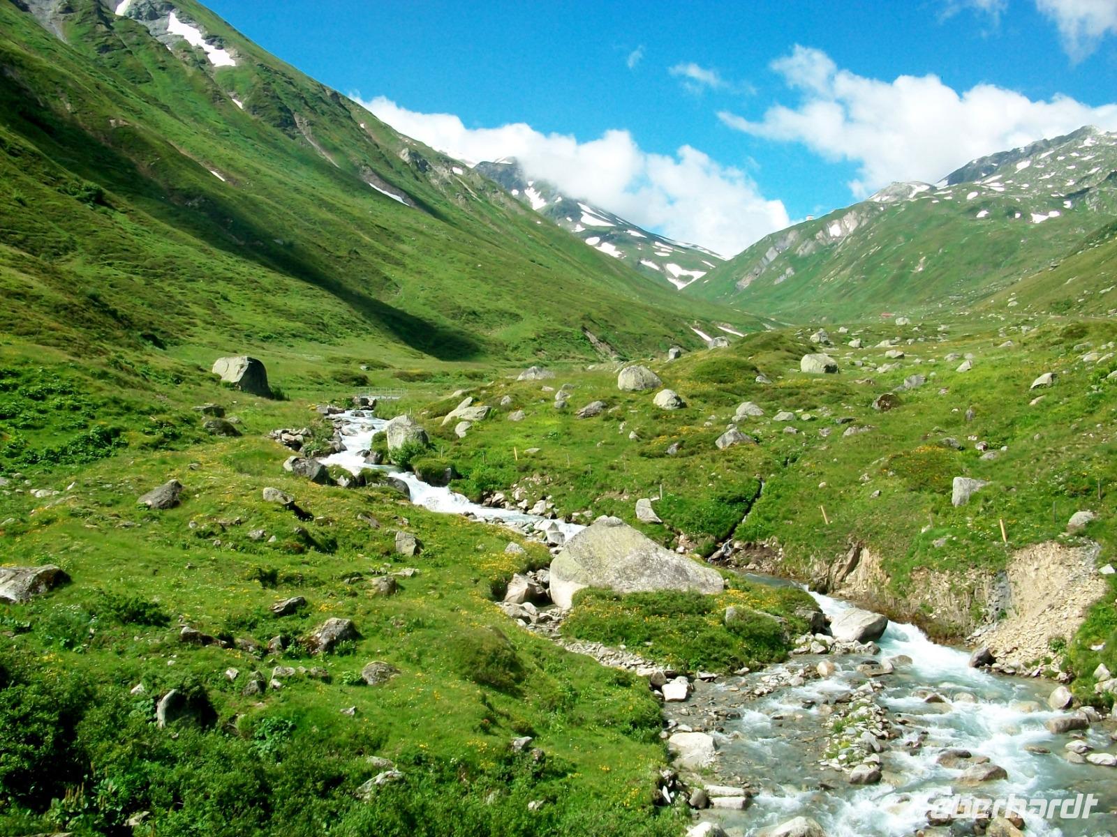 7.7.2020. Petrus macht uns das Abschiednehmen recht schwer. Über den Bergen ringsum hat sich ein fast wolkenloser blauer Himmel aufgespannt und die Sonne lacht uns entgegen als die freundliche Crew des Hotels uns ein letztes Lebewohl zuwinkt. Schöne Tage haben wir bei euch verbringen können und dafür danken wir, auch mit einer kleine Träne die wir uns schnell aus den Augenwinkeln wischen.