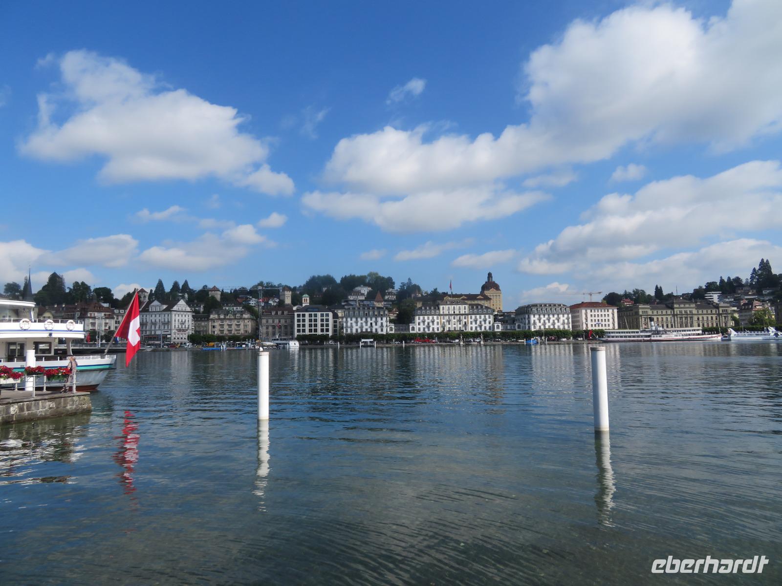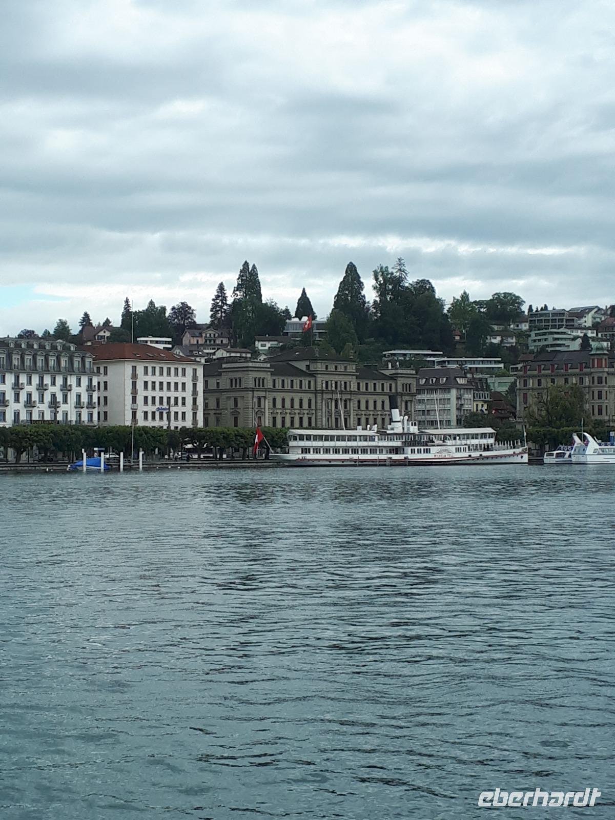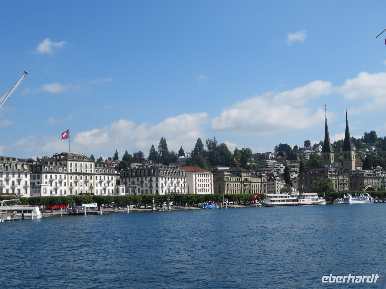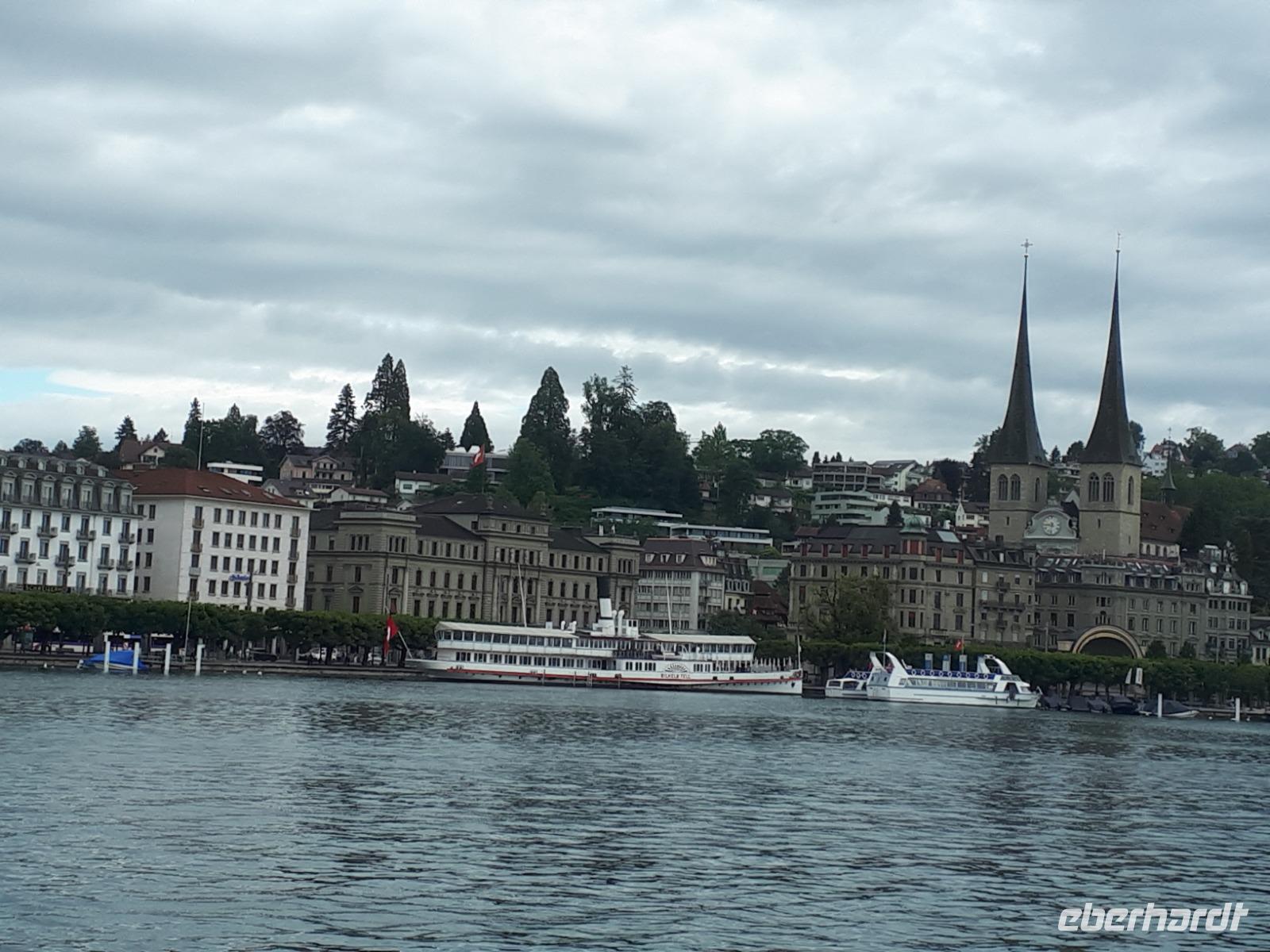Nach dem Frühstück beginnt unser Ausflug zunächst mit der Busfahrt nach Luzern. Hier spazieren wir über die Kapellbrücke, das Wahrzeichen der Stadt. Einige der historischen Bilder im Giebel der Brücke und die Spuren des Brandes vom 17.08.1993 können wir noch sehen. Die schönen Bürgerhäuser und das Rathaus prägen die wunderschöne Ansicht der Stadt am Vierwaldstättersee. Unser kleiner Rundgang bringt uns zum Fritschi-Brunnen und zum Fritschi-Haus. Fritschi mit seiner Frau stellen die Hauptfiguren der Luzerner Fasnacht dar. Anschließend gehen wir zur Anlegestelle des Schiffes. Wir gehen auf dem Raddampfer „Stadt Luzern" an Bord, das historische Schiff der Flotte der Vierwaldstättesee-Schifffahrtsgesellschaft wurde in den letzten Jahren restauriert und ist erst seit wenigen Wochen wieder auf dem See unterwegs. Mit dem Schiff gleiten wir in der 1.Klasse über den See. Dabei sehen wir die Rigi, den Pilatus und die Mythen. Im Urnersee grüßen uns der Schillerstein und die Rütli-Wiese, wo 1291 der berühmte Rütlischwur vollzogen wurde. Der Schwur besiegelte die Geburtsstunde der Schweiz. Die Route führt uns vorbei an der Tellsplatte und der herrlichen Landschaft rund um den See nach Flüelen. Hier steht bereits der Gotthard Panorama Express bereits. Im Panoramawagen der 1.Klasse sind unsere Plätze bereits reserviert und unsere Reise in den Süden beginnt. Reinhard, der nette Reiseleiter versorgt uns mit vielen interessanten Informationen zu der imposanten Bahnstrecke. Wir bestaunen die Meisterleistungen der Erbauer der Strecke mit ihren vielen Viadukten, Kehrtunneln und dem 15 Kilometer langen alten Gotthard-Tunnel. Die Eröffnung des Tunnels erfolgte nach 8jähriger Bauzeit 1880. Über 3.000 Arbeiter erbauten unter widrigen Bedingungen das für damalige Zeiten einmalige Tunnelbauwerk. Wir sind fasziniert. In Bellinzona, der Hauptstadt des Kantons Tessin verlassen wir den Gotthard Panorama Express. Nach einem ganz kurzen Aufenthalt besteigen wir den Euro-City-Zug. Jetzt geht die Fahrt durch den Gotthard Basistunnel, den mit 57 Kilometern längsten Tunnel der Welt. Er wurde 2017 eröffnet und stellt eine Meisterleistung des modernen Tunnelbaus dar. Nur 20 Minuten fährt der Zug mit einer Höchstgeschwindigkeit von bis zu 190 km/h durch den Tunnel. Von Arth-Goldau reisen wir mit dem Bus zum Hotel zurück. Auch dieser Tag hat uns schöne Erlebnisse beschert.