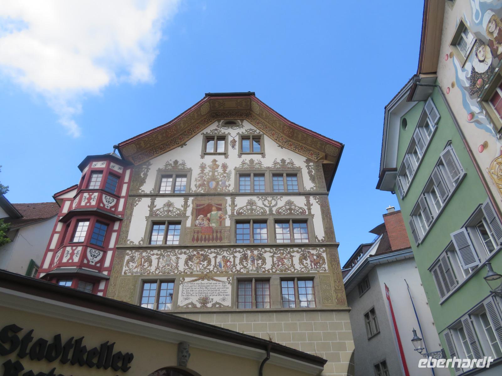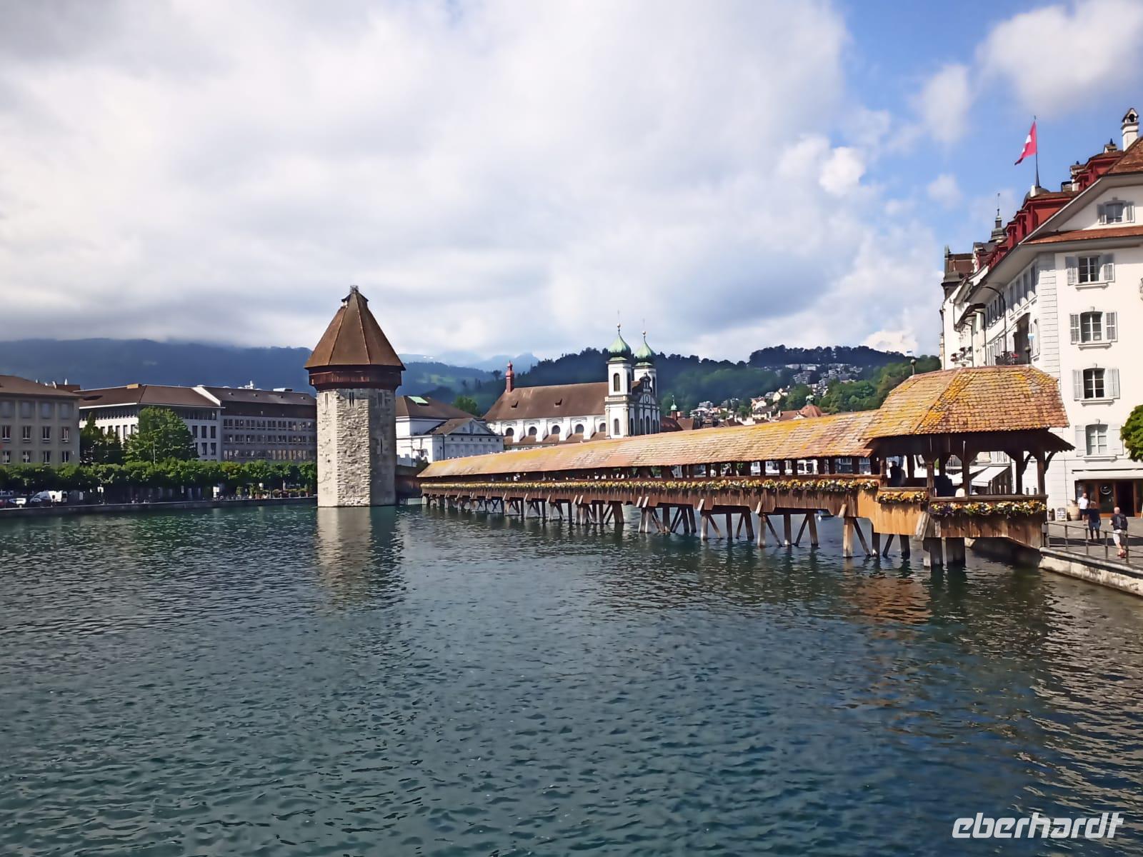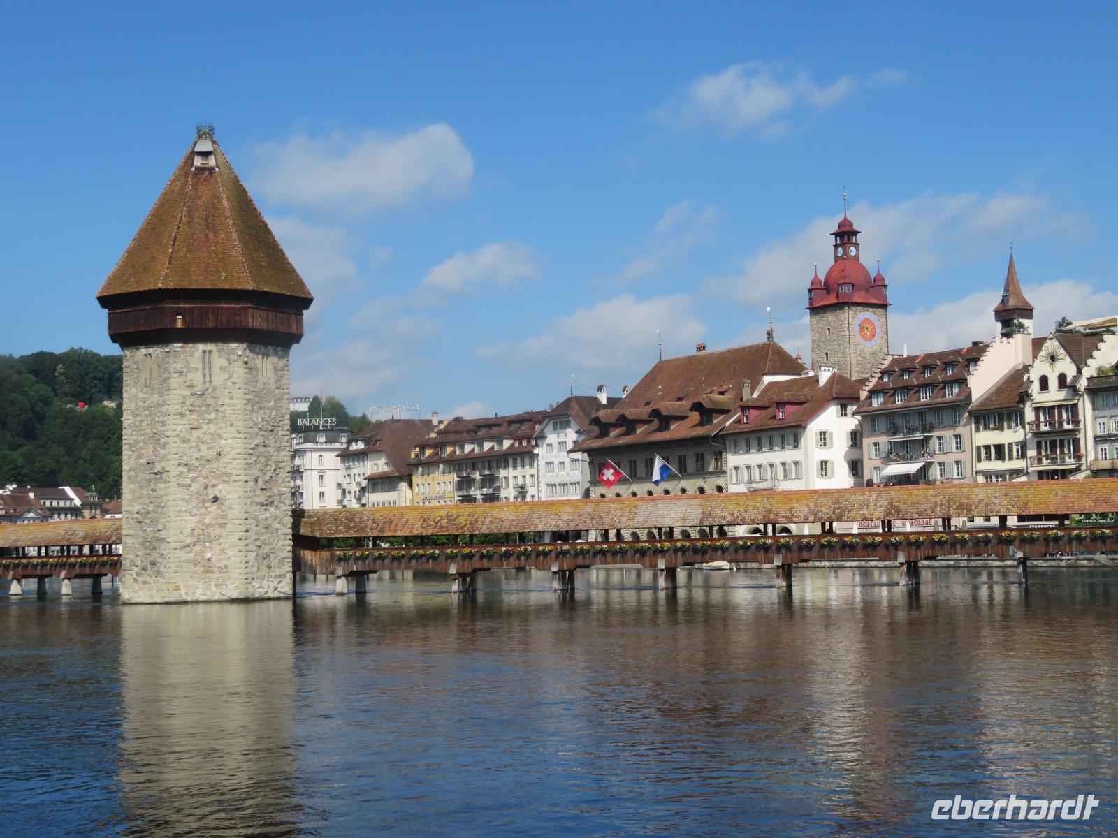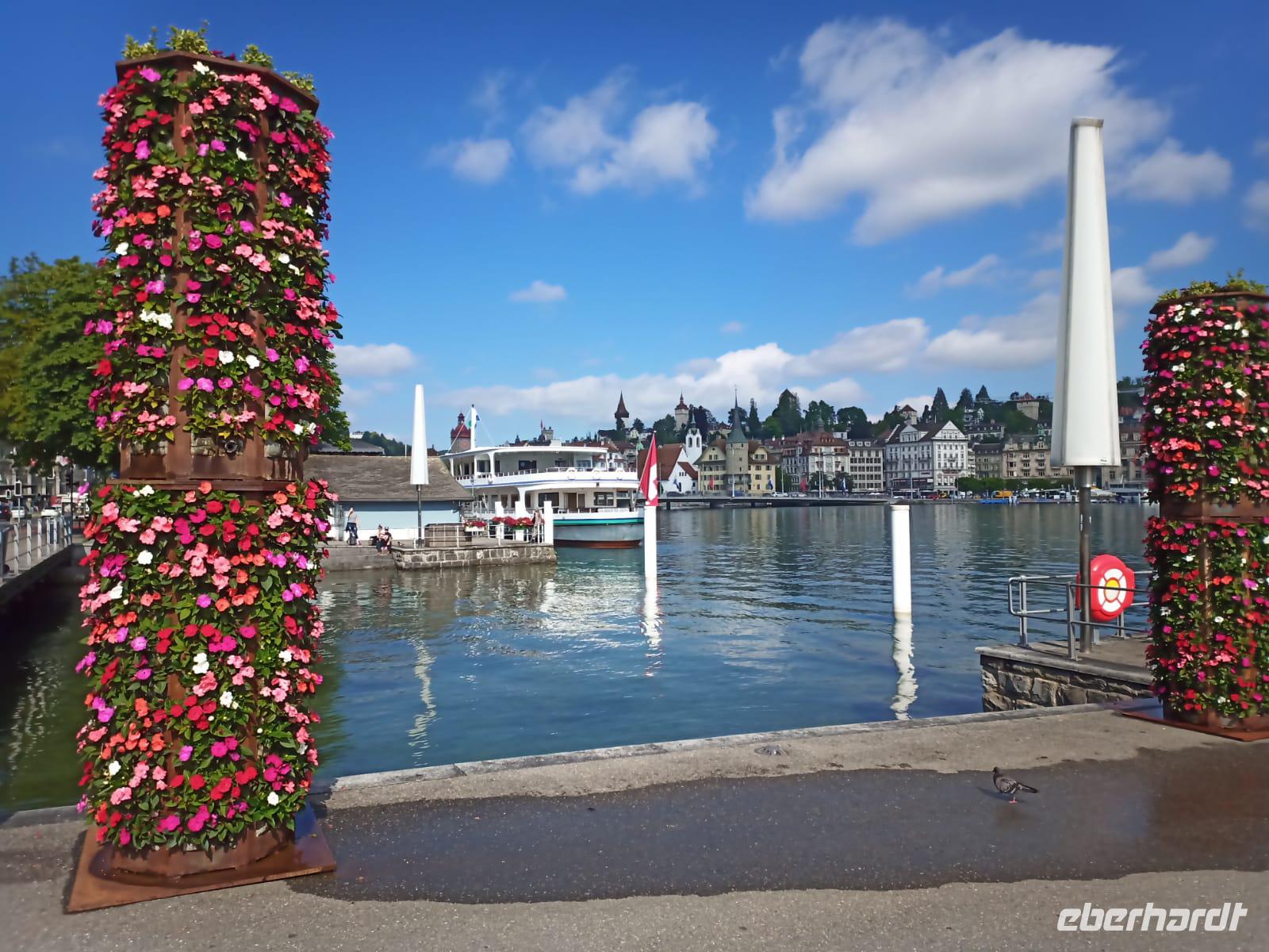 Nach dem Frühstück beginnt unser Ausflug zunächst mit der Busfahrt nach Luzern. Hier spazieren wir über die Kapellbrücke, das Wahrzeichen der Stadt. Einige der historischen Bilder im Giebel der Brücke und die Spuren des Brandes vom 17.08.1993 können wir noch sehen. Die schönen Bürgerhäuser und das Rathaus prägen die wunderschöne Ansicht der Stadt am Vierwaldstättersee. Unser kleiner Rundgang bringt uns zum Fritschi-Brunnen und zum Fritschi-Haus. Fritschi mit seiner Frau stellen die Hauptfiguren der Luzerner Fasnacht dar. Anschließend gehen wir zur Anlegestelle des Schiffes. Wir gehen auf dem Raddampfer „Stadt Luzern" an Bord, das historische Schiff der Flotte der Vierwaldstättesee-Schifffahrtsgesellschaft wurde in den letzten Jahren restauriert und ist erst seit wenigen Wochen wieder auf dem See unterwegs. Mit dem Schiff gleiten wir in der 1.Klasse über den See. Dabei sehen wir die Rigi, den Pilatus und die Mythen. Im Urnersee grüßen uns der Schillerstein und die Rütli-Wiese, wo 1291 der berühmte Rütlischwur vollzogen wurde. Der Schwur besiegelte die Geburtsstunde der Schweiz. Die Route führt uns vorbei an der Tellsplatte und der herrlichen Landschaft rund um den See nach Flüelen. Hier steht bereits der Gotthard Panorama Express bereits. Im Panoramawagen der 1.Klasse sind unsere Plätze bereits reserviert und unsere Reise in den Süden beginnt. Reinhard, der nette Reiseleiter versorgt uns mit vielen interessanten Informationen zu der imposanten Bahnstrecke. Wir bestaunen die Meisterleistungen der Erbauer der Strecke mit ihren vielen Viadukten, Kehrtunneln und dem 15 Kilometer langen alten Gotthard-Tunnel. Die Eröffnung des Tunnels erfolgte nach 8jähriger Bauzeit 1880. Über 3.000 Arbeiter erbauten unter widrigen Bedingungen das für damalige Zeiten einmalige Tunnelbauwerk. Wir sind fasziniert. In Bellinzona, der Hauptstadt des Kantons Tessin verlassen wir den Gotthard Panorama Express. Nach einem ganz kurzen Aufenthalt besteigen wir den Euro-City-Zug. Jetzt geht die Fahrt durch den Gotthard Basistunnel, den mit 57 Kilometern längsten Tunnel der Welt. Er wurde 2017 eröffnet und stellt eine Meisterleistung des modernen Tunnelbaus dar. Nur 20 Minuten fährt der Zug mit einer Höchstgeschwindigkeit von bis zu 190 km/h durch den Tunnel. Von Arth-Goldau reisen wir mit dem Bus zum Hotel zurück. Auch dieser Tag hat uns schöne Erlebnisse beschert.