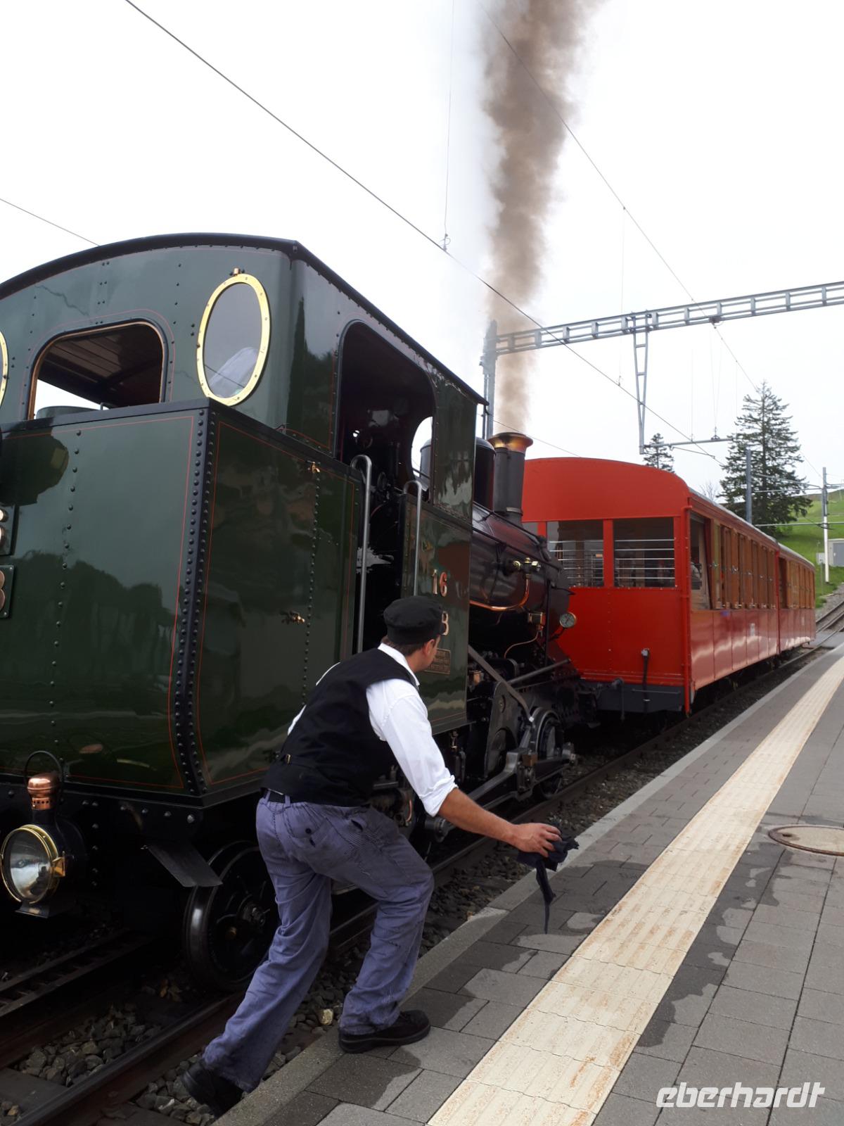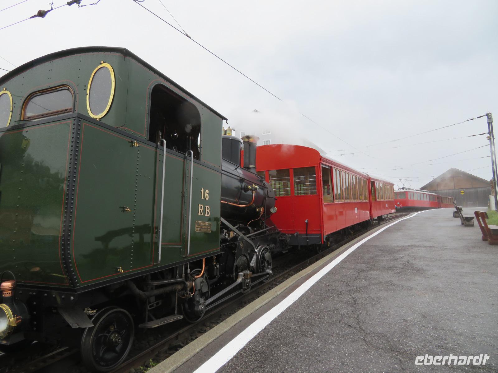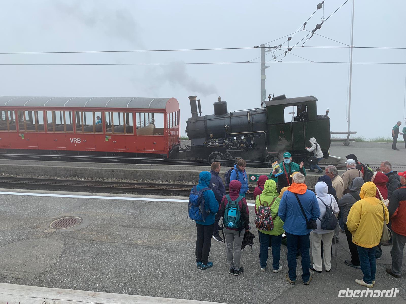 Heute führt uns unsere Reise leider bei Regen über den Brünigpass ins Berner Oberland. Vorbei am Sarnersee und am Lungernsee geht es nach Brienz am gleichnamigen See. Mit einem kurzen Bummel am See überbrücken wir die Zeit bis zur Abfahrt mit der Brienzer Rothornbahn. Die netten Kollegen von der Brienzer Rothornbahn erwarten uns schon. Für uns steht der Dampfzug mit einem historischen Wagen bereit. Die historische Bahn bringt uns in gemütlicher Fahrt auf das Brienzer Rothorn in 2.350 Metern Höhe. Die Bahn wurde bereits 1892 eröffnet und sie stellt eine technische Meisterleistung des Bahnbaues dar. Nach der atemberaubenden Fahrt mit immer wieder wechselnden Ausblicken, wenn leider immer noch mit vielen Wolken und keiner Sicht auf die Berge und den See, erreichen wir den Berg. Eiger, Mönch und Jungfrau verstecken sich in den dicken Regenwolken. Im Restaurant ist für uns ein kleines Mittagessen vorbereitet. Wir genießen Älplermagronen - ein typisches Schweizer Bergbauerngericht. Leider ziehen immer noch dicke Wolken über das Brienzer Rothorn und es ist empfindlich kühl. Also fahren wir mit der Dampfbahn etwas früher wieder ins Tal. Hier ist das Wetter etwas besser und die Sonne blickt auch mal durch die Wolken. Wir spazieren durch Briez, den berühmten Holzschnitzerort. Auf der schönen Promenade am Brienzersee können wir einige schöne Holzplastiken bestaunen. Über den Brünig-Pass führt uns unsere Fahrt mit dem Bus zum Hotel zurück.
