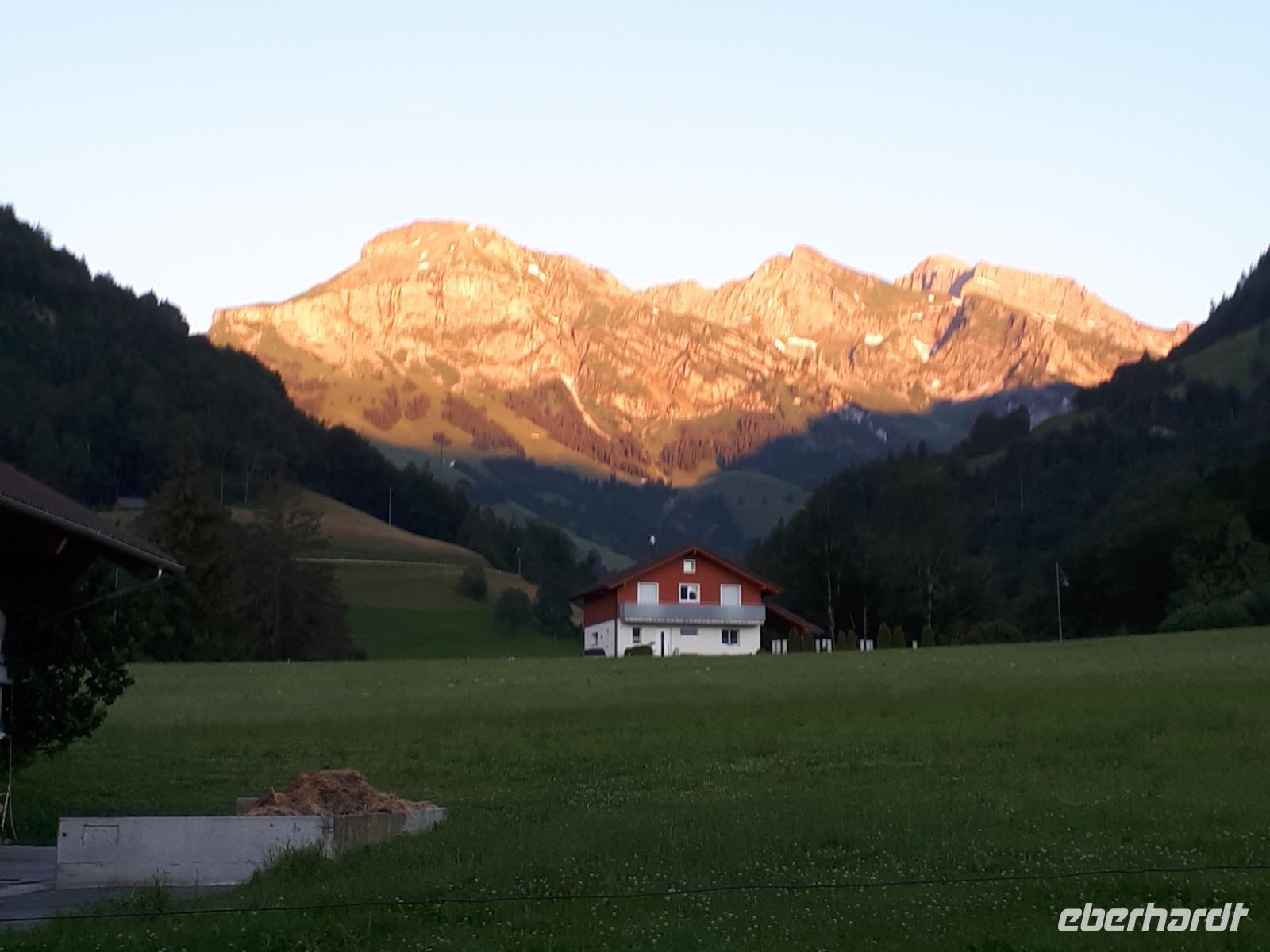 Nach dem zeitigen Frühstück erklimmen wir nochmals den Brünig-Pass und unser Ziel ist Wilderswil im Berner Oberland. Die nostalgische Zahnradbahn steht bereit, um uns auf die Schynige Platte zu bringen. Die Bahn ging 1893 in Betrieb. Die Bahn schlängelt sich im gemütlichen Tempo von nur 10 Kilometern pro Stunde auf ihren Schienen in unzähligen Windungen auf den 1.970 Meter hohen Berg. Dabei eröffnen sich uns immer wieder neue Blicke über den Brienzer- und den Thunersee und Interlaken mit dem Hausberg Hader Kulm. Auf dem Berg bieten sich uns verschiedene Möglichkeiten. Zunächst zieht es uns in Alpengarten mit über 700 Pflanzen aus dem Alpenraum. Wir staunen über die zum Teil in voller Blüte stehenden Pflanzen. Trollblumen, Enzian, verschiedene Berganemonen-Arten, wilde Orchideen und viele weitere Frühlingsblüher haben den Alpengarten in einen farbenfrohen Blütenteppich verwandelt. Wir können uns gar nicht sattsehen und immer wieder halten wir die herrlichen Bilder mit der Kamera fest. Einige Gäste unternehmen eine kleine Wanderung auf dem Flower & Panorama Trail. Eiger, Mönch und Jungfrau verstecken sich aber leider auch heute wieder in den Wolken. Da es doch etwas kühl und windig ist, wärmen sich fast alle Gäste im Restaurant mit einem warmen Getränk oder einem kleinen Imbiss auf. Die Zahnradbahn bringt uns zurück nach Wilderswil. Nun steht noch einen Aufenthalt in Interlaken auf dem Programm. Der beliebte Ferienort befindet sich zwischen dem Thunersee und dem Brienzersee. Er ist das Tor zur Jungfrau-Region. Jetzt bei Sonnenschein und warmen Temperaturen bummeln wir durch den Ort oder genießen das Panorama vom Café in der 18. Etage des Hotel Metropol. Sogar die Jungfrau zeigt sich nun doch noch in ihrer ganzen Pracht. Anschließend reisen wir wieder über den Brünig-Pass zum Hotel zurück. Hier erwartet uns das Küchenteam am Abend zu einem gemütlichen Grillabend auf der Terrasse des Hotels. Bei herrlichem Sonnenschein und zu etwas späterer Stunde sogar mit Alpenglühen der Berge über dem Melchtal genießen wir das vielfältige Salatbuffet und das lecker gegrillte Fleisch von Kalbsbratwürsten, Schweinesteak, Putenbrust bis zum Lammfilet bleiben keine Wünsche offen. Es war ein wunderschöner Abschluss unserer Reise!
