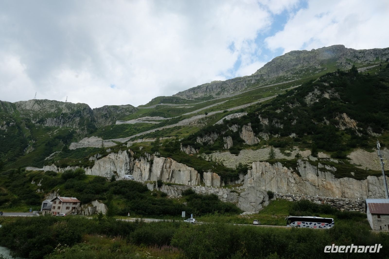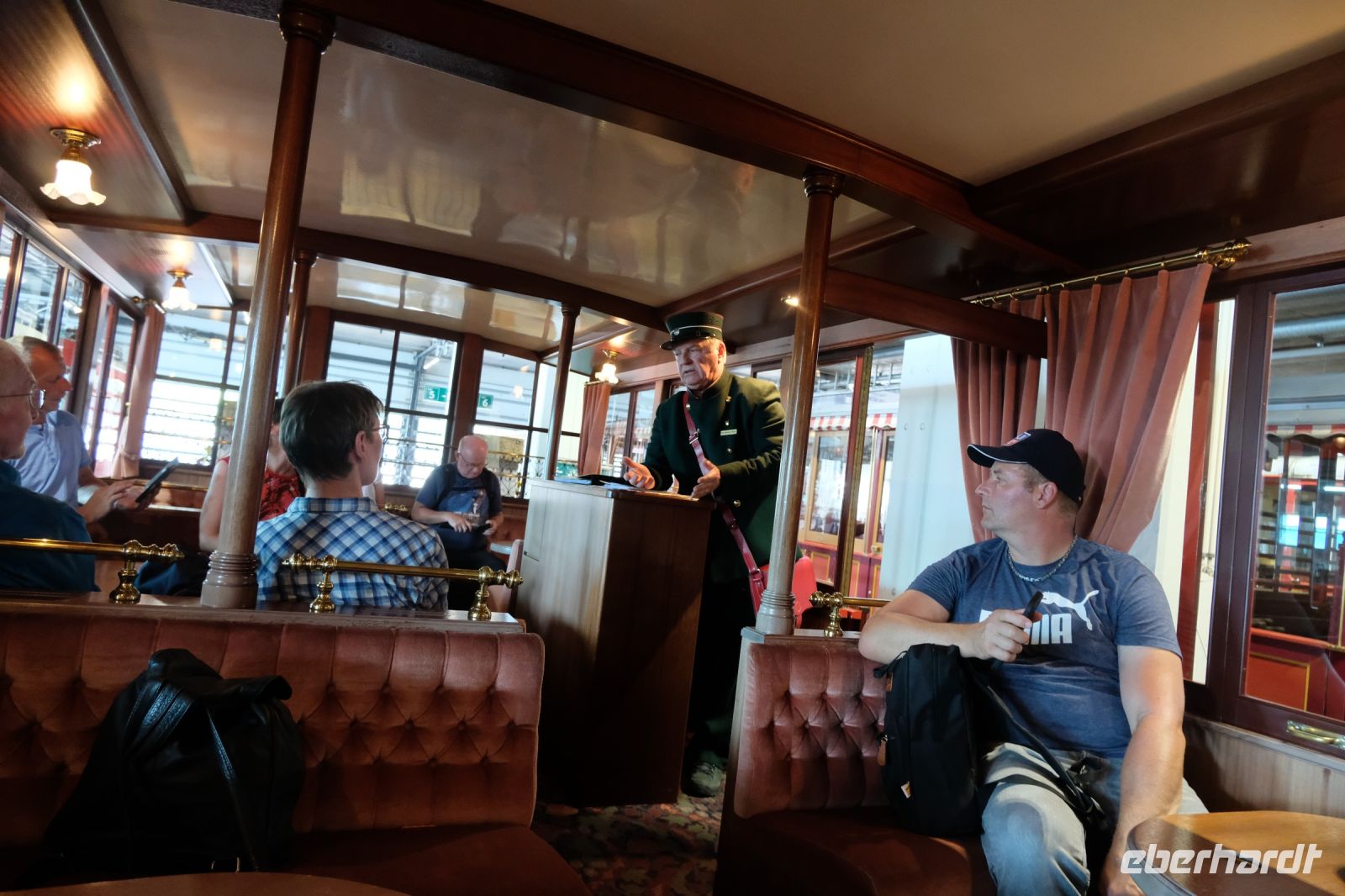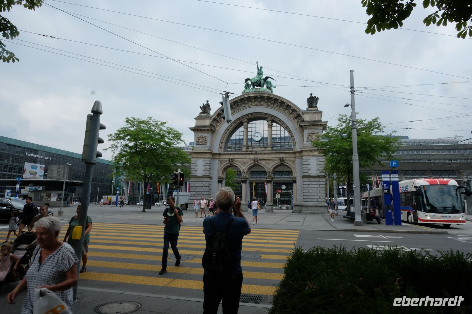 Nach dem Frühstück fuhr uns unser Fahrer Holger mit allen 15 Personen nach Luzern. Nach einem kurzen Stadtbummel bewegten wir uns auf einem Schiff in der 1. Klasse nach Flüelen. Wir genossen die herrlichen Uferpromenaden und das in der Sonne blinkende Wasser. In Flüelen wechseln wir das Transportmittel und steigen in den Gotthard Panorama Express 1. Klasse. Die Plätze waren für unsere Fahrt auf der alten Gotthard-Bahnstrecke schon reserviert.