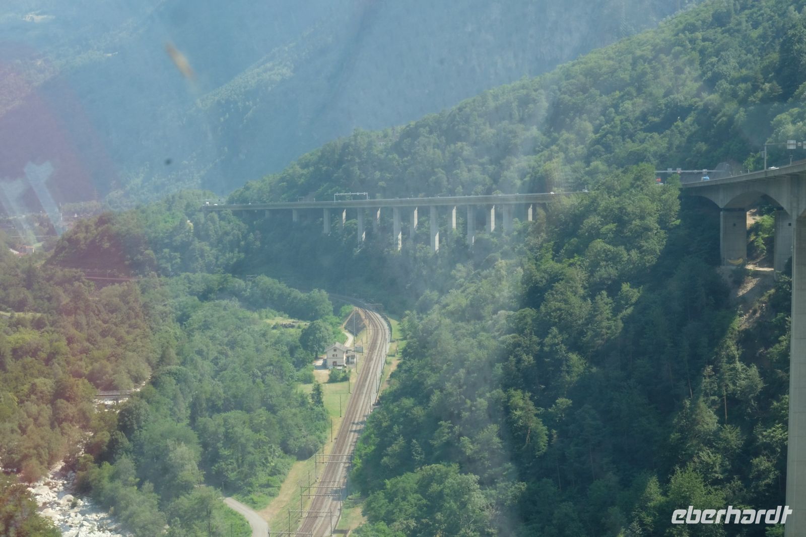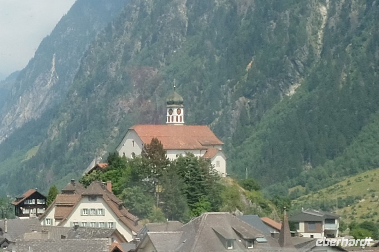 Und los ging es auf einer der schönsten Eisenbahnstrecken der Welt. Aus unserem exquisiten Panoramawagen bemerkten wir die Nordrampe der Gotthardbahnstrecke und dann die beeindruckenden Kehrtunnel auf der Strecke in den Kanton Tessin. Dabei sahen wir die auf einer Anhöhe thronende Kirche von Wassen dreimal. Nachdem wir dann in Bellinzona der Hauptstadt des Kantons Tessin angekommen waren, hatten wir nur einen kurzen Aufenthalt. Auf unserer Fahrt zurück fuhren wir mit der Bahn durch den längsten Eisenbahntunnel der Welt. Die Fahrt durch den 57 km langen Tunnel dauerte genau 18 min. Beeindruckend ist die Geschwindigkeit mit ca. 180 km/h. Damit waren wir schnell in Art Goldau zwischen Zuger- und Lauerzer See. Hier erwartete uns bereits unser Busfahrer Holger und zurück ging es ins Hotel zum 3-Gang-Menü.