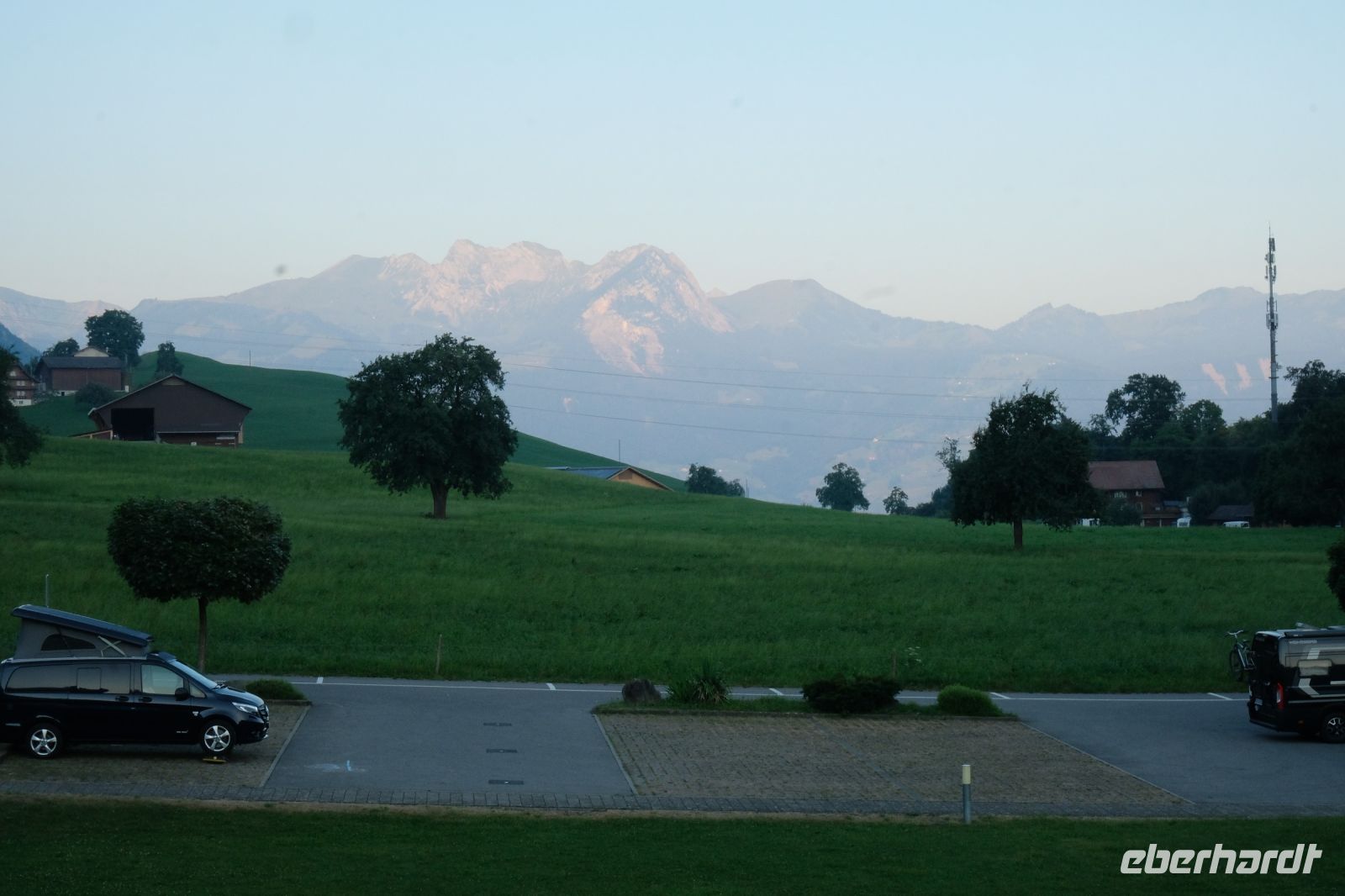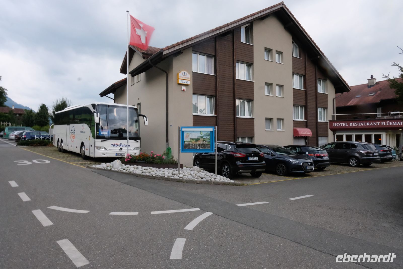 In Dresden begann unsere Reise pünktlich mit großen Vorfreude auf die kommenden Tage. Über Zustiege in Klipphausen, Chemnitz, Münchberg und Lindau führte unsere Route zunächst vorbei an Bayreuth, Nürnberg, Richtung Bodensee. Wir fuhren durch den 6,9 km langen Pfändertunnel bis wir bald die Grenze zur Schweiz erreicht hatten. Entlang des Rheins ging die Reise nach Sargans und weiter Richtung Zürich. Links fuhren wir am Walensee vorbei, die Churfirsten grüßten von oben, und das alles bei strahlendem Sonnenschein und großer Hitze. Unsere Fahrt führte weiter durch die Zentralschweiz mit der Region des Vierwaldstätter Sees. Am Abend erreichten wir unser Hotel Flüematte in Flüeli Ranft. Dort wurden wir von Marcello herzlich begrüßt und für 6 Nächte untergebracht. Nach dem Check in trafen wir uns zu einem schmackhaftem Abendessen.