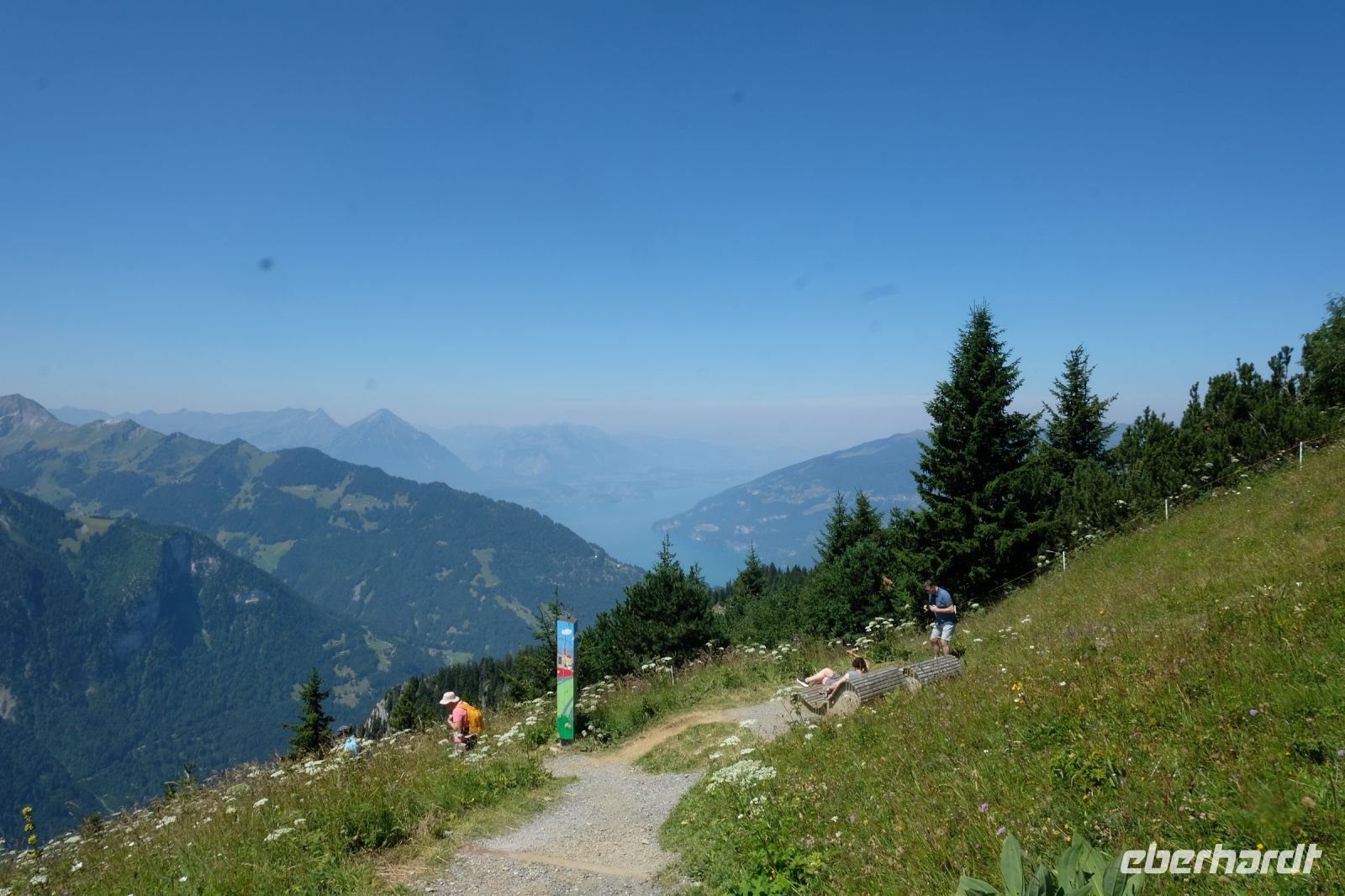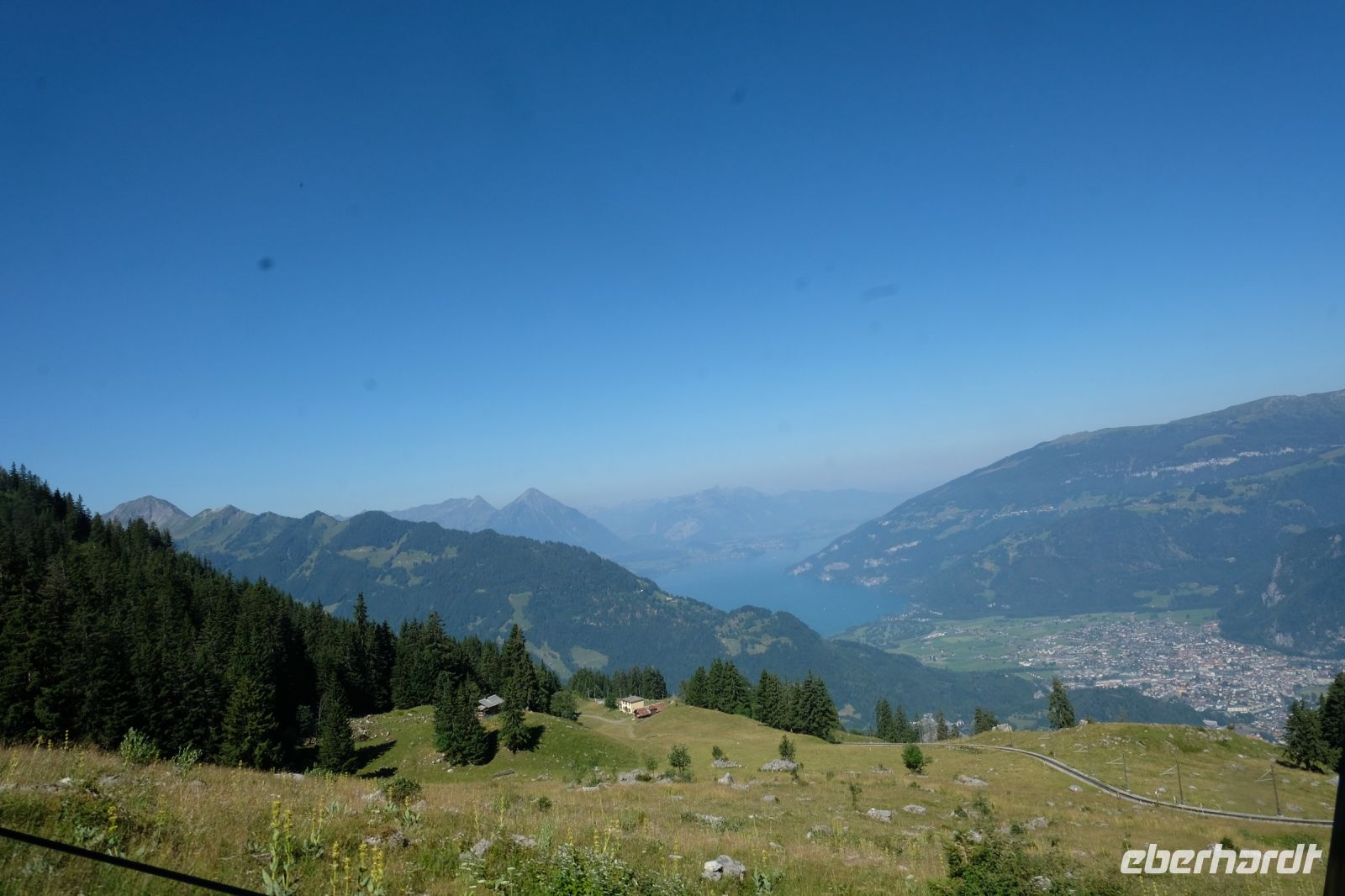 Nach dem Essen hatten wir noch etwas Zeit um die Umgebung zu genießen. Obwohl es warm war und die Sonne schien, konnten wir Eiger, Mönch und Jungfrau nicht sehen. Als wir in Brienz ankamen schien die Sonne und alle konnten noch ein wenig die schöne Kleinstadt genießen. Unser Fahrer Holger fuhr uns dann wieder zurück zum Hotel. Den Tagesabschluss bildete wieder unser Abendessen.