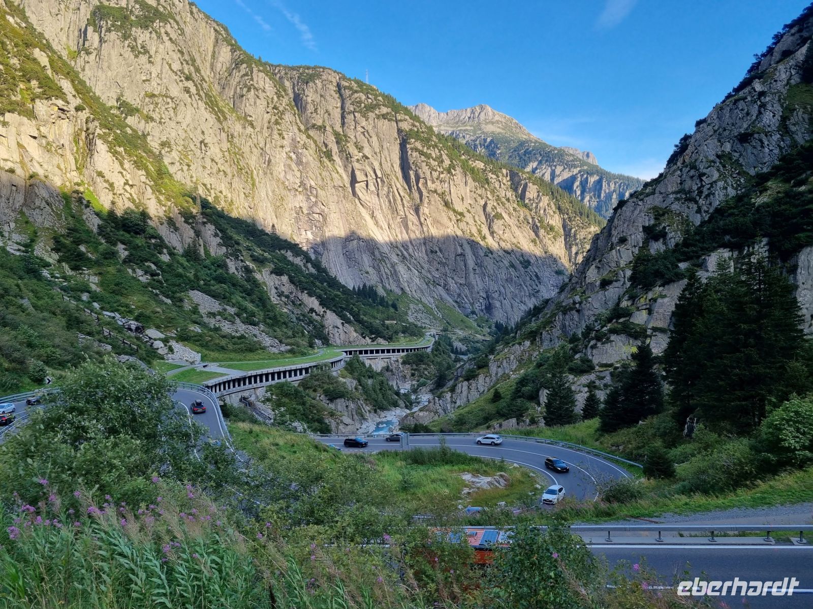 Wir starteten unseren Tag in Luzern und unternahmen von hier aus mit dem Dampfschiff "Stadt Luzern", im Jahr 1928 von der Werft Sachsenberg Rosslau/Deutschland erbaut, eine etwa knapp 3-stündige Fahrt auf dem Vierwaldstättersee. Pünktlich am frühen Nachmittag erreichten wir schließlich Flüelen, den Ausgangspunkt unserer landschaftlich einmaligen Bahnfahrt mit dem Gotthard Panorama Express. Hier war alles bereits bestens vorbereitet und in einem eigens für unsere Gruppe reservierten Panoramawagen der 1. Klasse machten wir es uns gemütlich. Ganz komfortabel erlebten wir somit die grandiose Fahrt auf der historischen Gotthardstrecke mit diversen Kehrtunnels und Brücken bis nach Bellinzona im Tessin. Bereichert wurde diese Reise durch verschiedene Erlebnisse und Inszenierungen zur Entstehungsgeschichte der Gotthardbahn – ein absolutes Highlight! Nach einem kurzen Aufenthalt in Bellinzona ging es mit dem Regionalzug und durch den 57 Kilometer langen Gotthard-Basistunnel nach Arth-Goldau zurück, wo uns Evgenij mit unserem Bus erneut erwartete.