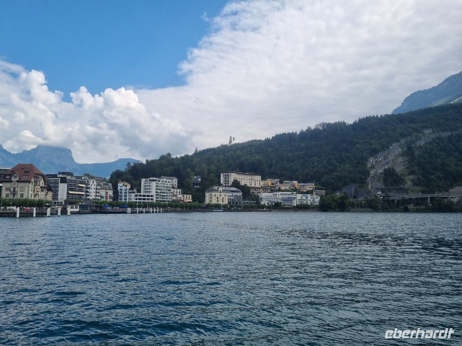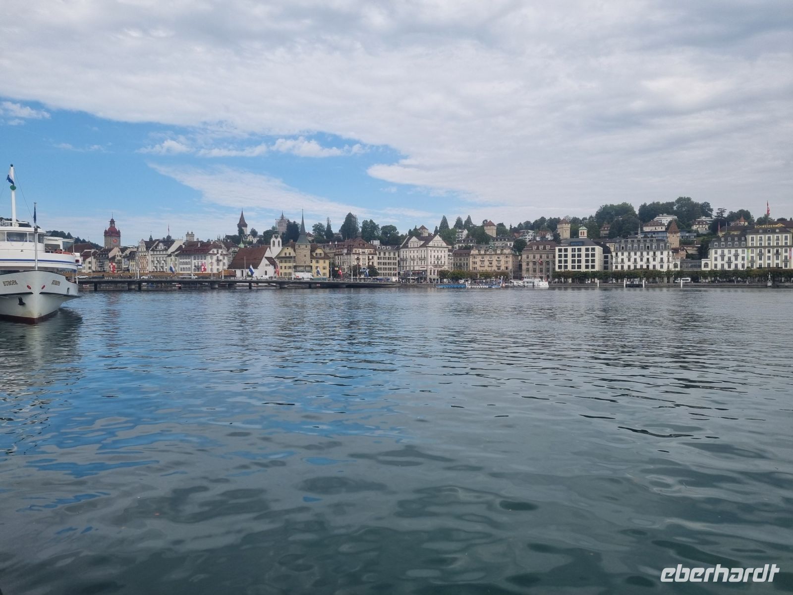 Aufgrund eines Unwetters in den vergangenen Tagen war die eigentlich geplante Fahrt mit der Dampflok auf das Brienzer Rothorn leider nicht möglich. Das konnten wir nicht ändern und mussten es hinnehmen. Kurzerhand ging es am Vormittag daher mit einer kurzen Busfahrt nach Alpnachstad, wo bereits die steilste Zahnradbahn der Welt für uns zum Einstieg bereitstand und uns in nur etwa 30 Minuten hinauf zum 2.132 Meter hohen Gipfel des Pilatus-Kulm brachte. Der Pilatus hat seinen Namen wahrscheinlich von "Pileatus", der Bedeckte (mit Wolken), und wurde bis zum 17. Jahrhundert "Fräkmünt" genannt. Sein Name wird auch der Legende zugeschrieben, nach der der Leichnam des Pontius Pilatus in dem ehemaligen See auf der oberen Bründlenalp versenkt sei. Kaum zu glauben – hier oben konnten wir großartige Aussichten genießen, das war der Traum vieler unserer Gäste...! Verschiedene Wanderwege standen uns offen, so beispielsweise der Drachenweg oder auch der Blumenpfad. Derart gut gestärkt und mit wunderschönen Eindrücken im Gepäck, ging es dann mit der modernen cockpitähnlichen Kabinenseilbahn "Dragon Ride" innerhalb von nur dreieinhalb Minuten vom Pilatus-Kulm hinunter zum Fräkmüntegg. Wir hatten sogar zeitweise das Gefühl mit der Bahn zu fliegen! Weitere ca. 25 Minuten legten wir mit einer Umlaufbahn bis Kriens zurück. Dort erwartete uns bereits unser Buschauffeur Evgenij und mit unserem Bus fuhren wir in Richtung Luzern weiter. Luzern und die Region Vierwaldstättersee gelten immerhin als die "Essenz der Schweiz", denn nirgendwo findet man so viel Schweiz auf kleinstem Raum – eine Stadt mit viel Charme und einem mittelalterlichen Kern, den charakteristischen Vierwaldstättersee mit Europas größter Binnenschifffahrt und ein wunderschönes Alpenpanorama mit unverwechselbaren Bergen. Mit der komfortablen Panorama-Yacht "Saphir" unternahmen wir am Nachmittag eine sehr entspannte einstündige Schifffahrt und genossen die einmalige Landschaft mit der pulsierenden und gleichzeitig beschaulichen Stadt am Ufer des Vierwaldstättersees. Anschließend hatten wir noch etwas Freizeit in Luzern und ein gemeinsamer orientierender Stadtspaziergang führte uns über die weltberühmte Kapellbrücke. Diese wurde in der ersten Hälfte des 14. Jahrhunderts als Teil der Stadtbefestigung errichtet und hat ihren Namen von der benachbarten St.-Peters-Kapelle. Von der Kapellbrücke aus erblickten wir die Jesuitenkirche aus dem 17. Jahrhundert, den ersten großen sakrale Barockbau der Schweiz. Zudem flanierten wir durch die herrliche Altstadt, die von historischen, mit Fresken geschmückten Häuser umsäumt ist.