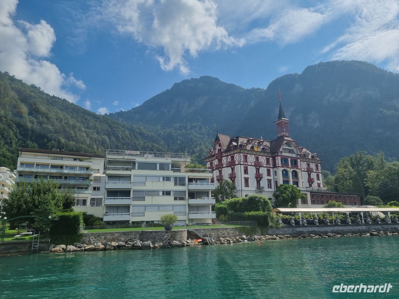 Die Sonne lachte und ein wiederum schöner Tag lag vor uns! Zunächst fuhren wir über den Brünigpass ins Haslital und weiter über die südlich des Brienzer Sees entlang führende Autobahn bis Wilderswil, dem Ausgangspunkt unserer Zahnradbahn-Fahrt auf die Schynige Platte. Wer die Schynige Platte mit der Zahnradbahn besucht, fühlt sich wie in der "Belle Epoque". Die Nostalgiebahn legt die reichlich sieben Kilometer lange Strecke in 50 Minuten zurück. Die Holzbänke in den Zugwagen und das Rollmaterial aus dem 19. Jahrhundert erinnern an längst vergangene Zeiten. Während der Fahrt und auf dem Berg faszinierten uns eine wunderschöne Sicht auf Eiger, Mönch und Jungfrau! Oben angekommen, hatten wir die Qual der Wahl, denn es gibt zahlreiche Wandermöglichkeiten – die meisten Gäste wanderten entlang des Swiss Flower & Panorama Trails und entdeckten somit mit rund 800 Pflanzenarten eine einzigartige Blumenpracht im Alpenraum. Der Garten brachte uns die Schönheit, den Reichtum und die Geheimnisse der Alpenflora näher. Anschließend überraschte uns Eberhardt TRAVEL mit einem zusätzlichen Mittagessen, einer zünftigen Brotzeit mit verschiedenen Wurstspezialitäten und Alpkäse. Der Nachmittag stand ganz im Zeichen von Interlaken, dem touristischen Zentrum des Berner Oberlandes. Der Ort liegt auf einer Schwemmebene zwischen dem Thunersee und dem Brienzersee. Überragt von den drei mächtigen Bergen Eiger, Mönch und Jungfrau ist der Ferienort Ausgangspunkt für zahlreiche Aktivitäten. Bereits zu Beginn des 19. Jahrhunderts wurde Interlaken für seine eindrückliche Bergwelt berühmt und von bekannten Zeitgenossen bereist, darunter Johann Wolfgang von Goethe und Felix Mendelssohn Bartholdy. Der Erfolg als Tourismusort wurde durch den Ausbau der Berner Oberland Bahnen 1890 und der Jungfraubahn 1912 noch angekurbelt. Entlang der Süduferstraße des Brienzer Sees und über den Brünigpass gelangten wir am frühen Abend zum Hotel zurück.