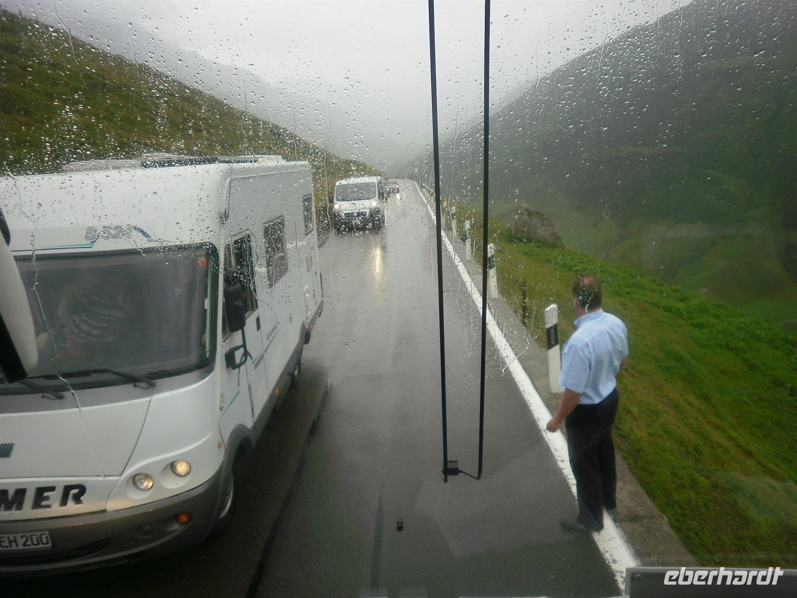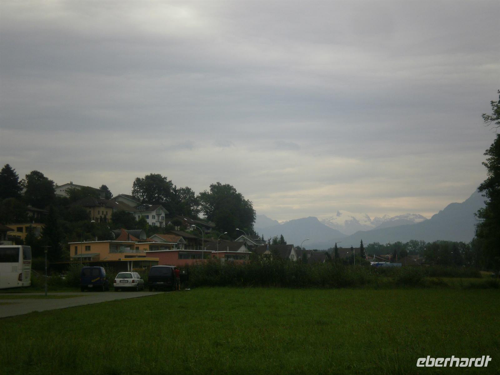 Pünktlich um 6 Uhr morgens ging es am Dresdner Flughafen los. Die letzten Gäste stiegen am Autohof in Münchberg zu und damit war unsere Reisegruppe mit insgesamt 37 Personen komplett. Wie bei unseren Reisen üblich, legten wir im Abstand von jeweils etwa zwei Stunden eine Pause ein. So konnte jeder mal etwas frische Luft schnappen beziehungsweise sich die Beine vertreten. Die Fahrt führte uns über Nürnberg und Ulm in Richtung Bodensee. Das Wetter war zwar gar nicht so übel, aber ein Stau an der Autobanhnausfahrt Lindau verhinderte, dass wir entgegen unserer Planung die Uferstraße zu fahren, dann letztendlich durch den 6,7 Kilometer langen Pfändertunnel weiter gefahren sind. Wir fuhren nur wenige Kilometer durch Österreich und erreichten am Nachmittag Höchst, den österreichischen Grenzort zur Schweiz.