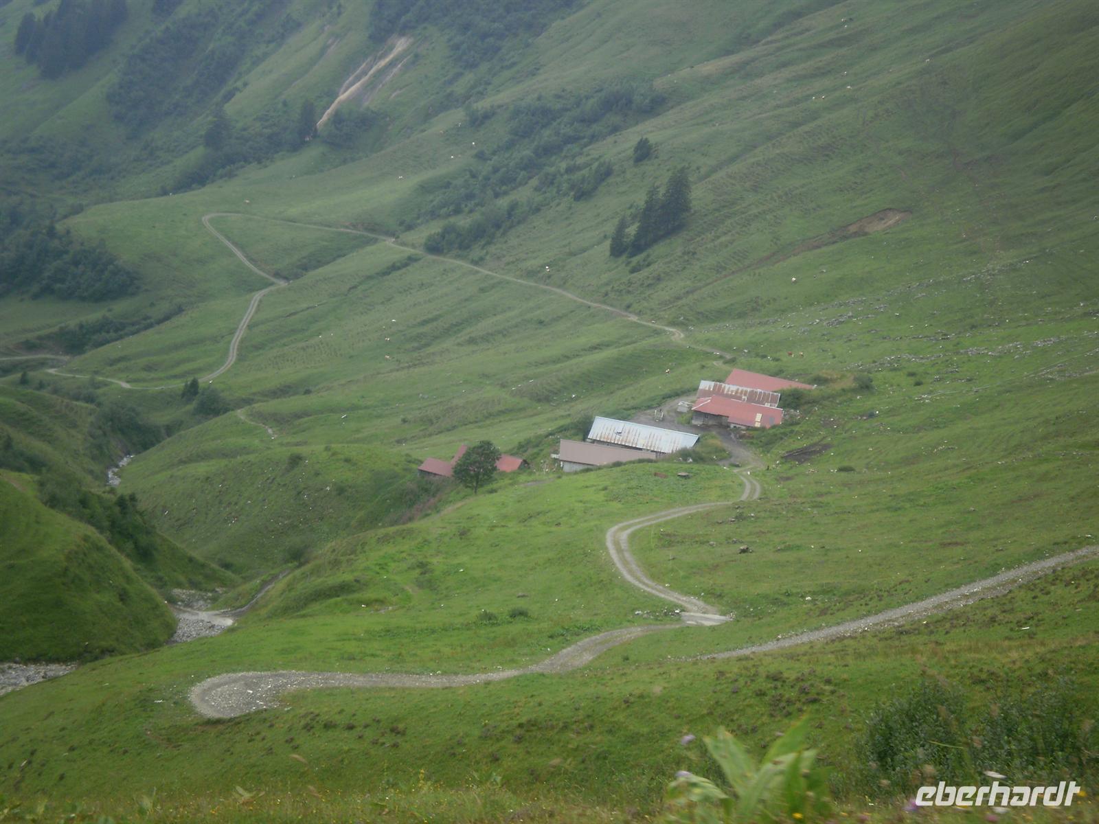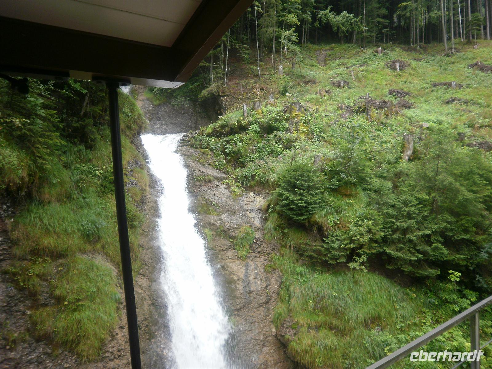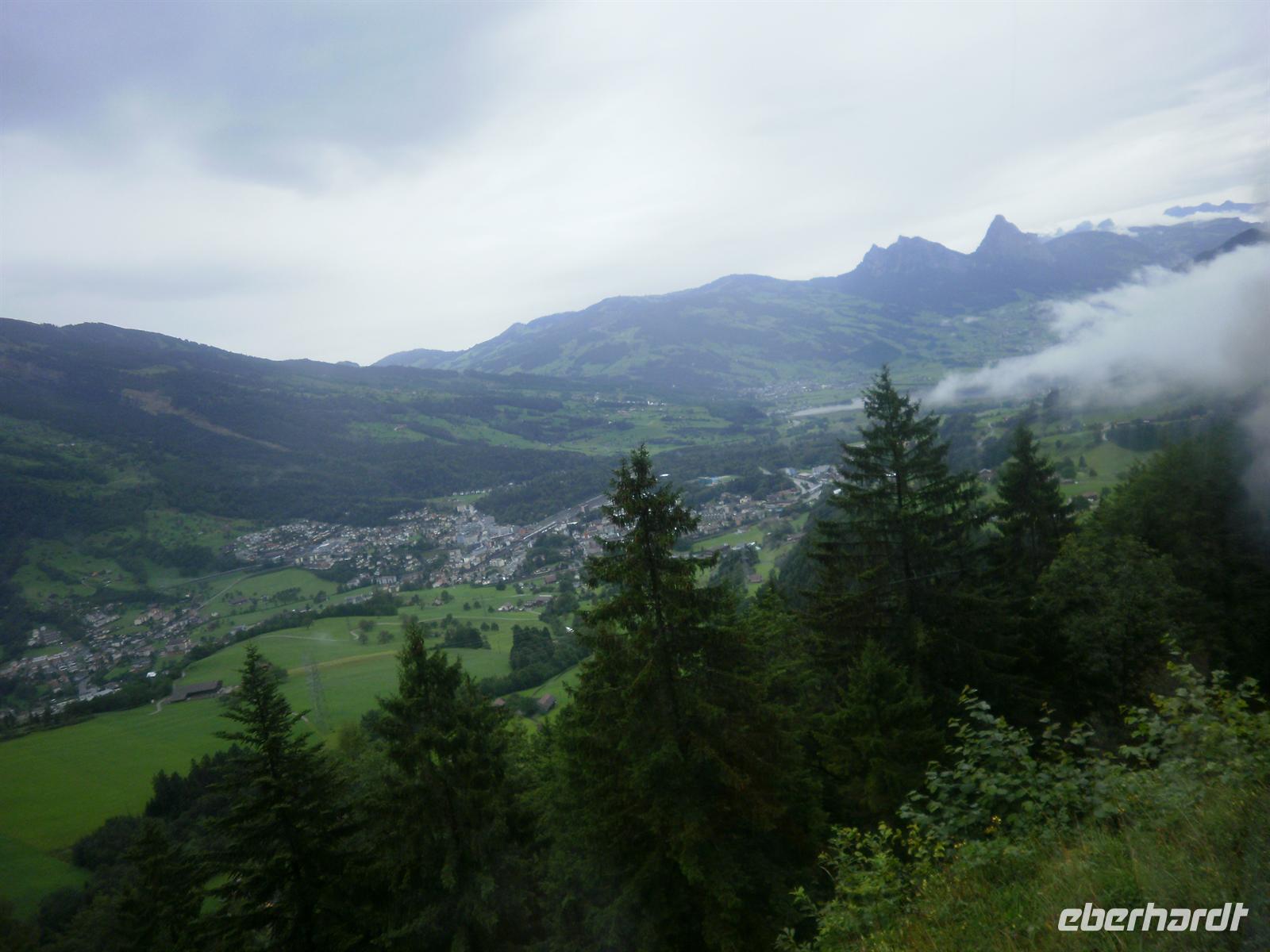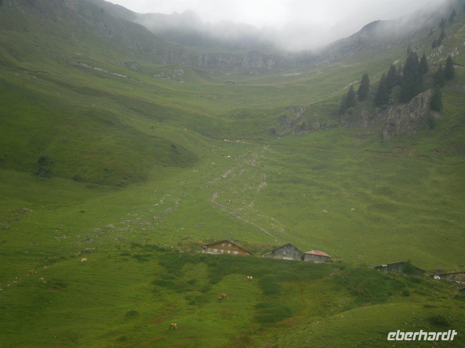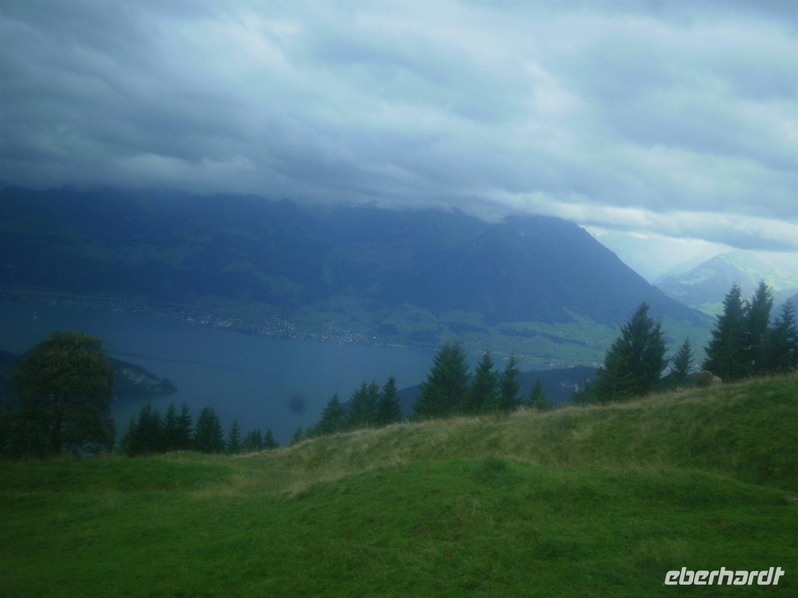Nach dem kurzen Besuch in einer Holzschnitzerei ging es mit "Volldampf" hinauf auf das Brienzer Rothorn. Die Zahnradstrecke mit Dampfbetrieb wurde bereits 1892 eröffnet und überwindet die etwa 7,5 Kilometer lange Strecke in 55 Minuten. Von der auf 2252 Meter hoch gelegenen Gipfelstation hatten wir dann noch einen kurzen Weg zum 2270 Meter hohen Rothorn-Kulm. Bei guter Sicht hat man von hier eine großartige Aussicht über die Appenzeller, Urner, Engelberger, Berner und Walliser Alpen. Leider war es für uns die blanke Theorie, denn es zeigte sich nicht einer der in sämtlichen Prospekten angekündigten Berge! Am Nachmittag setzten wir unsere Fahrt schließlich mit einem kurzen Aufenthalt in Interlaken und entlang des Thuner Sees in Richtung Bern fort. Kurz vor Bern ging es in Richtung Osten zurück durch das Entlebuch, dem Haupttal der Kleinen Emme und über Luzern nach Flüeli-Ranft. Letztendlich ging dieser Tag in die Chronik dieser Reise als erster regenfreier Tag ein - das war doch schonmal eine große Sache!