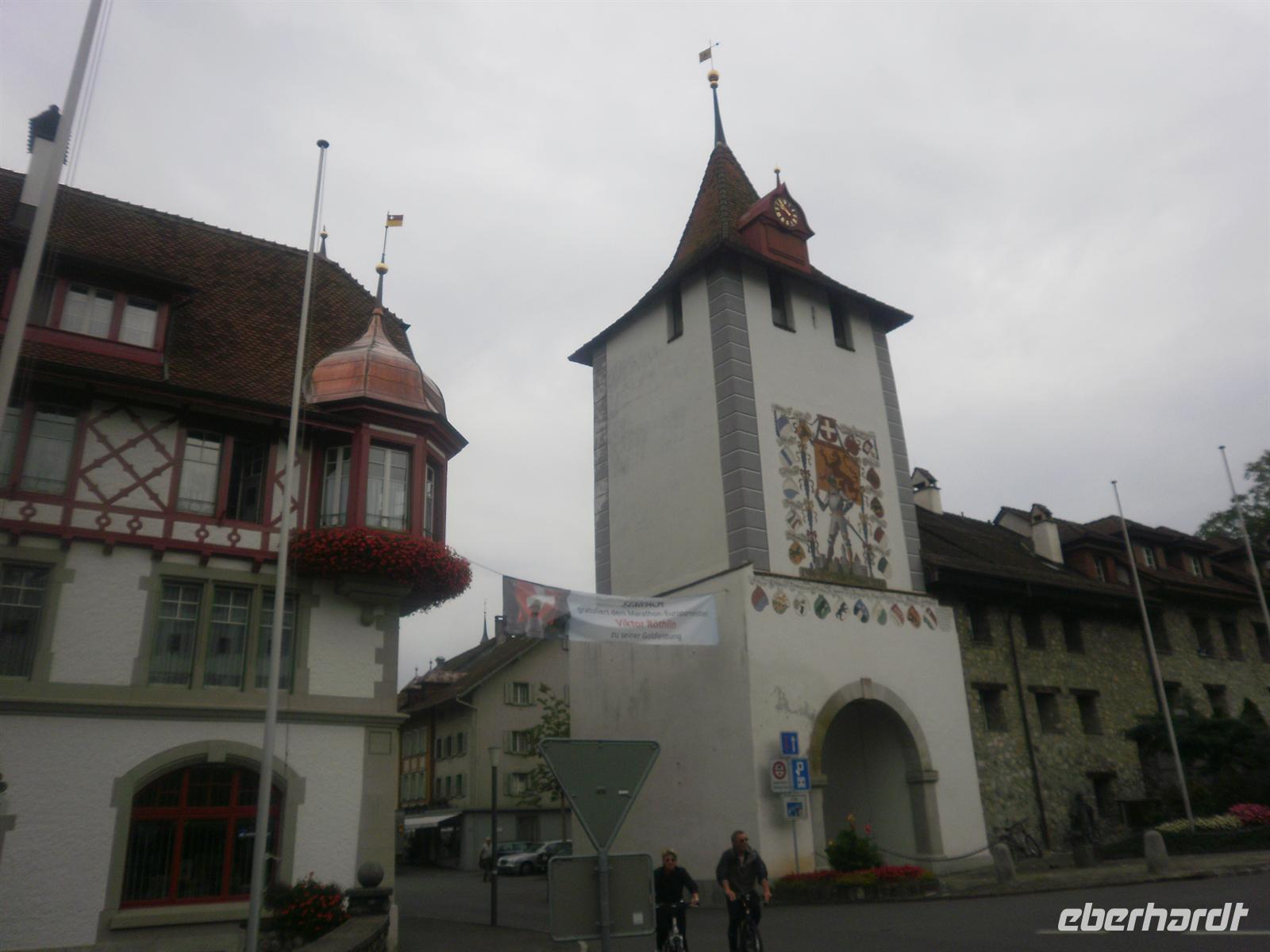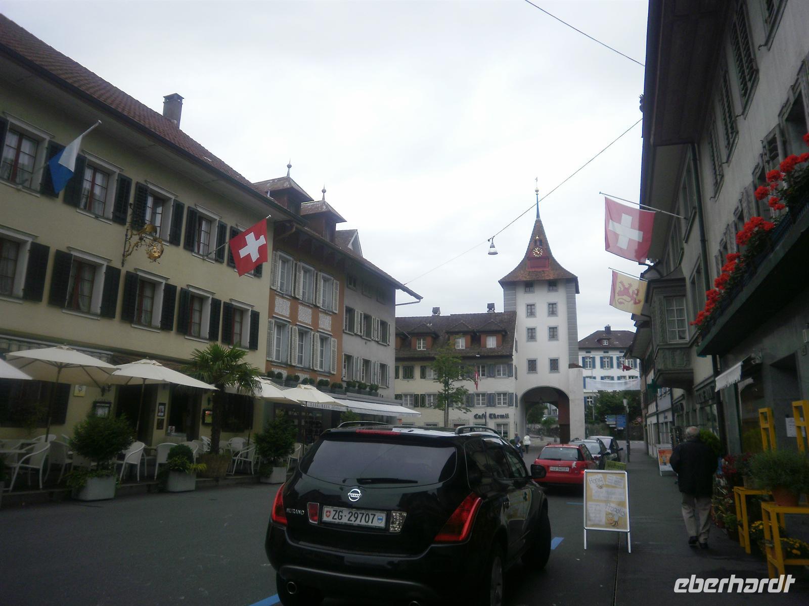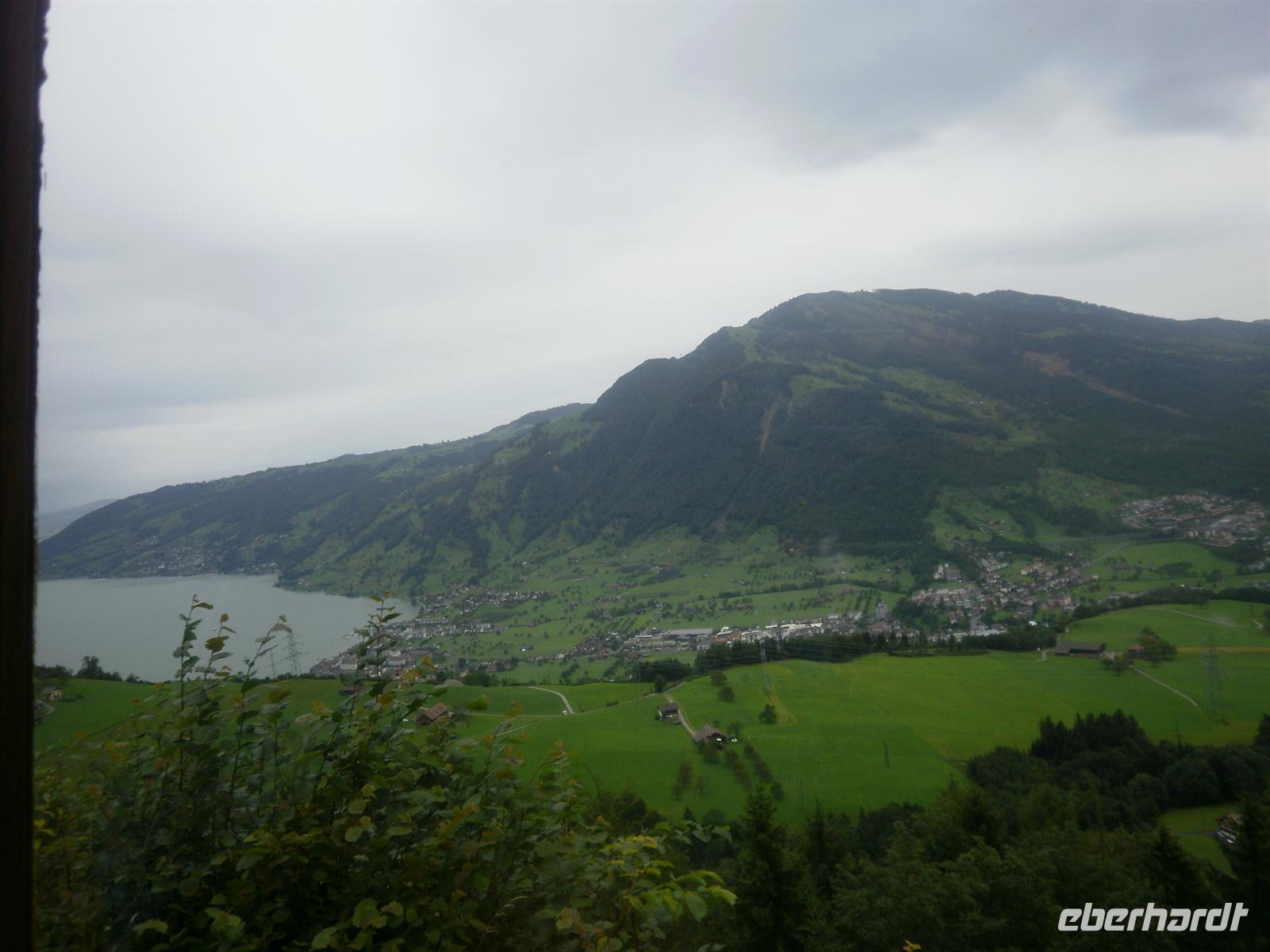 Wir starteten unseren Tag leider wieder mit Regen. Es ging über Luzern nach Küssnacht am Rigi. Einen Halt machten wir an der berühmten "Hohlen Gasse". Dies ist ein künstlich gebauter Hohlweg zwischen Küssnacht am Rigi und Immensee. In der Hohlen Gasse soll 1307 Wilhelm Tell den habsburgischen Landvogt Gessler erschossen haben. In Friedrich Schillers "Wilhelm Tell" sagt Tell: "Durch diese hohle Gasse muss er kommen. Es führt kein andrer Weg nach Küssnacht." Nachdem wir kurz auf den Spuren des Schweizer Nationalhelden Tell wandelten, ging es auf direktem Wege entlang des Zugersees nach Goldau.