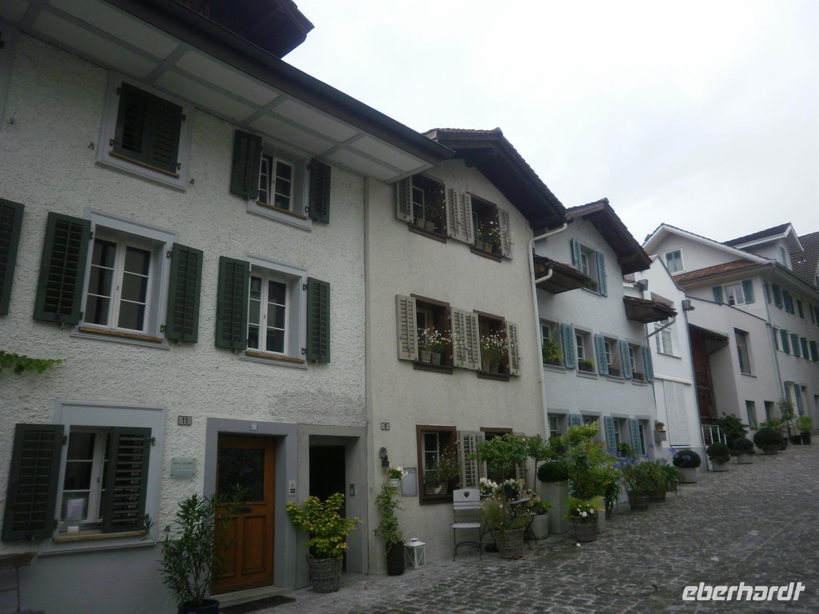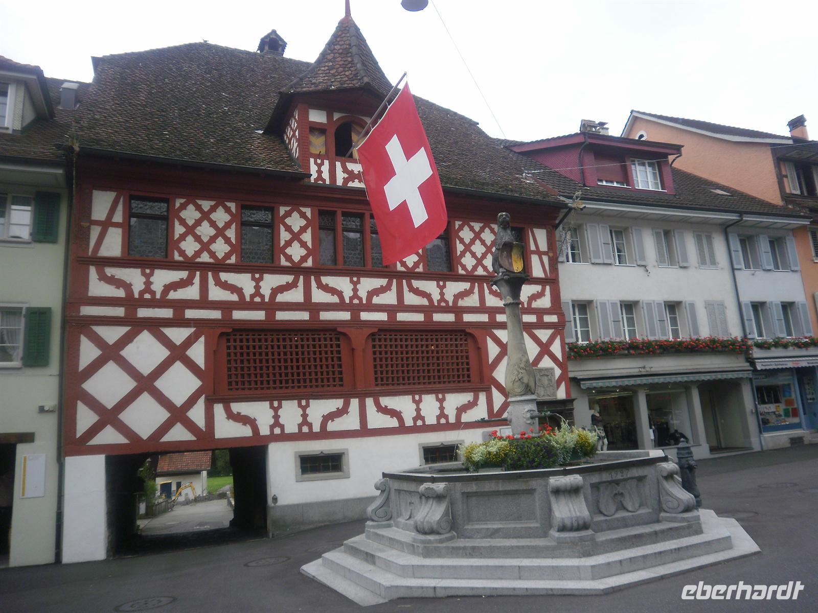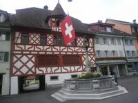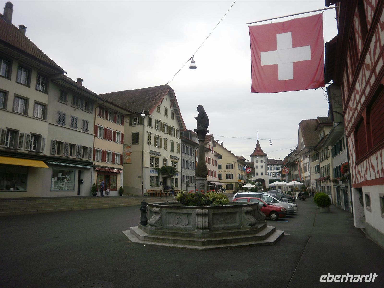 Wir starteten unseren Tag leider wieder mit Regen. Es ging über Luzern nach Küssnacht am Rigi. Einen Halt machten wir an der berühmten "Hohlen Gasse". Dies ist ein künstlich gebauter Hohlweg zwischen Küssnacht am Rigi und Immensee. In der Hohlen Gasse soll 1307 Wilhelm Tell den habsburgischen Landvogt Gessler erschossen haben. In Friedrich Schillers "Wilhelm Tell" sagt Tell: "Durch diese hohle Gasse muss er kommen. Es führt kein andrer Weg nach Küssnacht." Nachdem wir kurz auf den Spuren des Schweizer Nationalhelden Tell wandelten, ging es auf direktem Wege entlang des Zugersees nach Goldau.