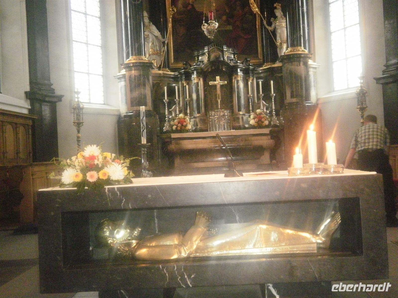 Im Dorf besichtigten wir am Vormittag das Geburtshaus und das Wohnhaus des Eremiten und Nationalheiligen Niklaus von Flüe alias "Bruder Klaus". Anschließend begaben sich einige von uns noch in die Schlucht, wo man die Zelle besuchen kann, wohin er sich 1468 zurückzog. Auf dem Schragen der Klause liegt noch der legendäre Stein, der dem Heiligen als Kopfkissen gedient haben soll. Die Zeitgenossen im 15. Jahrhundert sahen in Niklaus von Flüe einen "lebendigen Heiligen". Er war als persönlicher Ratgeber und Friedensstifter im In- und Ausland bekannt. Die Hochachtung und Verehrung überdauerte die Jahrhunderte und erlebte nochmals einen Aufschwung nach der Heiligsprechung im Jahr 1947. Heute entdecken übrigens auch kirchenferne Menschen diesen bedeutenden mittelalterlichen Mystiker neu.