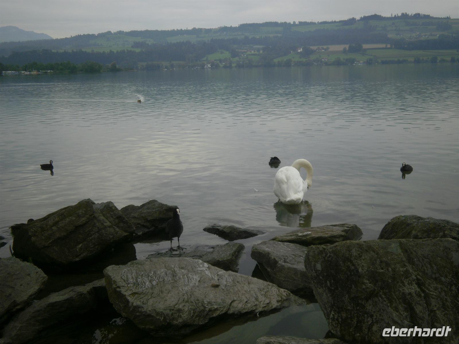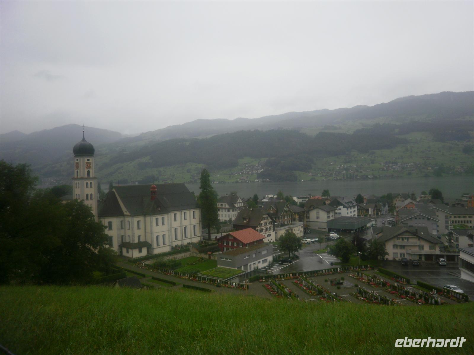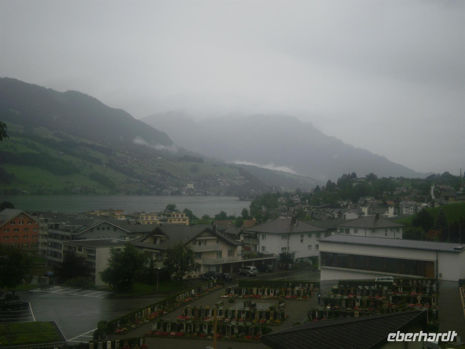 Nur der Alte Rhein trennte uns nunmehr noch von St. Margarethen, wo wir erstmals einen Fuß auf Schweizer Boden setzten konnten. Nach einer längeren Pause in St. Margarethen, hier hatten wir übrigens auch die Möglichkeit unsere Euros in Schweizer Franken umzutauschen, brachen wir zur letzten Etappe auf. Die Fahrt führte uns durch das St. Galler Rheintal, Sargans, vorbei am Walensee bzw. Zürichsee, über die Hirzel-Höhe und vorbei an Luzern bis zum Sarner See. Am Abend erreichten wir schließlich Flüeli-Ranft, auf einer Anhöhe oberhalb des Sarner Sees gelegen. Hier sollten wir nun während unserer gesamten Reise nächtigen. Jeder von uns war froh, nun angekommen zu sein. Manch einer nutzte die Zeit bis zum Abendessen noch für einen kleinen Spaziergang und schließlich wurden wir nach diesem Tag dann auch noch mit einem tollen Abendessen im Hotel verwöhnt.