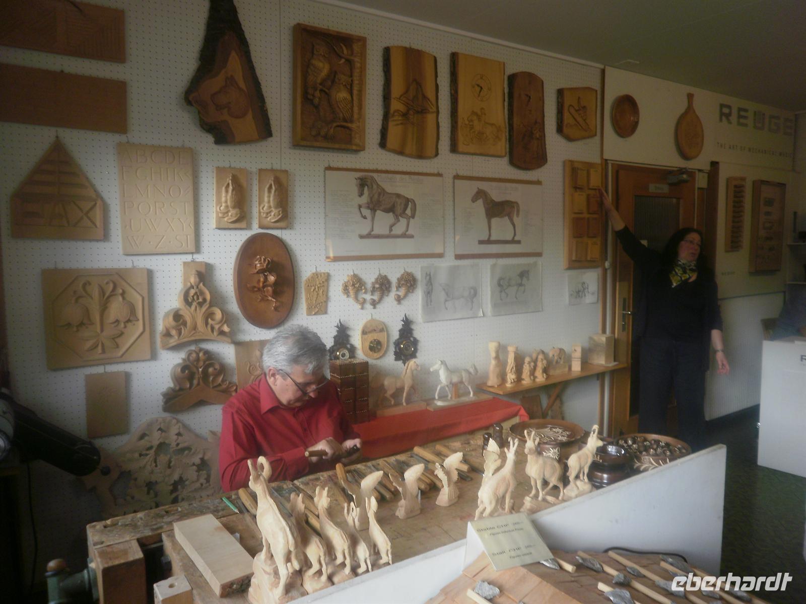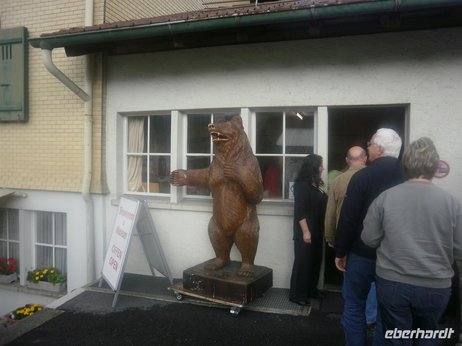 Der ziemlich langgestreckte Ort am Ufer des Brienzer Sees ist der Mittelpunkt der Oberländer Holzschnitzkunst und für uns war natürlich klar, dass wir eine der zahlreichen Holzschnitzereien hier besuchen mußten. Die Holzschnitzerei ist eine uralte Volkskunst. Alte Gebäude, Möbel und Geräte sind Zeuge des künstlerischen Sinns und Könnens unserer Vorfahren. Diese Art der Holzschnitzerei entstand wohl aus einem Zeitvertreib, mit dem insbesondere die Bergbauern die langen Winterabende zubrachten. Das stolze Ergebnis langer Bemühungen mag Ansporn gewesen sein zu immer reicherem und sorgfältigerem Schnitzschmuck. Aus dieser Volkskunst wuchsen jene Meister der Holzbildhauerei, deren Werke etwa in alten Chorgestühlen und kirchlichen Statuen heute mehr denn je als Kulturgut bewundert werden. Am liebsten nimmt man übrigens Lindenholz zum Holz schnitzen, denn dieses lässt sich sehr gut bearbeiten.