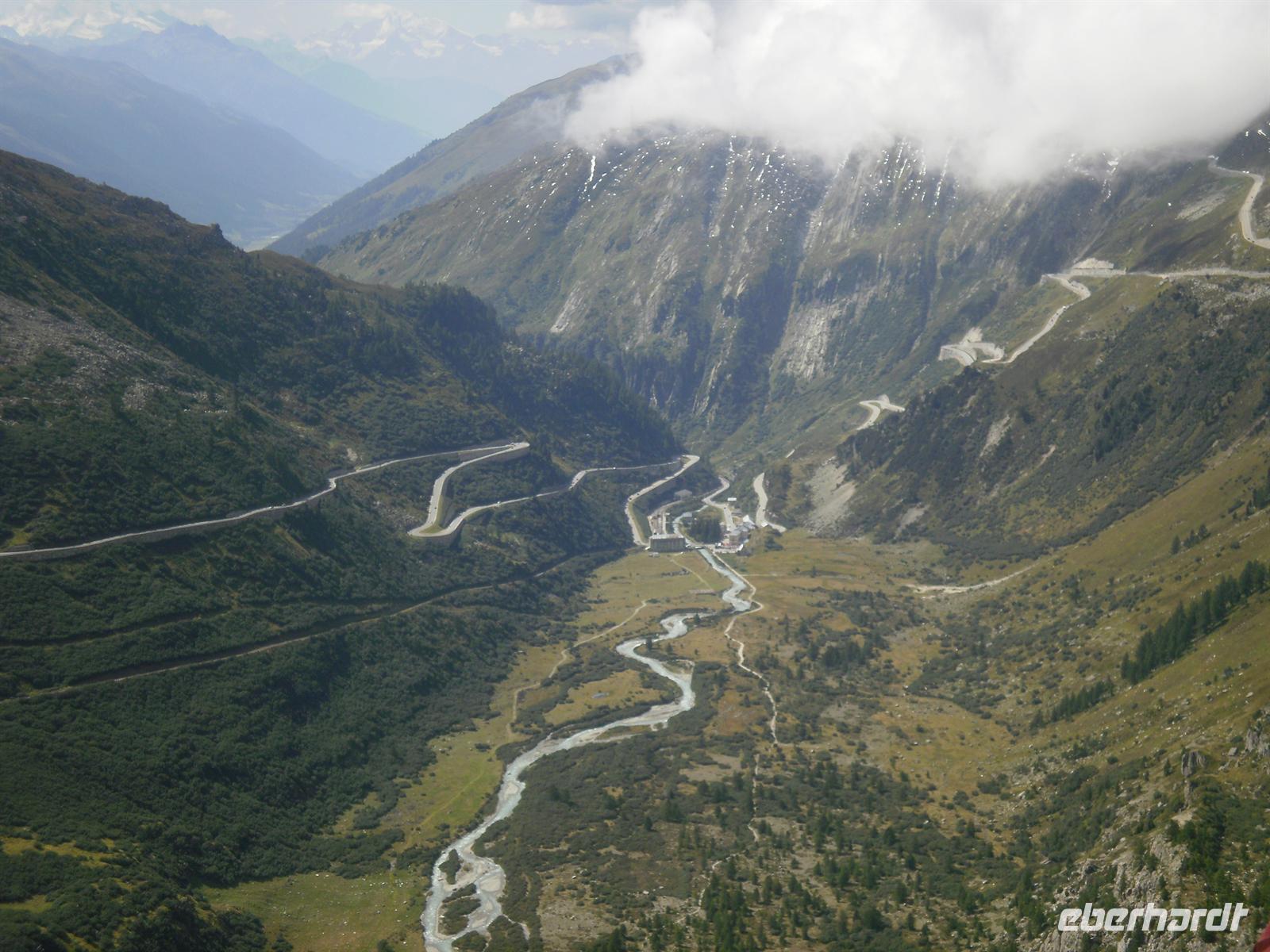 Nun war es nur noch ein Katzensprung bis Realp, dem Ausgangspunkt unserer Fahrt mit der Furka-Dampfbahn. Bereits 1914 haben die ersten Dampfzüge von Brig aus entlang der jungen Rhone den Bahnhof Gletsch erreicht. 1926 ist die Strecke bis Disentis verlängert worden und damit war die Verbindung zur Rhätischen Bahn hergestellt. 16 Jahre später ist diese hochalpine Strecke im schwierigen Gelände elektrifiziert worden. Allerdings konnte die Strecke zwischen Realp und Oberwald wegen den extremen Klimabedingungen stets nur während des Sommers betrieben werden. So hat man später zwischen diesen beiden Orten den Furka-Basistunnel gebaut, der im Jahre 1982 eingeweiht worden ist. Die alte Bergstrecke wurde damit aufgegeben und der Abbruch war beschlossene Sache. Bereits 1983 haben Bahn-Enthusiasten den Verein Furka Bergstrecke (VFB) gegründet. Mit bescheidenen Mitteln wurde begonnen, Strecke und Fahrzeuge zu sanieren. Aus Vietnam wurden alte Damplokomotiven der Furka-Oberalp-Bahn in die Schweiz zurückgeholt. Sie waren bereits 1947 in den Fernen Osten verkauft worden. Schrittweise gelang die Wiederherstellung der Strecke bis Gletsch. 1992 konnte die Strecke von Realp nach Tiefenbach neu eröffnet werden und bereits ein Jahr später dampften die Züge wieder bis zur Station Furka.