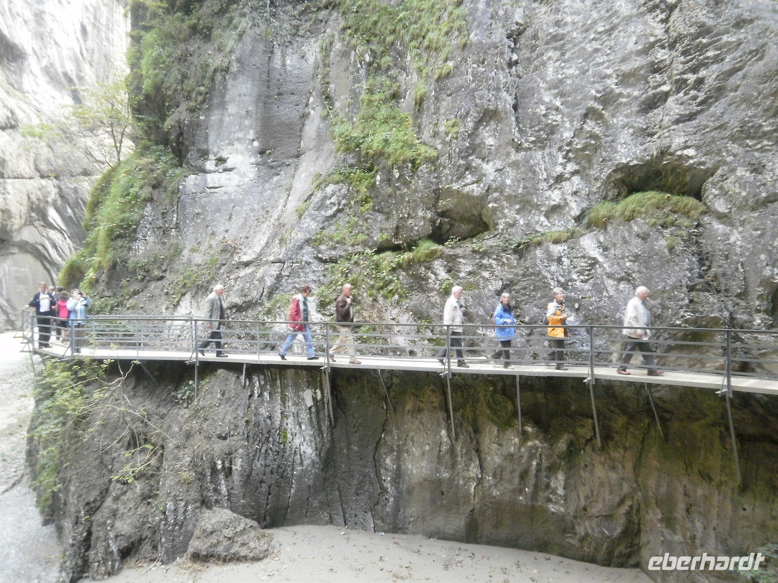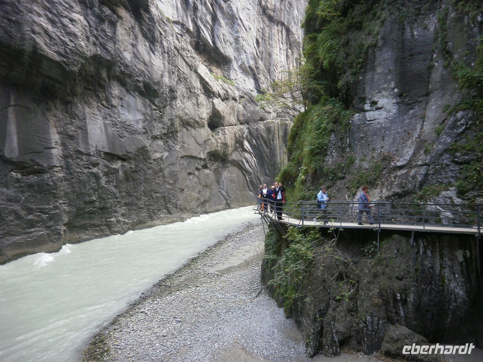 Anschließend ging es über Gletsch zum 2165 Meter hohen Grimselpass hinauf. Auf der Passhöhe schauten sich die meisten von uns im Murmeltierpark um - wie niedlich! Nun setzten wir unsere Fahrt ins Haslital, dem Tal der Aare, fort. Unser nächstes Ziel sollte die Aareschlucht sein. In Innertkirchen angekommen, spazierten die meisten mit mir durch diese gut begehbare etwa 1,4 Kilometer lange Schlucht bis nach Meiringen, wo wir von unserem Bus abgeholt wurden. Über den Brünigpass und vorbei am Lungernsee kamen wir schließlich am späten Nachmittag mit einigen Erlebnissen im Gepäck nach Flüeli-Ranft zurück. Auch heute Abend erwartete uns wieder ein tolles Abendessen. In unserem familiengeführten Hotel "Flüematte" kocht nämlich der Chef noch selbst und die Küche ist einfach ein absoluter Geheimtip!