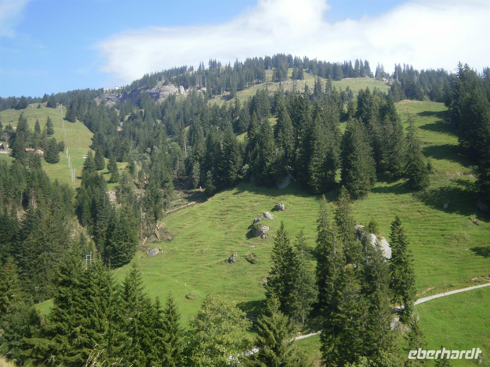 Von der auf 2252 Meter hoch gelegenen Gipfelstation hatten wir dann noch einen kurzen Weg zum 2270 Meter hohen Rothorn-Kulm. Bei guter Sicht hat man von hier eine großartige Aussicht über die Appenzeller, Urner, Engelberger, Berner und Walliser Alpen. Am Anfang war dies für uns die blanke Theorie, denn es zeigte sich nicht einer der in sämtlichen Prospekten angekündigten Berge! Aber dies sollte sich noch ändern - wir hatten zum Teil einen grandiosen Blick in die Region von Eiger, Mönch und Jungfrau. Am Nachmittag setzten wir unsere Fahrt von Brienz aus schließlich entlang des Brienzer und Thuner Sees fort. Nach einem kurzen Aufenthalt in Interlaken fuhren wir über den Brünigpass zurück nach Flüeli-Ranft. Wir erlebten nach dem Abendessen noch einen schönen Heimatabend mit einheimischer Musik, unter anderem auch einen Alphornbläser. Noch dazu wurde uns einiges über die einheimischen Musikinstrumente erklärt. Jeder hörte gespannt zu und so saßen wir alle in geselliger Runde beisammen! Es war ein gelungener Abend!