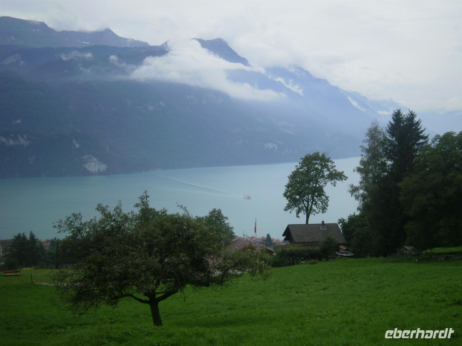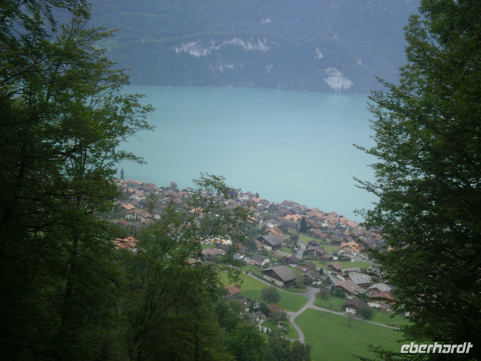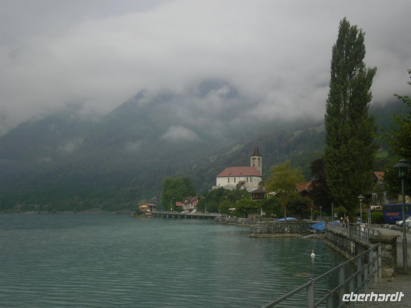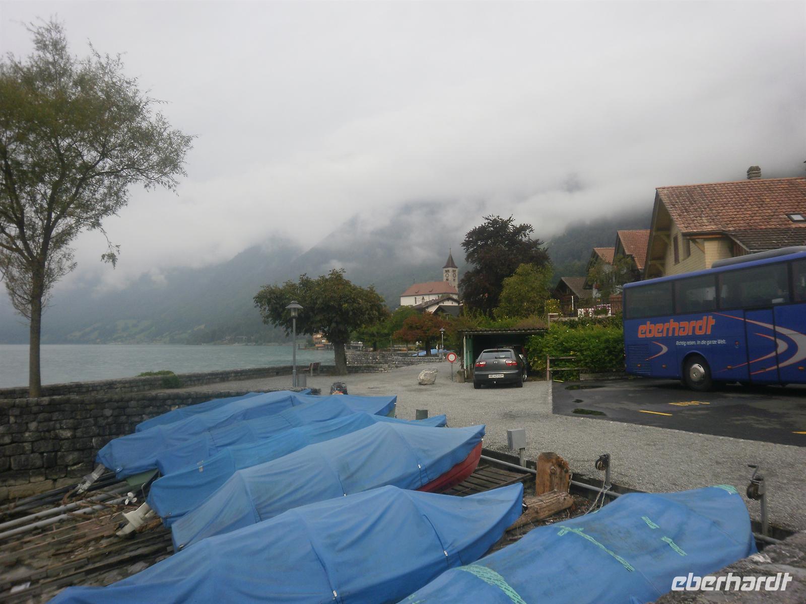 Am Morgen fuhren wir vorbei am Lungernsee und über den Brünigpass ins Berner Oberland nach Brienz. Der ziemlich langgestreckte Ort am Ufer des Brienzer Sees ist der Mittelpunkt der Oberländer Holzschnitzkunst und für uns war natürlich klar, dass wir eine der zahlreichen Holzschnitzereien hier besuchen mußten.