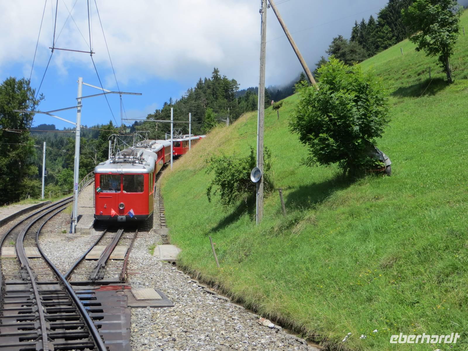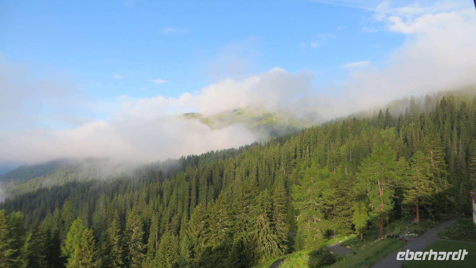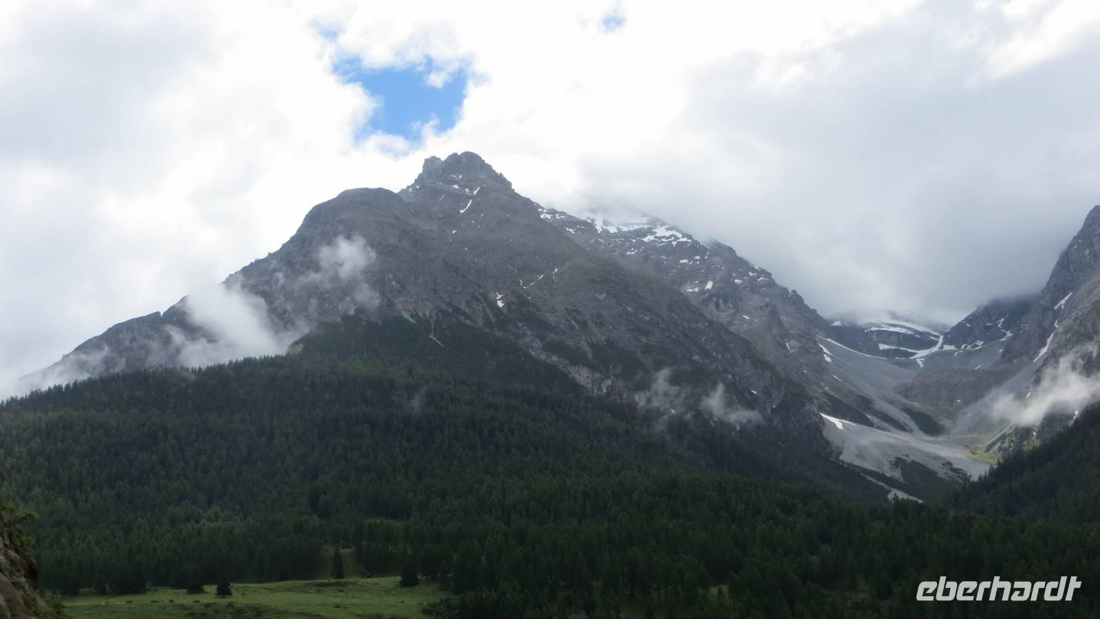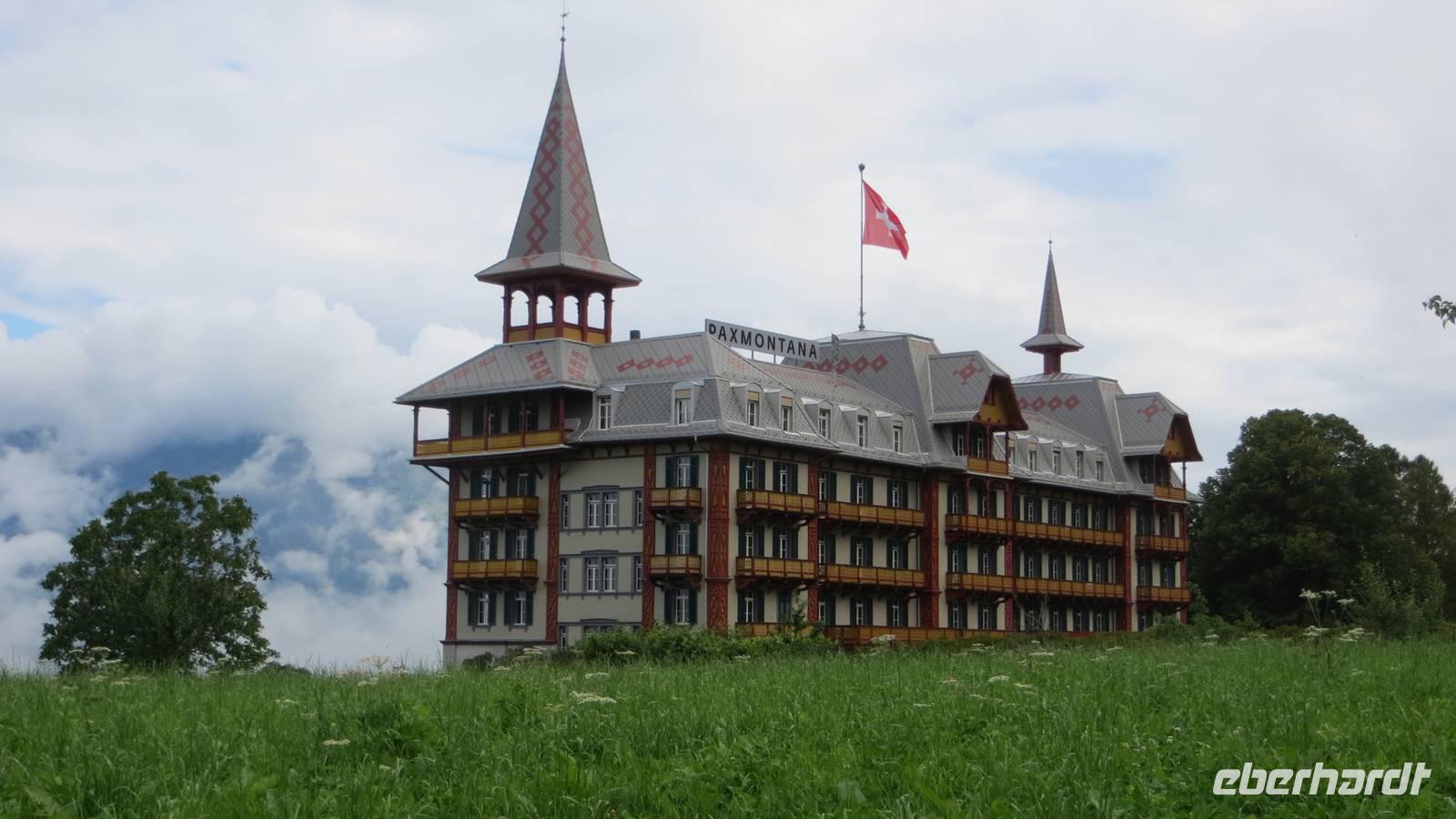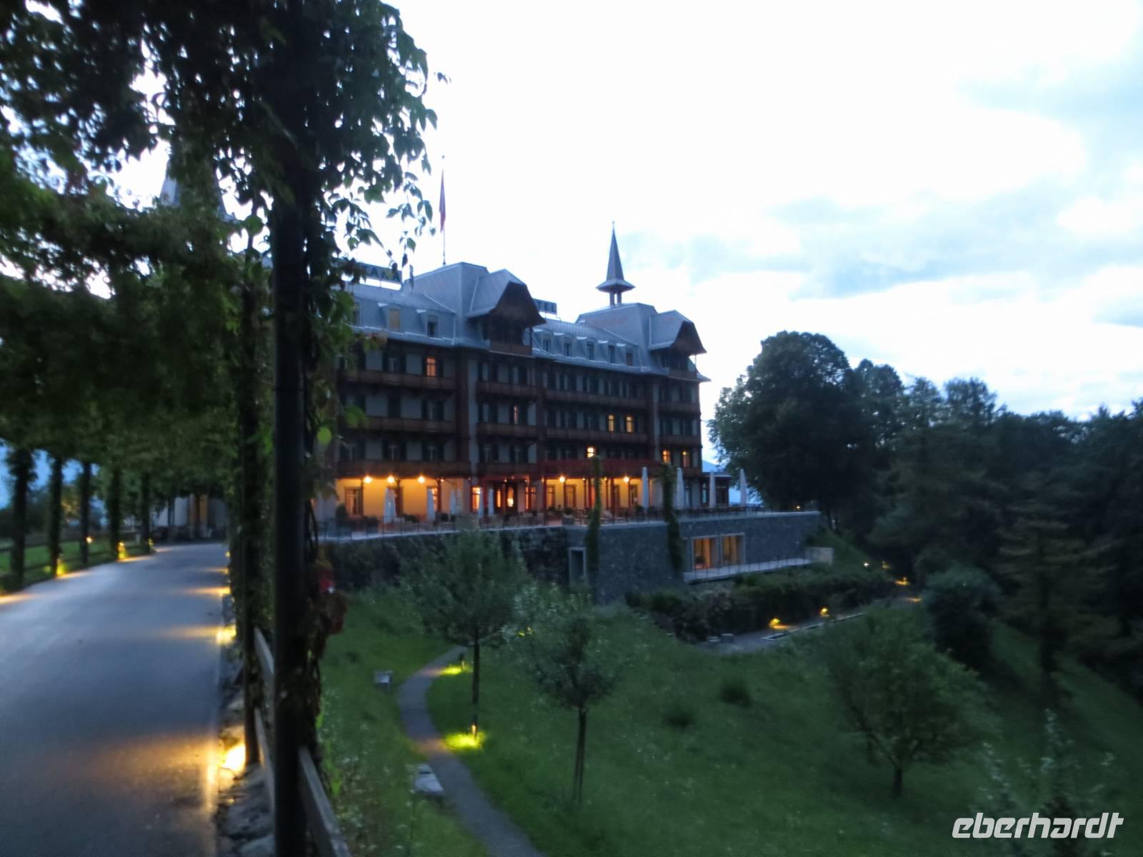 Am Morgen begann unsere Reise pünktlich in Dresden leider bei Regen. Unterwegs stiegen noch weitere Gäste zu, die mit dem Eberhardt-Haustür-Transfer-Service zugebracht wurden. Nachdem unsere Reisegruppe mit 21 Gästen komplett war, ging es vorbei an Nürnberg und dem Bodensee in die Schweiz. Durch das Rheintal fuhren wir in den größten Kanton der Schweiz, nach Graubünden. Wir erreichten am frühen Abend Davos. Von hier brachte uns die Standseilbahn auf die Schatzalp hoch über Davos in 1.920 Metern Höhe gelegen. Auf der Schatzalp erwartete uns das Berghotel Schatzalp. Im ehemaligen Luxussanatorium bezogen wir unsere Zimmer mit eigentlich schönem Blick über Davos und in die umliegende Bergwelt. Leider versperrten uns dicke Wolken die Sicht. Doch davon ließen wir uns unsere gute Laune nicht verderben. Im Speisesaal wurden wir mit einem vorzüglichen 4-Gang-Menü verwöhnt.