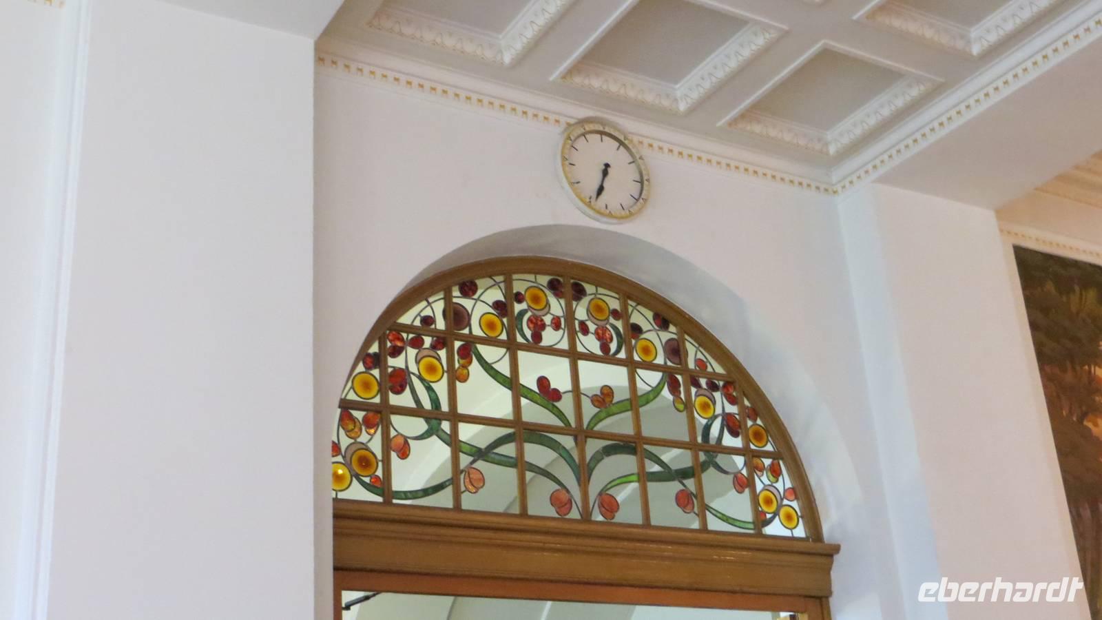 Vor dem Abendessen führte uns Dr. Nelson durch unser Hotel und sehr humorvoll erläuterte er uns die Geschichte des ehemaligen Luxussanatoriums auf der Schatzalp. Er machte uns auf viele schöne Details aufmerksam, die aus der Zeit der Errichtung des Hauses im Jahr 1900 noch vorhanden waren.