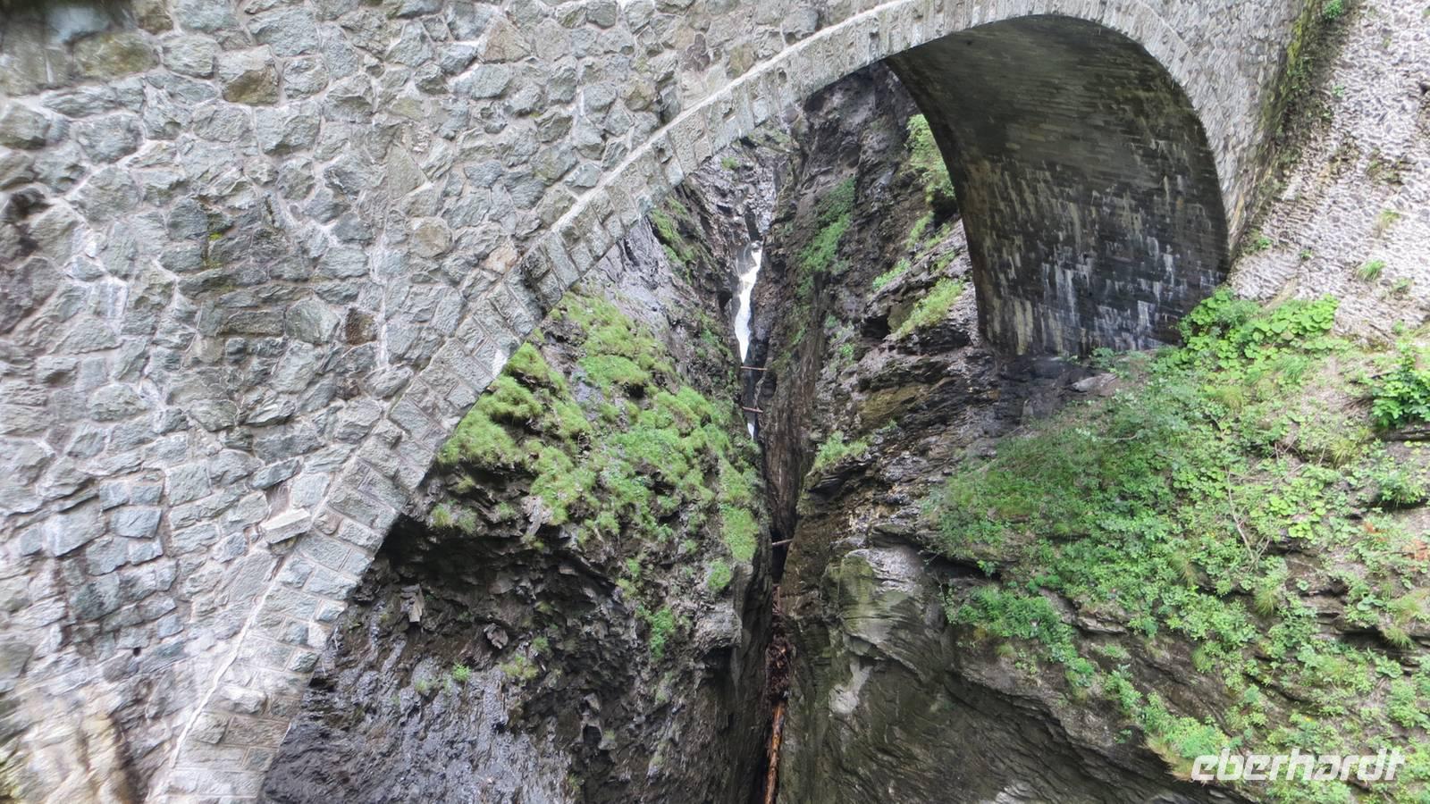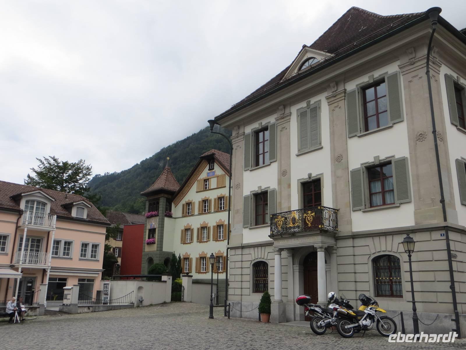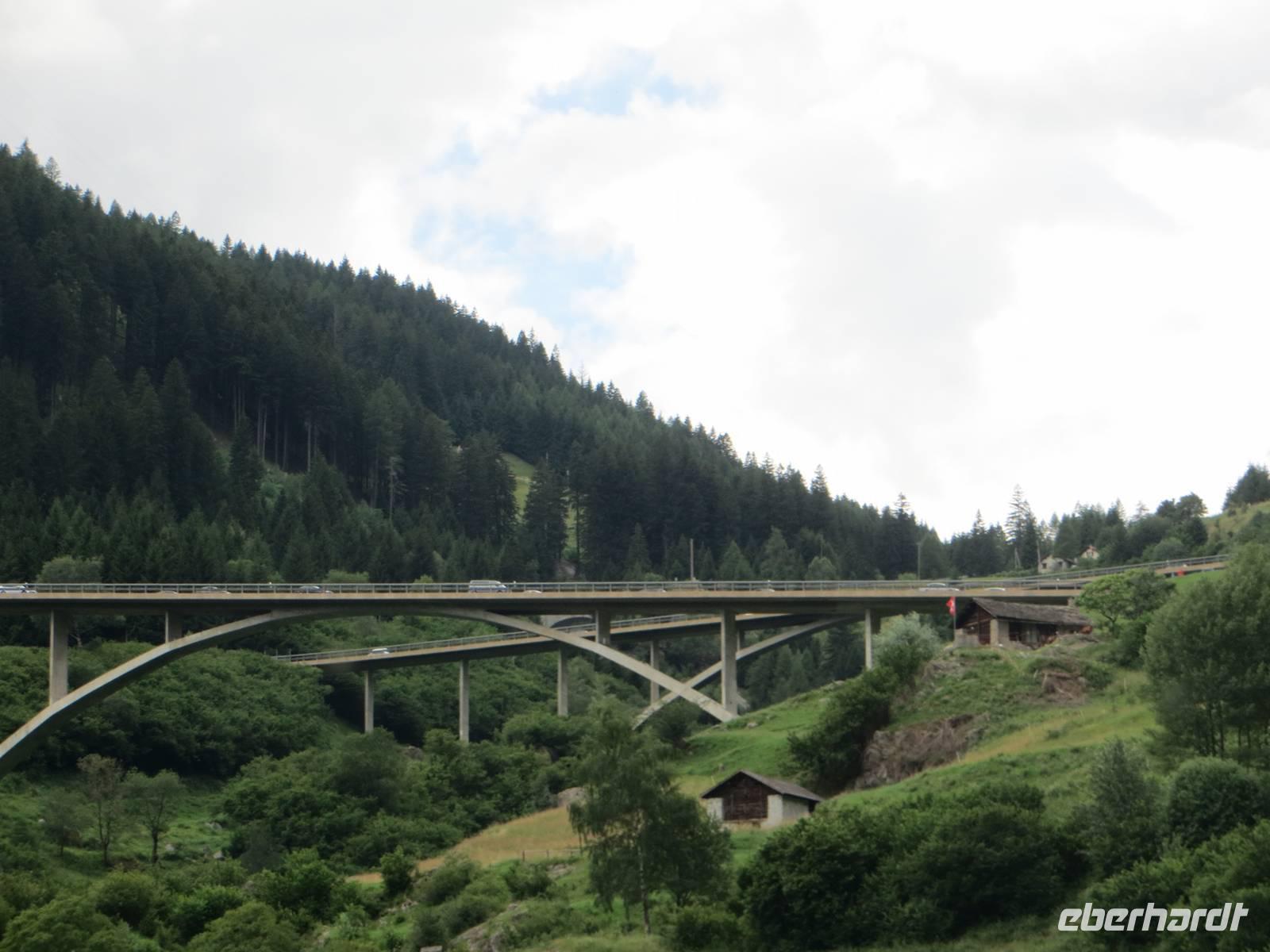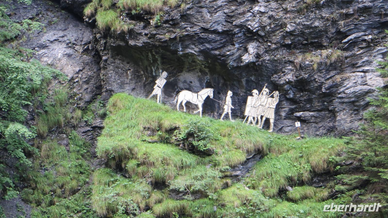 Die Lok rief uns mit ihrem Pfeifen wieder in den Zug und wir setzten unsere Fahrt fort. Sie führte uns über die Steffenbachbrücke, diese wird jedes Jahr vor dem Winter abgebaut, damit sie nicht durch Lawinen zerstört werden kann. Viel zu schnell war die schöne Fahrt in Realp zu Ende. Gerald unsere Chauffeur, erwartete uns bereits mit unserem Mittagsimbiss aus der Bordküche. Nun ging es durch das Hospental nach Andermatt und weiter zur Schöllenenschlucht. An der Teufelsbrücke legten wir einen Stopp ein. Der Legende nach sollen sich die Bewohner des Ursenentals beim Bau der Brücke über die wilde Reuss mit dem Teufel verbündet haben. Dieser forderte als Lohn für seinen Beistand das erste Lebewesen, welches über die Brücke ging. Er dachte natürlich an ein schönes junges Mädchen. Aber die schlauen Ursener schickten einen Ziegenbock als erstes über die Brücke. Das behagte dem Teufel gar nicht, aber es war ein Lebewesen. Wir sahen die alte Steinbrücke und die Darstellung des Teufels mit dem Ziegenbock. Anschließend erreichten wir Altdorf. In dem Ort soll sich die Apfelschuß-Szene aus der Geschichte von Wilhelm Tell zugetragen haben. Bis heute ist nicht geklärt, ob Wilhelm Tell, der Nationalheld der Schweiz, überhaupt gelebt hat. Aber die Geschichte ist lebendig. Wir sahen das Tell-Denkmal, welches Wilhelm Tell mit seinem Sohn Walter darstellt. Den mittelalterlichen Wohnturm, vor dem das Denkmal steht, konnten wir besteigen. Wir hatten eine schöne Sicht über Altdorf und erfuhren einiges aus der Geschichte des Ortes. Danach erreichten wir Flüeli-Ranft, wo wir im Jugendstil-Hotel Paxmontana unsere Zimmer bezogen. Flüeli-Ranft ist ein besonderer Ort der Ruhe. Hier hat im 15.Jahrhundert Nikolaus von Flüe, auch Bruder Klaus genannt gelebt. Er ist der einzige Heilige der Schweiz. Im Hotel verzichtete man bewusst auf Radio und TV im Zimmer. Und diese Ruhe genossen wir auch. Dennoch konnten die Fußball-Fans natürlich das Final-Spiel der Fußball-WM zwischen Deutschland und Argentinien in der Bar im Fernsehen verfolgen. Die Freude über den Weltmeistertitel der deutschen Mannschaft war sehr groß.