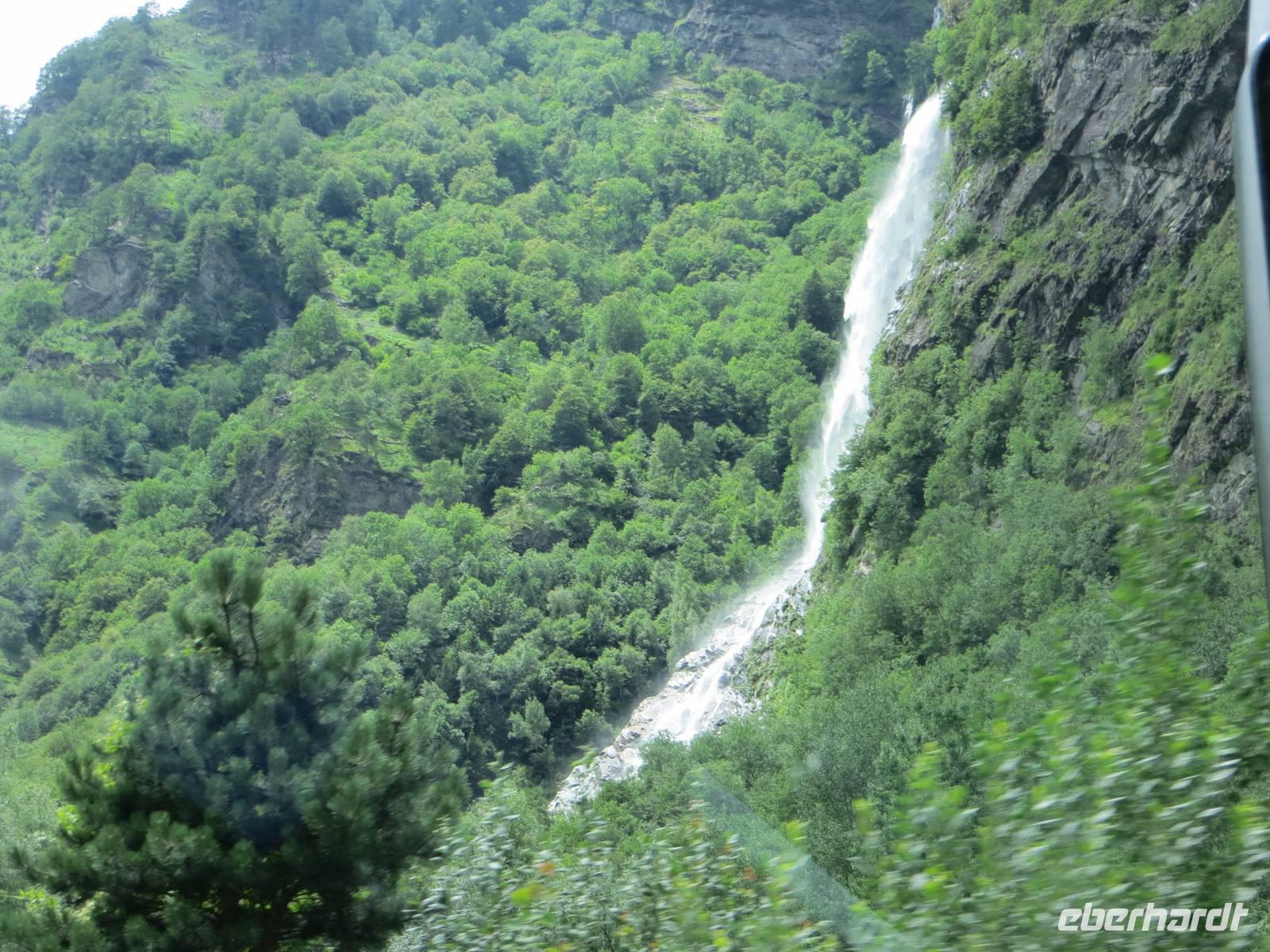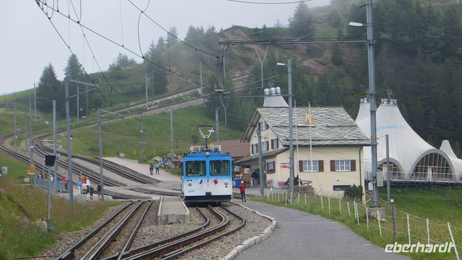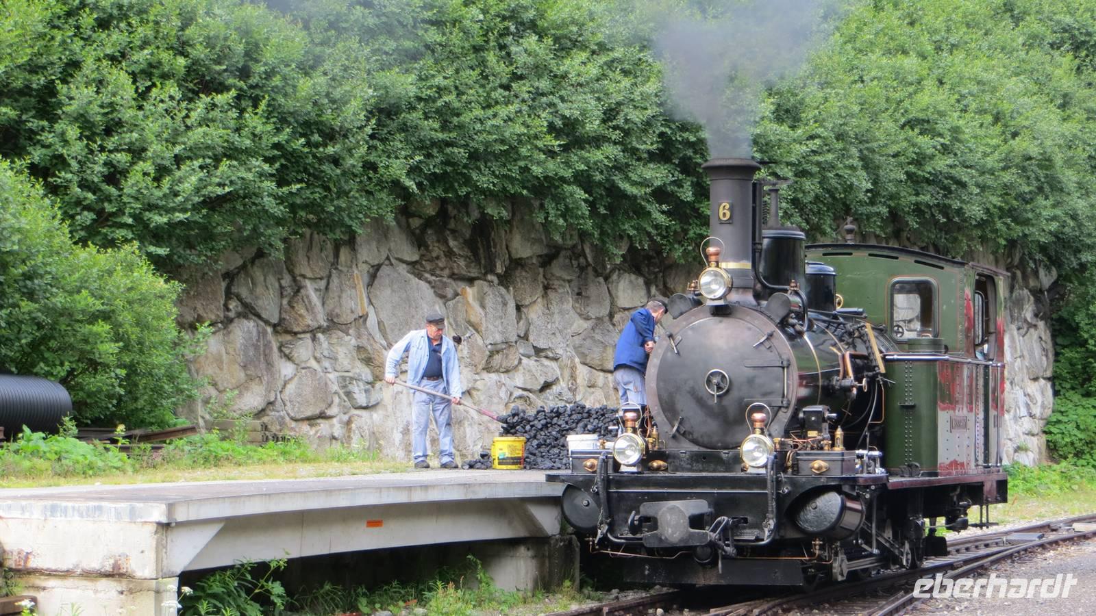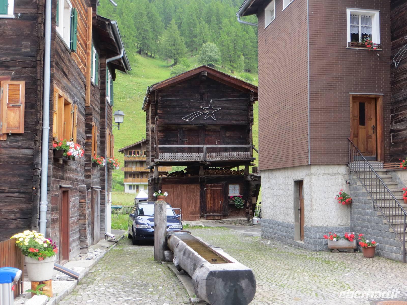 Heute stand ein weiterer Höhepunkt auf unserem Programm. Wir fuhren zunächst nach Ullrichen im Goms. Hier spazierten wir etwas durch den Ort und sahen uns die typischen Walliser Holzhäuser an. Danach brachte uns der Bus nach Oberwald zum Bahnhof der Furka-Dampfbahn. Wir wollten erleben, wie die Touristen vor über 100 Jahren gereist sind. Die Furka-Bergstrecke war die alte Strecke des Glacier-Express. Mit Eröffnung des Furka-Basis-Tunnels 1981 wurde diese stillgelegt. Ende der 80iger Jahre fanden sich viele Bahnbegeisterte, die die Bergstrecke in freiwilliger Arbeit wieder aufbauten, Lokomotiven und Wagen restaurierten und die Strecke ab 2002 wieder in Betrieb nahmen. Seit 2010 kann die gesamte Strecke von Oberwald bis nach Realp wieder befahren werden. Für uns war ein Wagen reserviert und unsere Reise wie in einer längst vergangen Zeit begann. Wir fuhren durch die herrliche Landschaft des Furka-Gebietes. Dabei bewunderten wir die Strecke, sahen die Alpenrosen und wilden Orchideen blühen und genossen die Fahrt. Wir konnten auch auf der Plattform stehen und die Fahrt wurde zu einem besonderen Erlebnis. Natürlich blieben schmutzige Hände nicht aus, denn die Dampflok wurde mit Kohle betrieben. An der Station Furke legten wir eine Pause ein. Hier überraschte uns der Furka-Wirt, der ein Freund von unserer Reiseleiterin war, mit einem Glas Wein und Kostproben von Käse und Wurst. Natürlich kauften wir dann auch noch Käse.