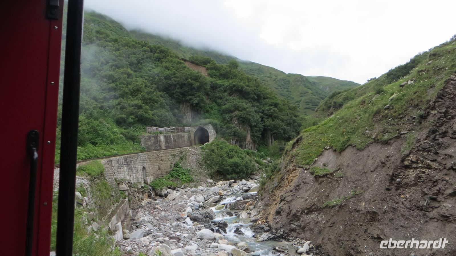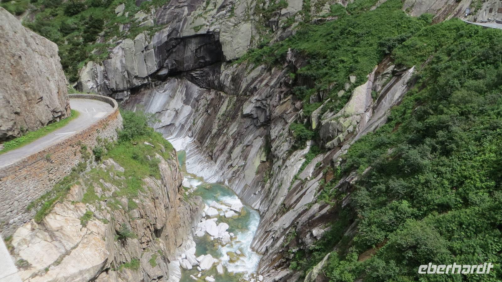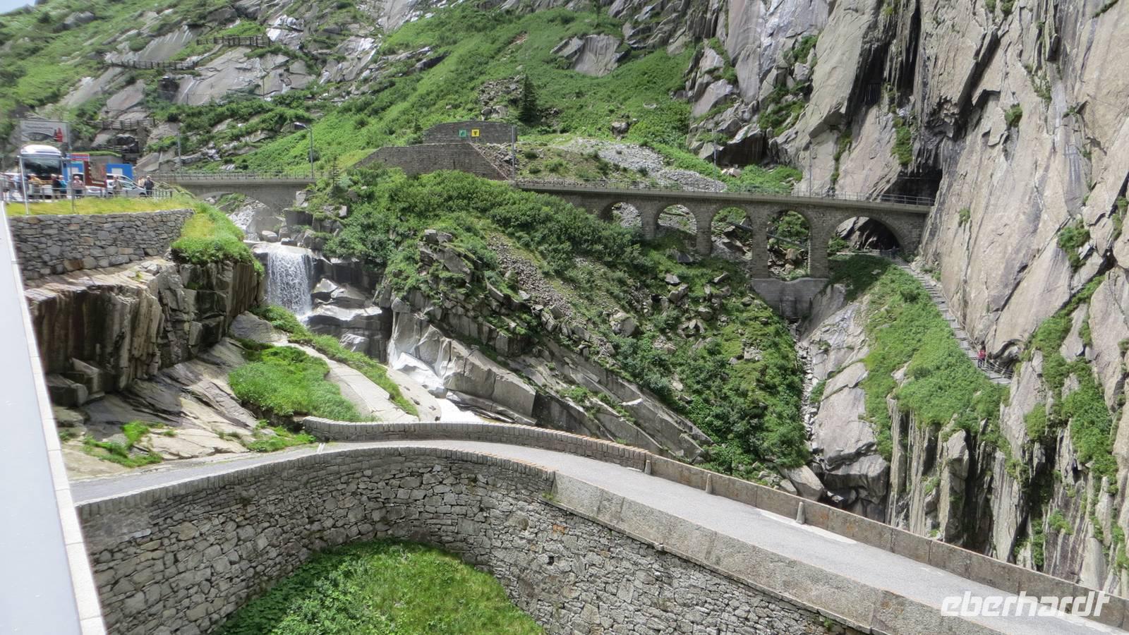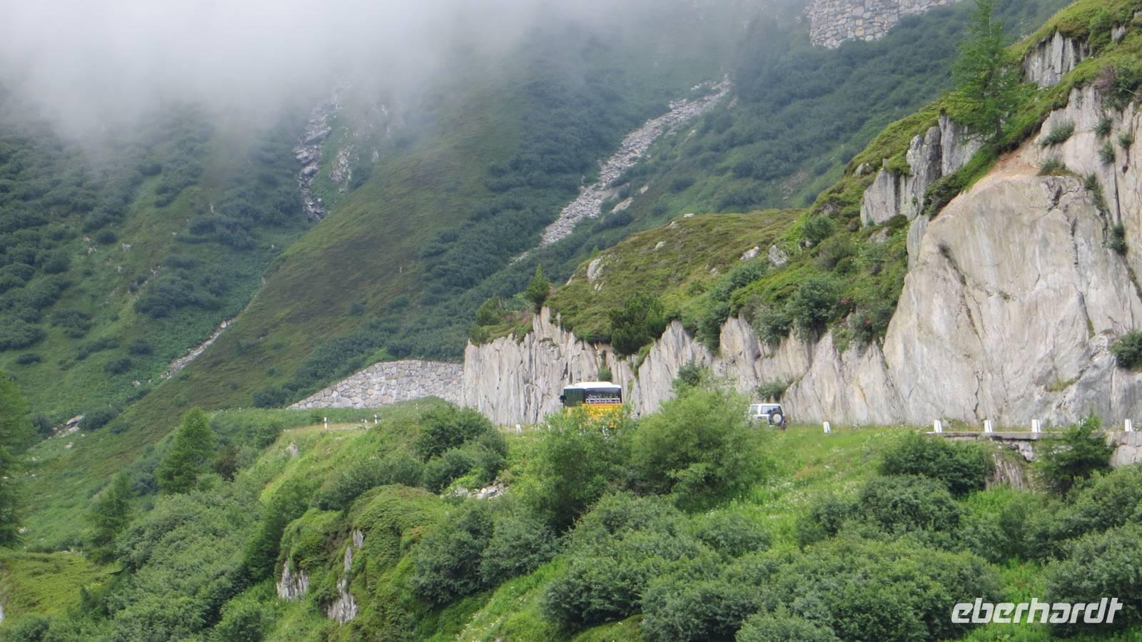 Am Morgen hieß es Abschied nehmen von der Schatzalp und Davos. Wir fuhren mit der Standseilbahn ein letztes Mal hinab nach Davos. Dort erwartete Gerald unser Chauffeur uns bereits mit dem Bus und unserem Gepäck, welches separat wieder ins Tal gebracht wurde. Heute stand für uns eine faszinierende Fahrt über zwei Passstraßen auf dem Programm. Unser Weg führte uns zunächst über Tiefencastel und Thusis zur sagenumwobenen Via Mala Schlucht. Wir hatten Zeit um diese einmalige Klamm, die der Rhein in das Felsmassiv gegraben hat zu bewundern. Einige sind die 324 Stufen hinabgestiegen und haben die Strudeltöpfe aus nächster Nähe betrachtet. Anschließend begaben wir uns auf die erste Passstraße. Es ging hinauf zum San Bernhardino. Gerald musste hier Schwerstarbeit leisten. Die Kehren waren teilweise so eng, dass es schon eine fahrerische Meisterleistung verlangte, diese mit dem Bus zu durchfahren. Wir hatten dabei einzigartigen Blicken in die wunderschöne Bergwelt. Auf der Passhöhe in 2.066 Metern Höhe legten wir einen kurzen Stopp ein, um Fotos machen zu können. Nun ging es hinab ins Tal. Durch das Valle Levantina im Tessin erreichten wir nach unserer Mittagspause die nächste Passstraße zum Nufenen-Pass. Dieser war besser ausgebaut und wir genossen die Fahrt auf den 2.478 Meter hohen Pass, welcher gleichzeitig die Grenze zwischen dem Tessin und dem Wallis bildet. Nach einer Kaffee-Pause ging es hinab ins Goms, das Tal der jungen Rhône. In Ullrichen und Obergersteln sahen wir die typischen Walliser Holzhäuser und Spycher mit den Mäuseplatten. Die Spycher standen auf Holzpfosten auf denen eine runde Steinplatte lag, damit die Mäuse nicht an die Vorräte kamen. Nun ging es hinauf nach Gletsch, wo wir im Hotel Glacier du Rhône unsere Zimmer bezogen. Das Hotel war ein ehemaliges Grand Hotel und hier war die Zeit wirklich stehen geblieben. Die Zimmer verfügten über ein Waschbecken und Toiletten und Duschen befanden sich auf der Etage. Aber das wussten wir und wir wollten ja bewusst in die alte Zeit eintauchen. Am Abend wurde uns wieder ein vorzügliches Menü serviert.
