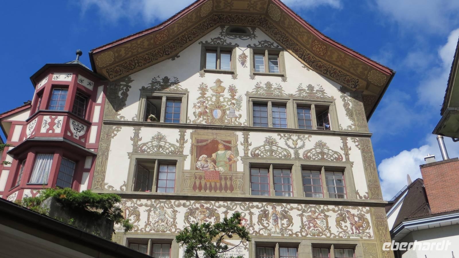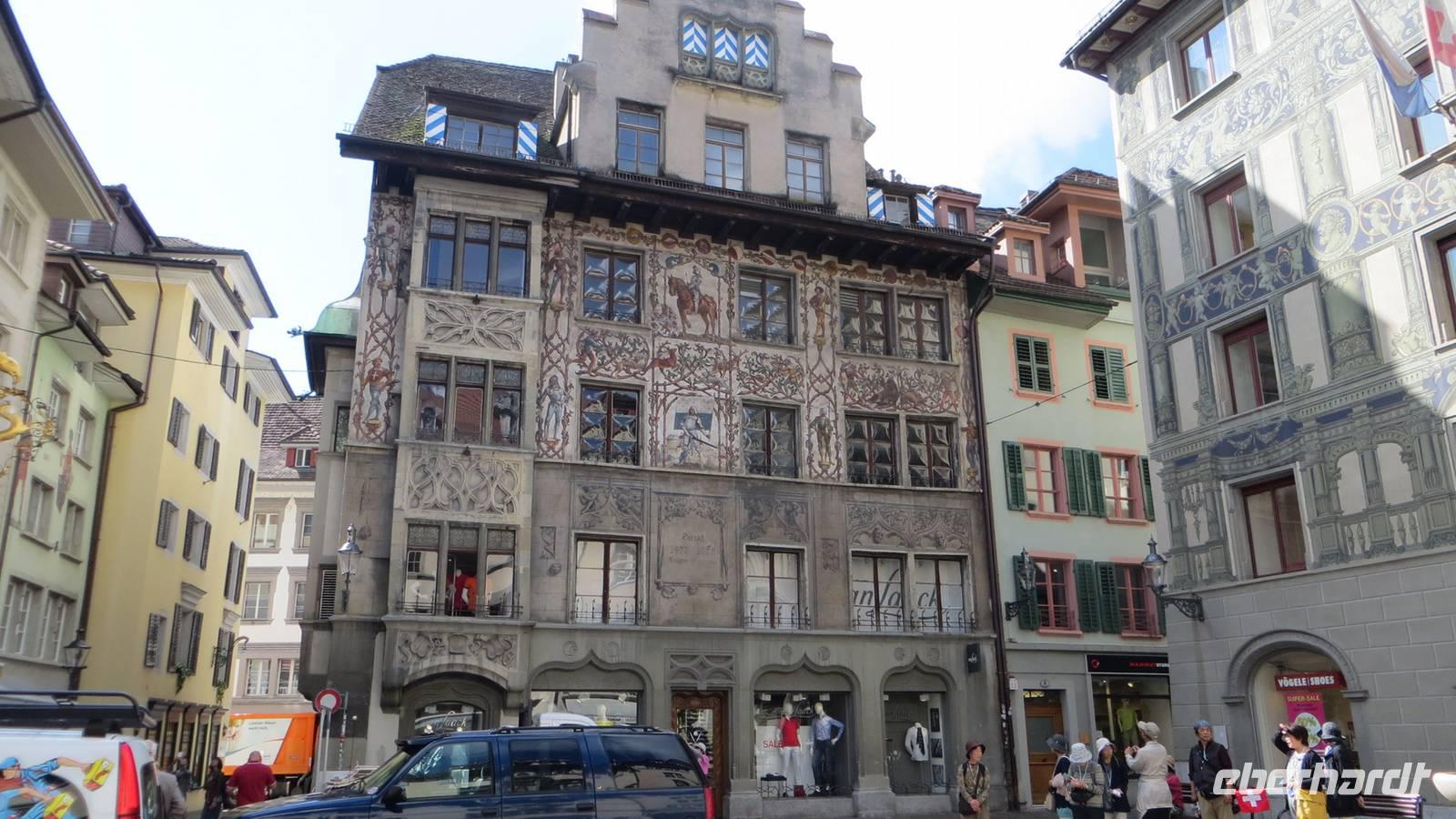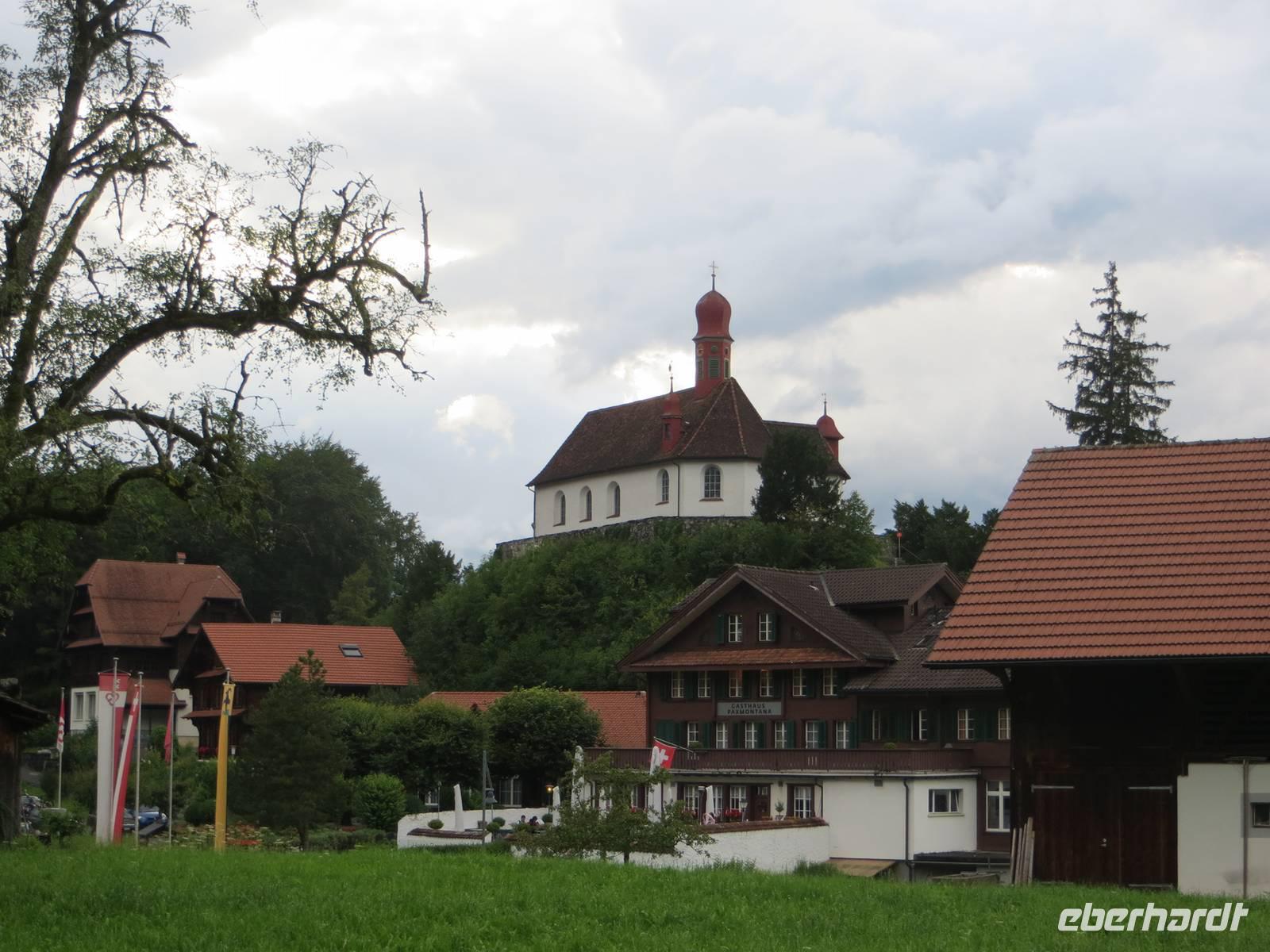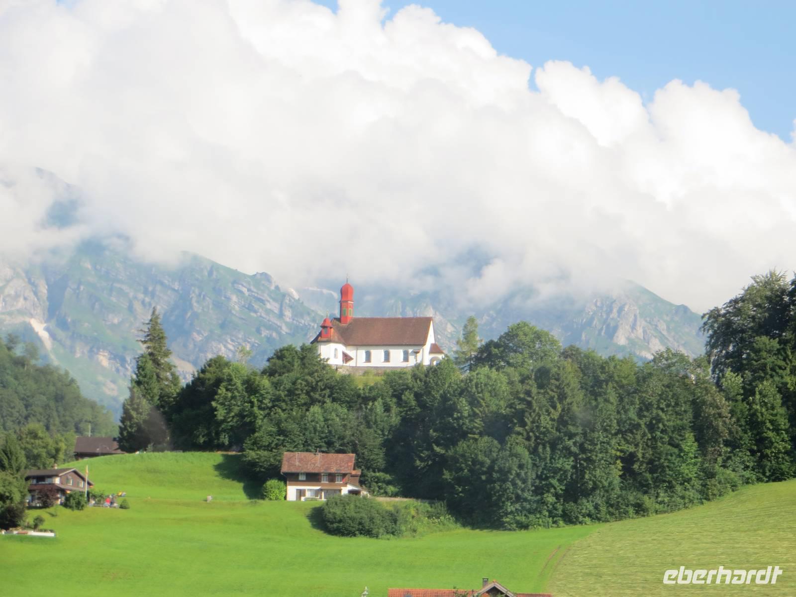Am Morgen ging es zunächst nach Luzern. Wir bummelten durch die schöne Altstadt und über die Kapellbrücke, welche das Wahrzeichen der Stadt ist. Sie stammt aus dem 17.Jahrhundert. 1993 im August ist die Brücke abgebrannt, wurde aber sofort wieder aufgebaut. In ihrem First hängen noch wertvolle Gemälde zur Stadtgeschichte. Ein Großteil der Bilder verbrannte damals mit. Heute sahen wir nur noch wenige dieser Bilder. Nun bestiegen wir einen Dampfer der Flotte der Schifffahrtsgesellschaft Vierwaldstättersee. Das Dampfschiff Stadt Luzern wurde 1925 erbaut und fuhr immer noch zuverlässig täglich über den See. Uns brachte es nach Vitznau. Wir sahen den Bürgenstock und Weggis. Auch die Silhouette von Luzern war vom Schiff aus schön anzusehen. In Vitznau stiegen wir in die Rigi-Bahn um. Für uns waren Plätze in einem der nostalgischen Wagen reserviert. Die Bahn wurde 1871 erbaut und war die erste Zahnradbahn der Welt. Noch heute sind 90 % der Schienenanlagen im Originalzustand. In gemächlicher Fahrt ging es hinauf auf die 1.752 Meter hohe Rigi, auch Königin der Berge genannt. Uns blieb genügend Zeit um auf den 1.797 Meter hohen Gipfel zu steigen und einen Mittagsimbiss einzunehmen. Leider zogen viele Wolken über den Berg, so dass wir nur ab und zu die umliegenden Seen, wie den Vierwaldstättersee, den Zuger See und den Laurenzer See sehen konnten. Auch die Berge des Berner Oberlandes und der Ostschweiz versteckten sich in den Wolken. Dennoch war es ein Erlebnis. Mit dem Zug ging es am Nachmittag wieder im nostalgischen Wagen zurück nach Vitznau. Hier durften wir noch einen kurzen Blick in das Depot der Rigi-Bahn werfen. Wir sahen die beiden Dampfloks aus den Jahren 1922 und 1925, die heute noch im Einsatz sind. Anschließend führte uns unsere Tour nach Küssnacht an der Rigi. Wir besuchten die Hohle Gasse, wo Wilhelm Tell den Landvogt Gessler erschossen haben soll. In einer kleinen Multi-Media-Show wurde die Geschichte um Wilhelm Tell und die Hohle Gasse erzählt. Nun kehrten wir mit dem Bus über Luzern nach Flüeli-Ranft zum Hotel zurück.