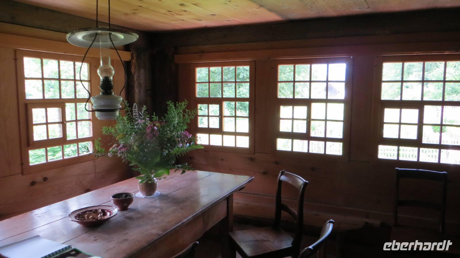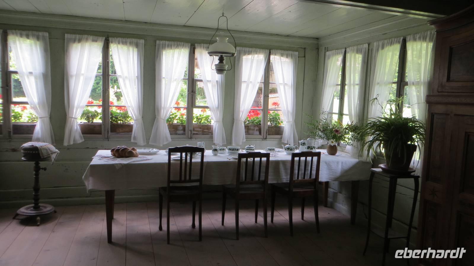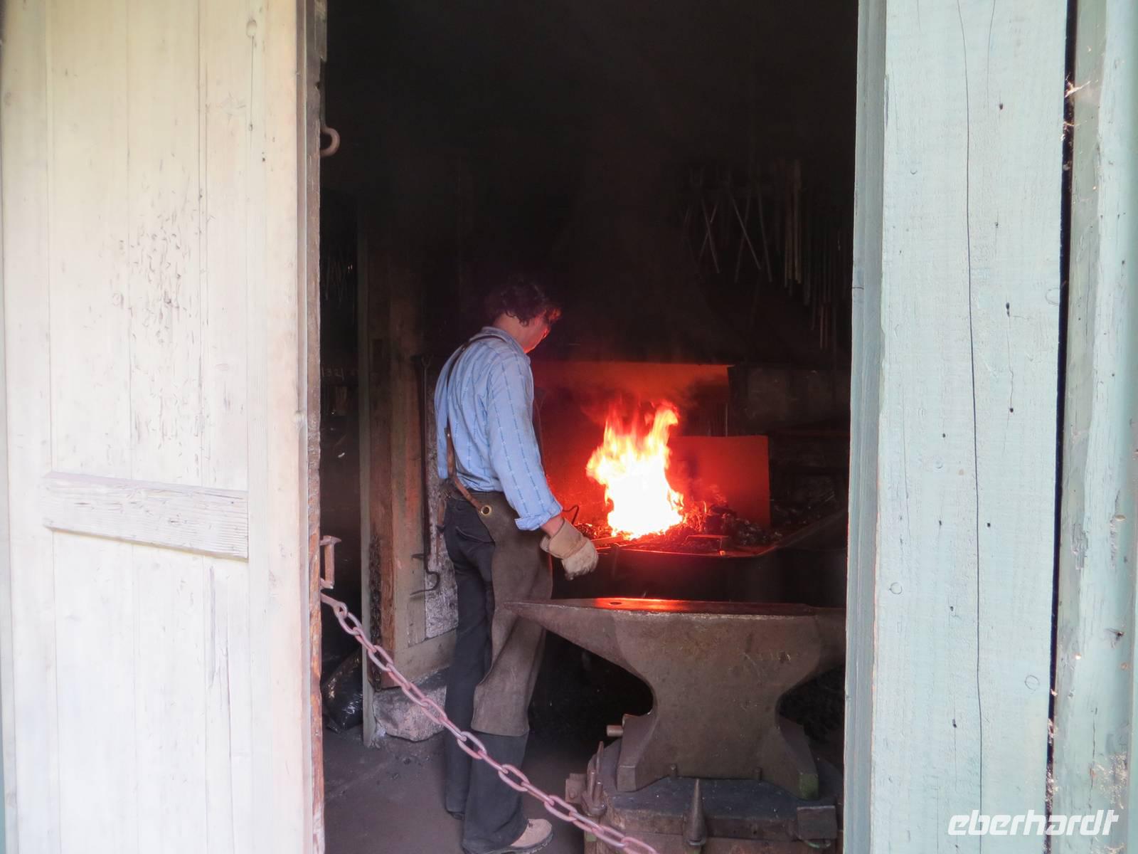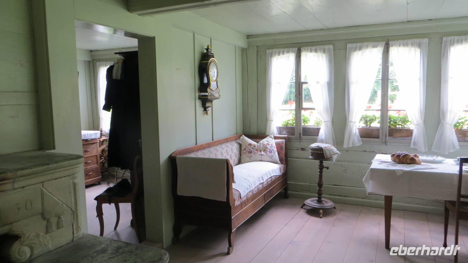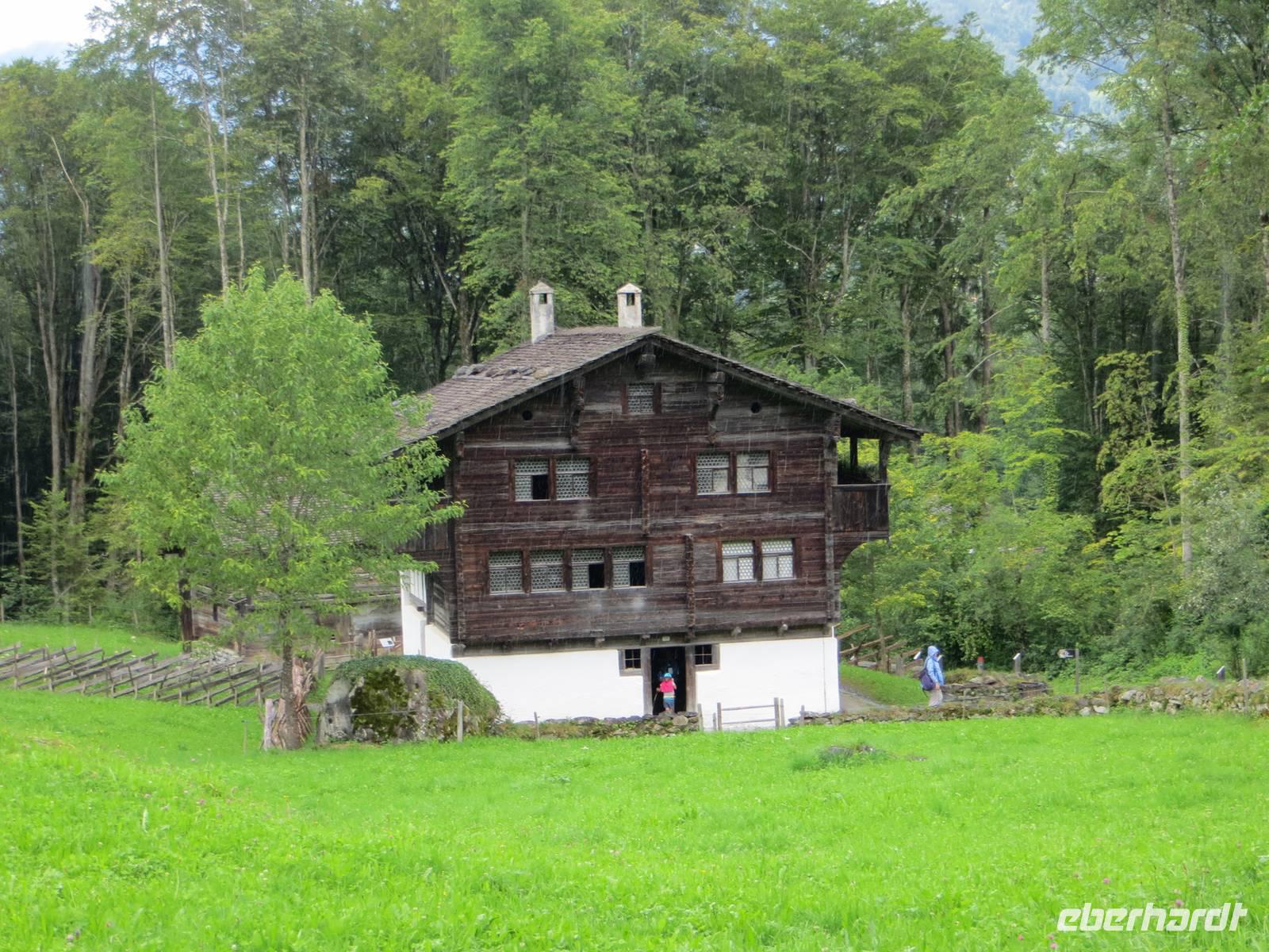 Nach dem Frühstück brachte uns unser Bus vorbei am Sarnersee und am Lungernsee über den Brünig-Pass (1.007 Meter) nach Hoffstetten am Brienzer See. Ein Besuch im Schweizerischen Freilichtmuseum stand auf unserem Programm. In ihm wurden aus der ganzen Schweiz alte Häuser, welche am Originalstandort abgebaut wurden, zusammengetragen und originalgetreu wieder aufgebaut und eingerichtet. Dario, der Sales-Manager des Museums und Ruedi, unserem Museumsführer, begrüßten uns herzlich. Gemeinsam begaben wir uns auch hier auf eine Zeitreise. Ruedi zeigte verschiedene Häuser und gab uns interessante Erläuterungen zur Geschichte dieser und das Leben in ihnen in vergangenen Zeiten. Wir sahen das Haus eines reichen Großgrundbesitzers, der es einem Stadthaus nachempfunden hat. Im Tagelöhnerhaus konnten wir erahnen, wie schwer das Leben war. Verschiedene alte Handwerke wurden im Museum gepflegt: wir schauten der Klöpplerin zu, sahen einen Posamentenwebstuhl und staunten über die Würste, welche im First eines Hauses geräuchert wurden. Die Führung war sehr kurzweilig und so verging die Zeit wie im Fluge. Die Mittagszeit war gekommen und wir stärkten uns je nach Lust und Hunger individuell in einem der Gasthäuser. Anschließend gingen wir allein auf Entdeckungsreise. Jeder konnte ganz nach seinen Wünschen durch die weitläufige Anlage spazieren und sich das anschauen, was ihn besonders interessierte. Ich schaute dem Schmied und dem Köhler bei der Arbeit zu. In einem alten Walliser Haus zeigte eine Weberin, wie sie mit dem mechanischen Webstuhl wunderschöne Stoffe webte. In der Drogerie wurden verschiedene Salben und Tinkturen hergestellt. Im Sägewerk sahen wir, wie Wasserkraft die Säge angetrieb und Baumstämme zu Brettern zerteilte. Immer wieder konnten wir in den einzelnen Häusern sehen, wie die Menschen vor 100 - 150 Jahren gelebt haben. Aber auch einigen Hof- und Haustieren begegneten wir. So verging auch der Nachmittag ganz rasch. Mit dem Bus kehrten wir nach Flüeli-Ranft zurück. Bis zum Abendessen bleib noch etwas Zeit zum Erholen.