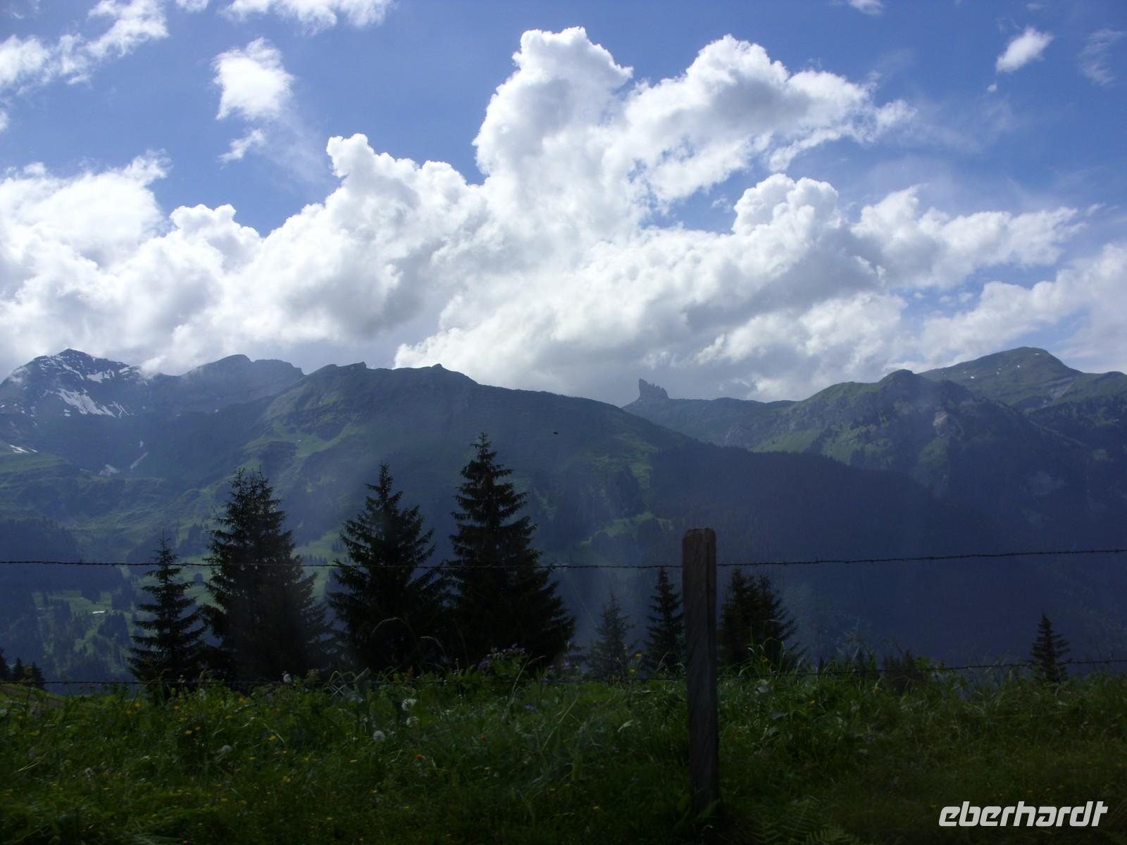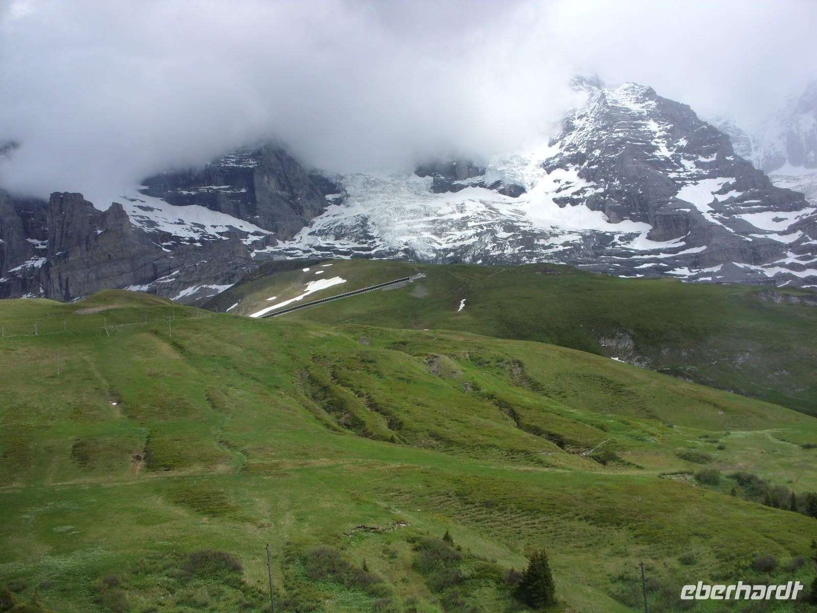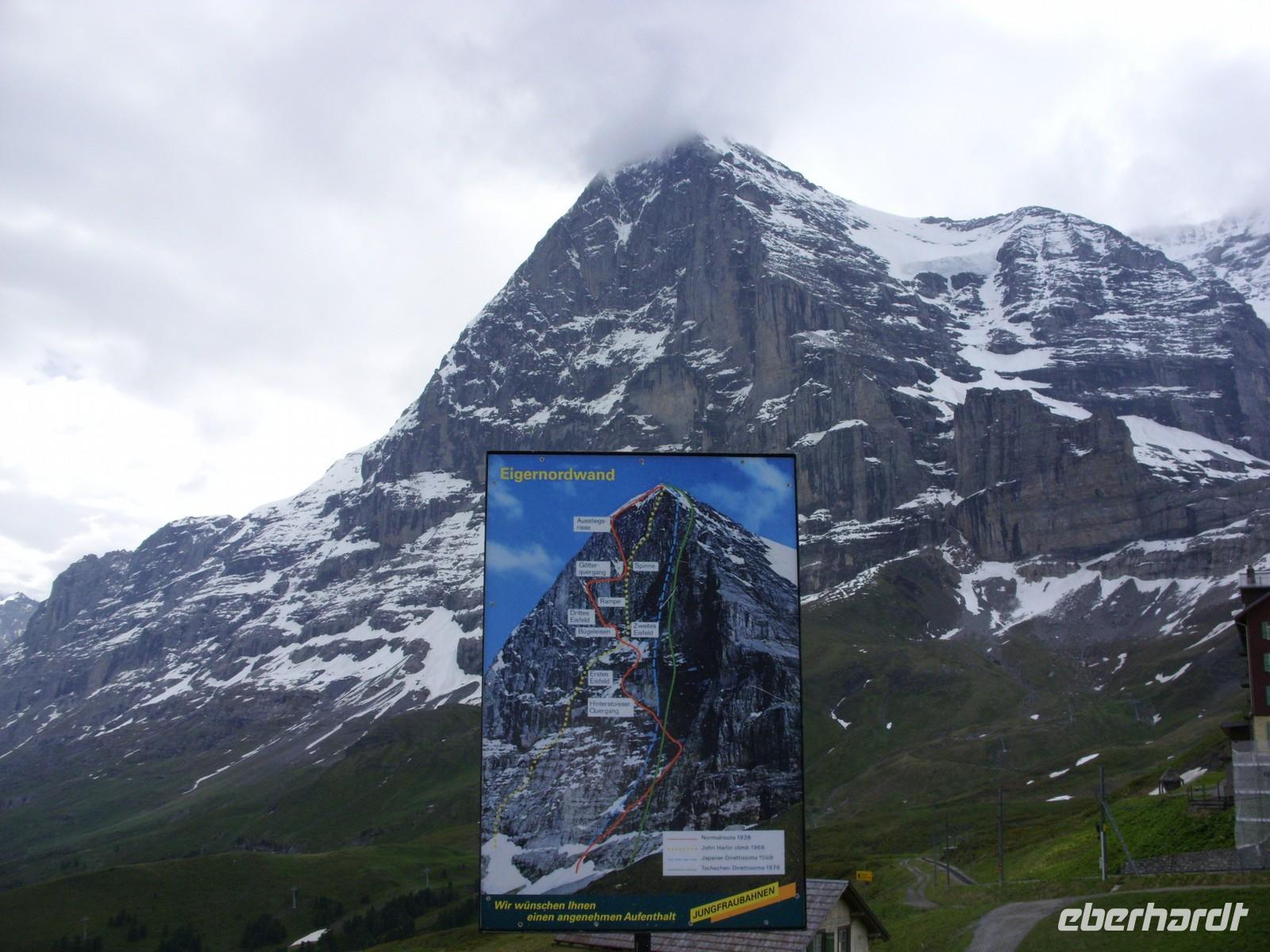 Über Basel erreichten wir schließlich am Nachmittag die Schweizerische Eigenossenschaft. Mit Nationalhymne und Nationalflagge fuhren wir standesgemäss in unser Urlaubsland ein. Nach einigen Kilometern machten wir kurz vor Bern nochmals eine kurze Pause ehe uns unser Chauffeur Andreas Glatzel weiter in die Bergwelt hineinfuhr. Vorbei ging es am Thuner See und Interlaken. Schließlich folgten wir der Schwarzen Lütschine und passierten alsbald den Orteingang von Grindelwald. Hier erwartete uns nach einigen Metern die Jungrau Lodge mit ihren zwei Häusern. Die meisten Gästen waren dann tatsächlich im sogenannten Neubau untergebracht und hatten von ihrem Zimmer aus einen herrlichen Blick auf die Eigernordwand, die jedoch ein wenig in den Wolken hing. Nach Bezug der Zimmer gab es dann sogleich ein wohl schmeckendes 4-Gang-Menü bis wir alle recht geschafft in unsere gemütlichen Betten fielen.