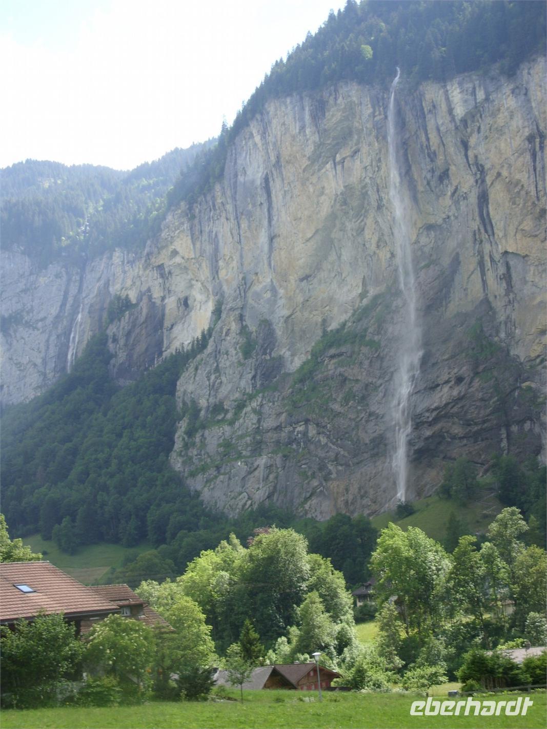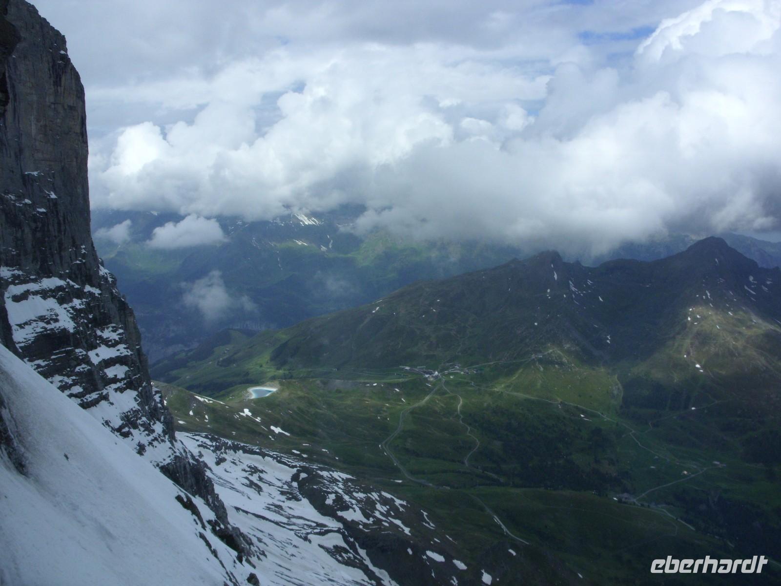 Der fünfte Reisetag begann mit einem Blick aus dem Fenster ? leider lagen die Berggipfel wieder eimal in den Wolken. Insofern lohnte sich natürlich keine Auffahrt auf einen der Berge, die von Grindelwald per Seilbahn oder Zahnradbahn erreicht werden können. Es bliebt also nur ein Spaziergang durch den Ort oder die Entdeckung einer weiteren Schlucht. Dies war jedoch die eindrucksvolle Gletscherschlucht des Unteren Grindelwaldsgletscher, der einst direkt bis ans Dorf Grindelwald reichte. Hier gab es typische Reste der Gletscherüberformung wie zum Beispiel Gletschertöpfe zu sehen. Auch Marmor wurde in früheren Zeiten hier abgebaut.