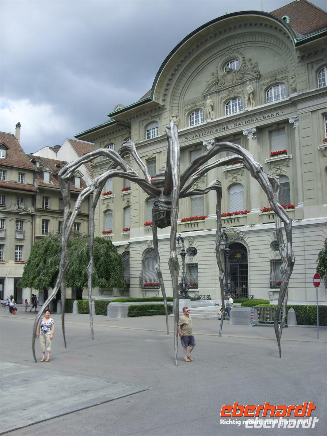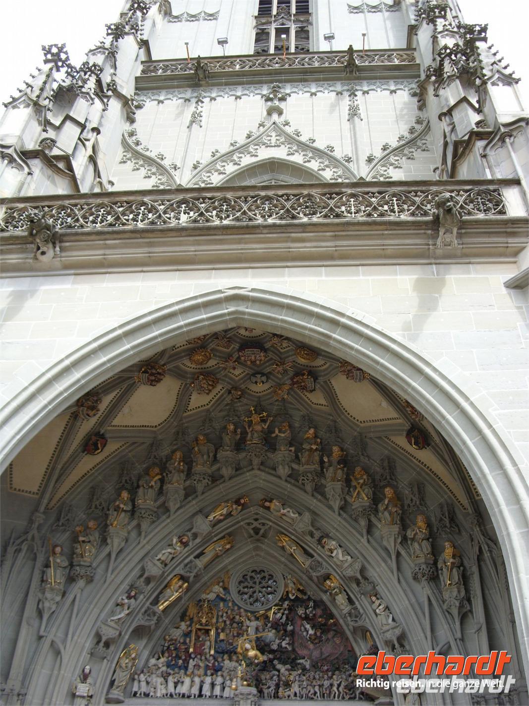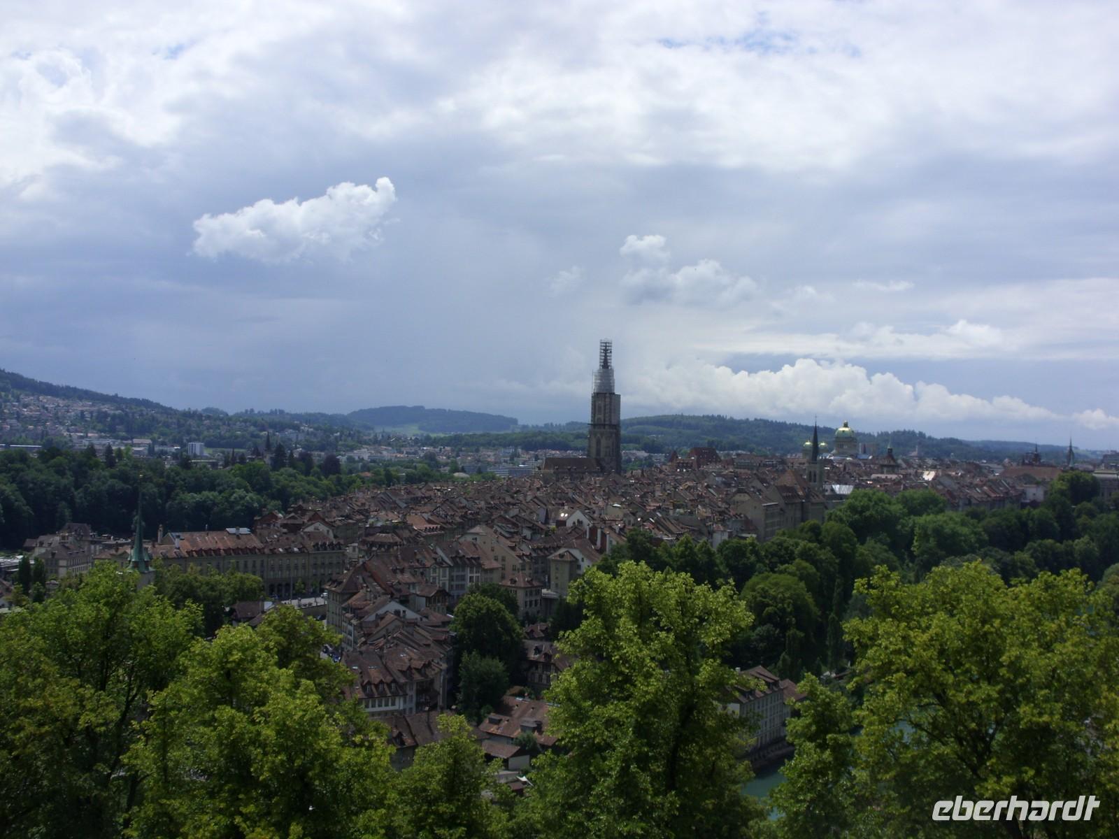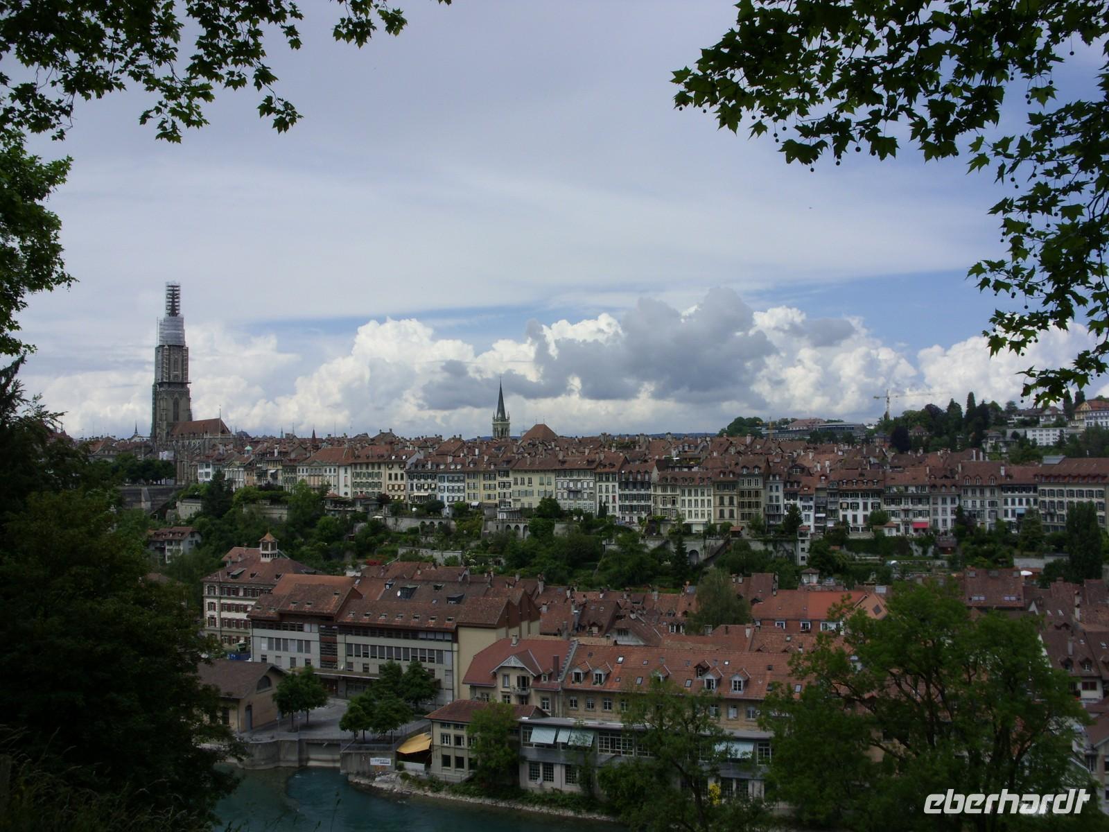 Im Anschluss fuhren wir gen Bern. Unterwegs hielten wir nochmals für einen kurzen Mittagsimbiss an ehe wir bei der Anfahrt das Stadtpanorama auf Bern genossen. Das war doch ein wunderschönes Fotomotiv! Um 14 Uhr begann dann unsere Stadtführung mit einer einheimischen Gästeführerin durch die Bundeshauptstadt ? Erstes Ziel war der wunderschöne Rosengarten, wo wir einiges über die Geschichte der Stadt erfuhren und nochmals das herrliche Panorama genossen. Anschließend fuhren wir durch die Stadt, folgten zeitweise der Aare, sahen Brücken, Villen, Kirchen und das Bundeshaus. Schließlich stiegen wir an der Zytglogge (Zeitglockenturm) aus, lauschten dort dem Glockenspiel und setzten unsere Entdeckungstour zu Fuss fort. Nun sahen wir Bern's Wahrzeichen ? rund 6 km lange Laubengänge, die längste gedeckte Einkaufstraße der Welt! Zwischendrin staunten wir über so manch schönen Brunnen oder Platz und hatten schließlich das Münster erreicht. Nach weiteren Erklärungen zur Geschichte des Gotteshaus stand uns der weitere Nachmittag zu freien Verfügung. Also gingen wir bummeln, einen Kaffee trinken, setzten uns auf eine Bank und genossen das Flair von Bern.
