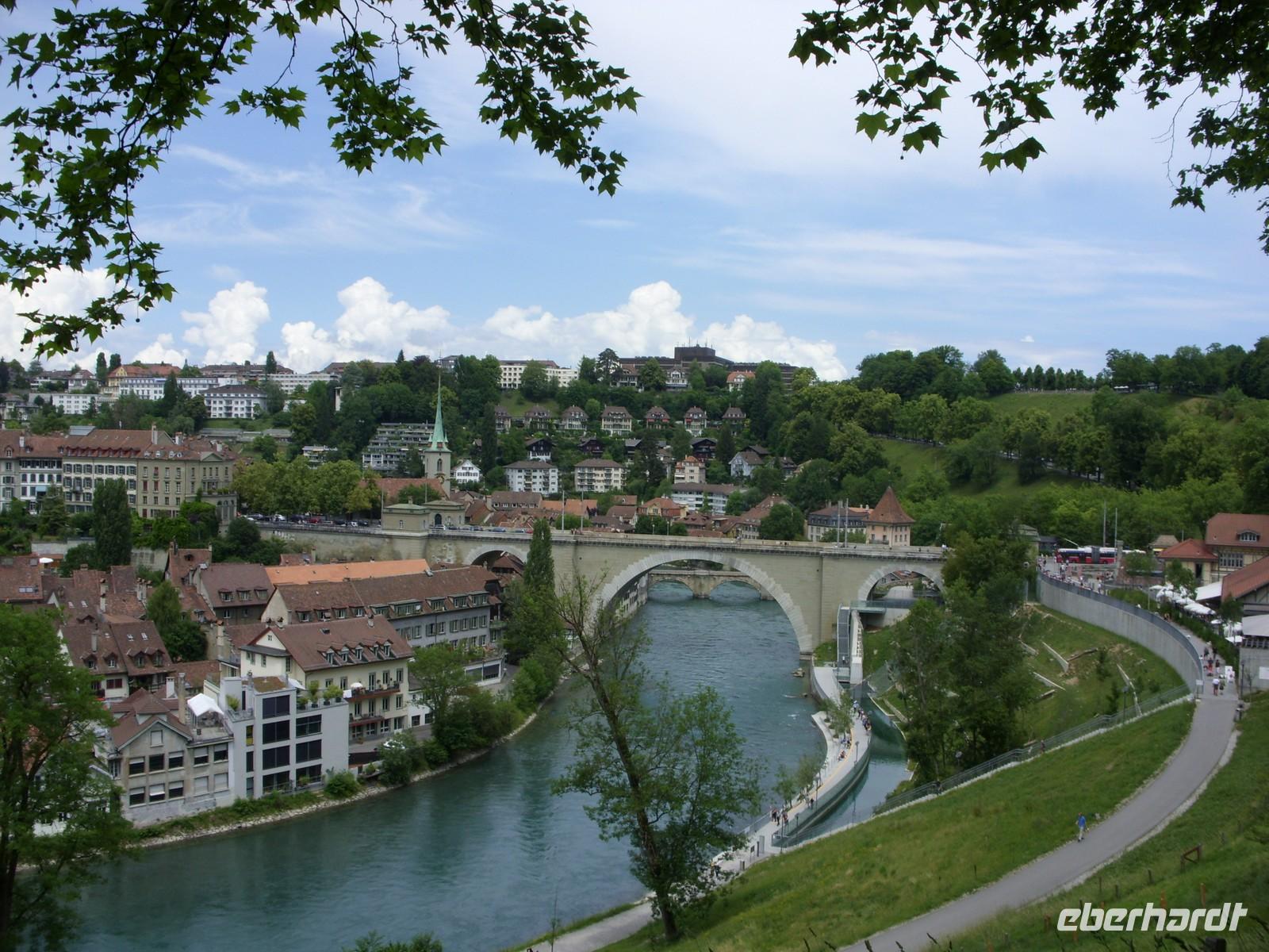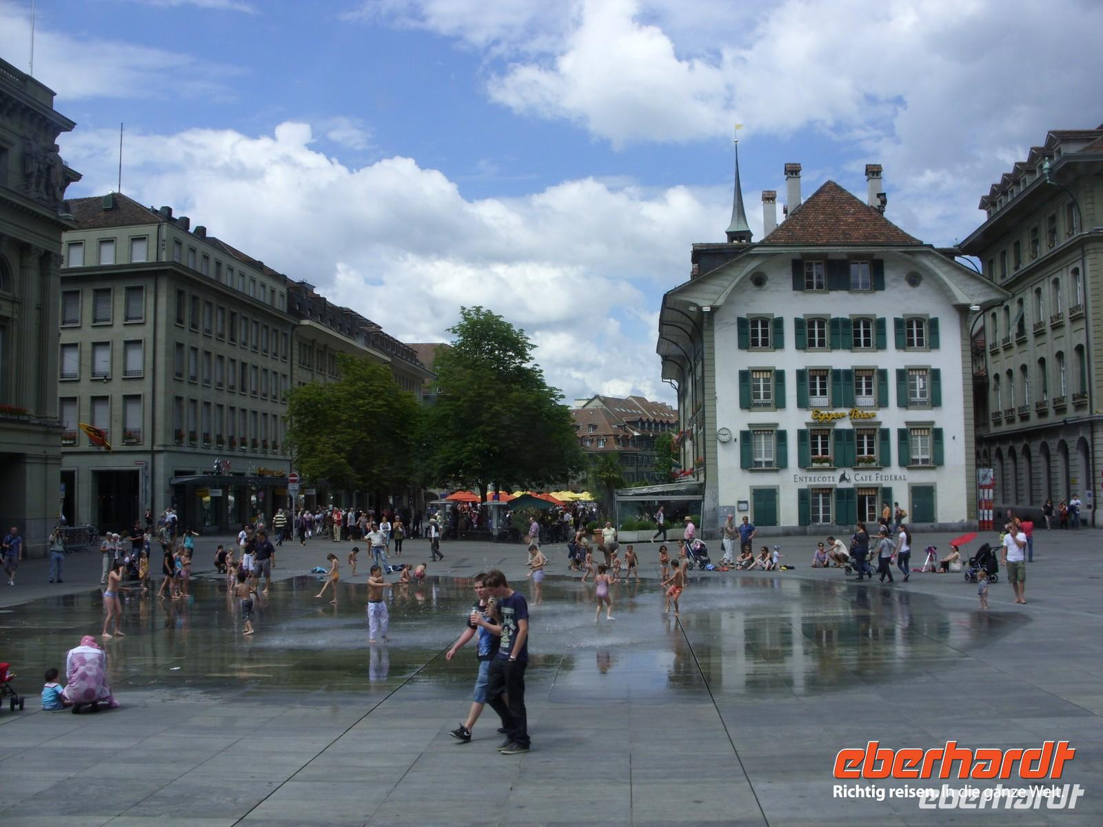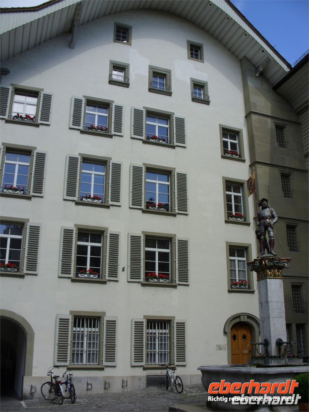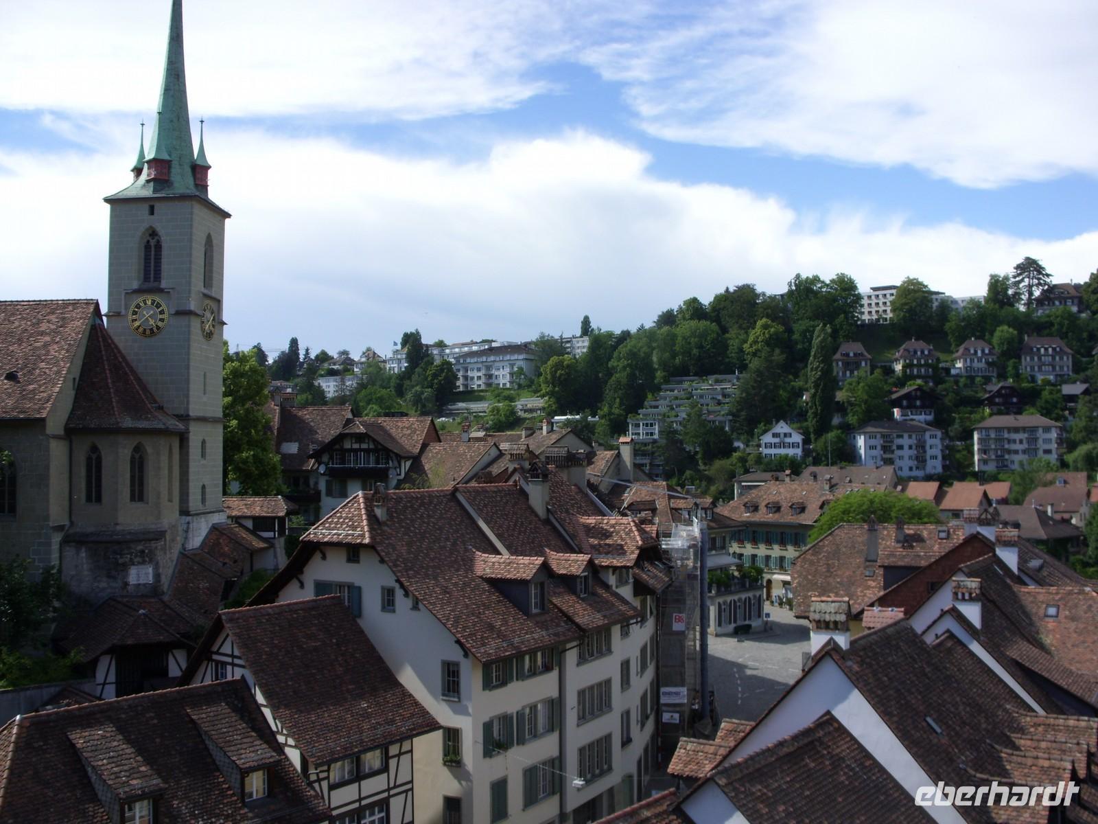 Im Anschluss fuhren wir gen Bern. Unterwegs hielten wir nochmals für einen kurzen Mittagsimbiss an ehe wir bei der Anfahrt das Stadtpanorama auf Bern genossen. Das war doch ein wunderschönes Fotomotiv! Um 14 Uhr begann dann unsere Stadtführung mit einer einheimischen Gästeführerin durch die Bundeshauptstadt ? Erstes Ziel war der wunderschöne Rosengarten, wo wir einiges über die Geschichte der Stadt erfuhren und nochmals das herrliche Panorama genossen. Anschließend fuhren wir durch die Stadt, folgten zeitweise der Aare, sahen Brücken, Villen, Kirchen und das Bundeshaus. Schließlich stiegen wir an der Zytglogge (Zeitglockenturm) aus, lauschten dort dem Glockenspiel und setzten unsere Entdeckungstour zu Fuss fort. Nun sahen wir Bern's Wahrzeichen ? rund 6 km lange Laubengänge, die längste gedeckte Einkaufstraße der Welt! Zwischendrin staunten wir über so manch schönen Brunnen oder Platz und hatten schließlich das Münster erreicht. Nach weiteren Erklärungen zur Geschichte des Gotteshaus stand uns der weitere Nachmittag zu freien Verfügung. Also gingen wir bummeln, einen Kaffee trinken, setzten uns auf eine Bank und genossen das Flair von Bern.