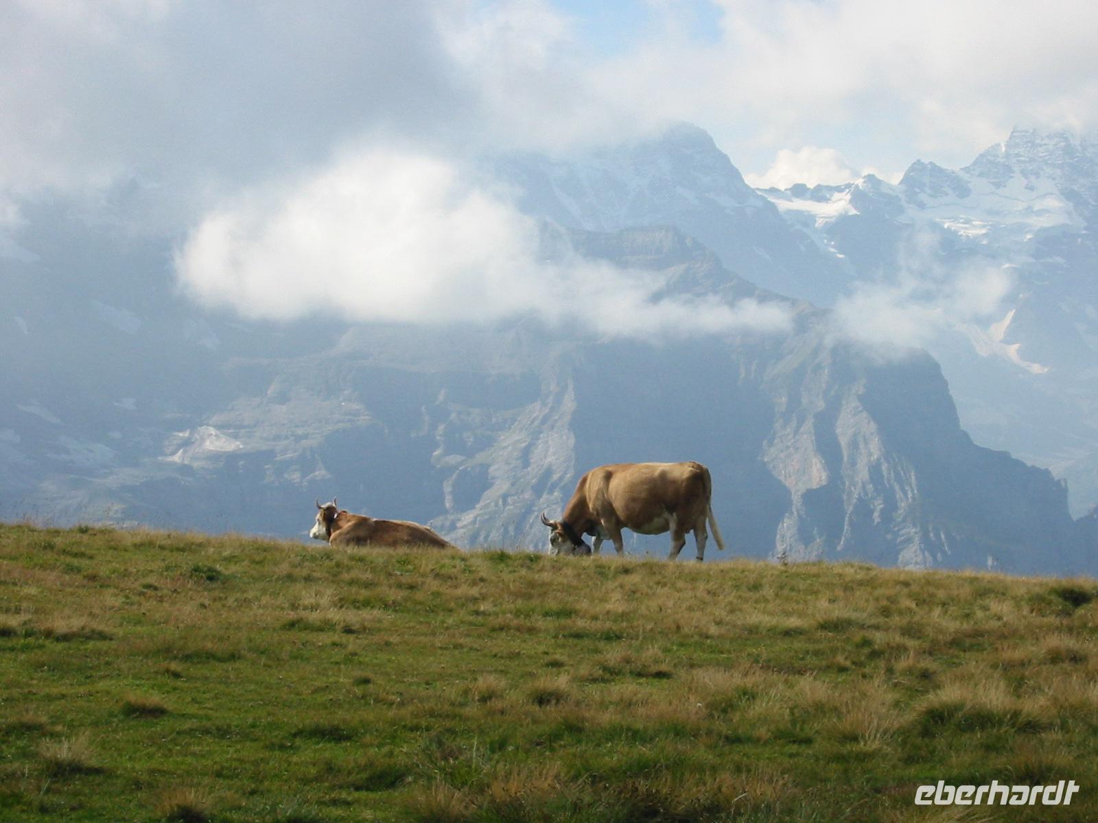 Nach der gemütlichen Stadtbesichtigung wartete bereits die „Stadt Thun", ein Fahrgastschiff, auf uns. Bei Kaffe und Kuchen schipperten wir zwei Stunden über den Thunersee und bewunderten die fantastische Landschaft, die wir sonst ja nur vom Bus aus gesehen hatten. Leider verging die Zeit viel zu schnell und wir stiegen in Interlaken aus. Der Bus kam und fuhr uns nach Grindelwald. Nach dem Abendbrot hieß es Koffer packen!
