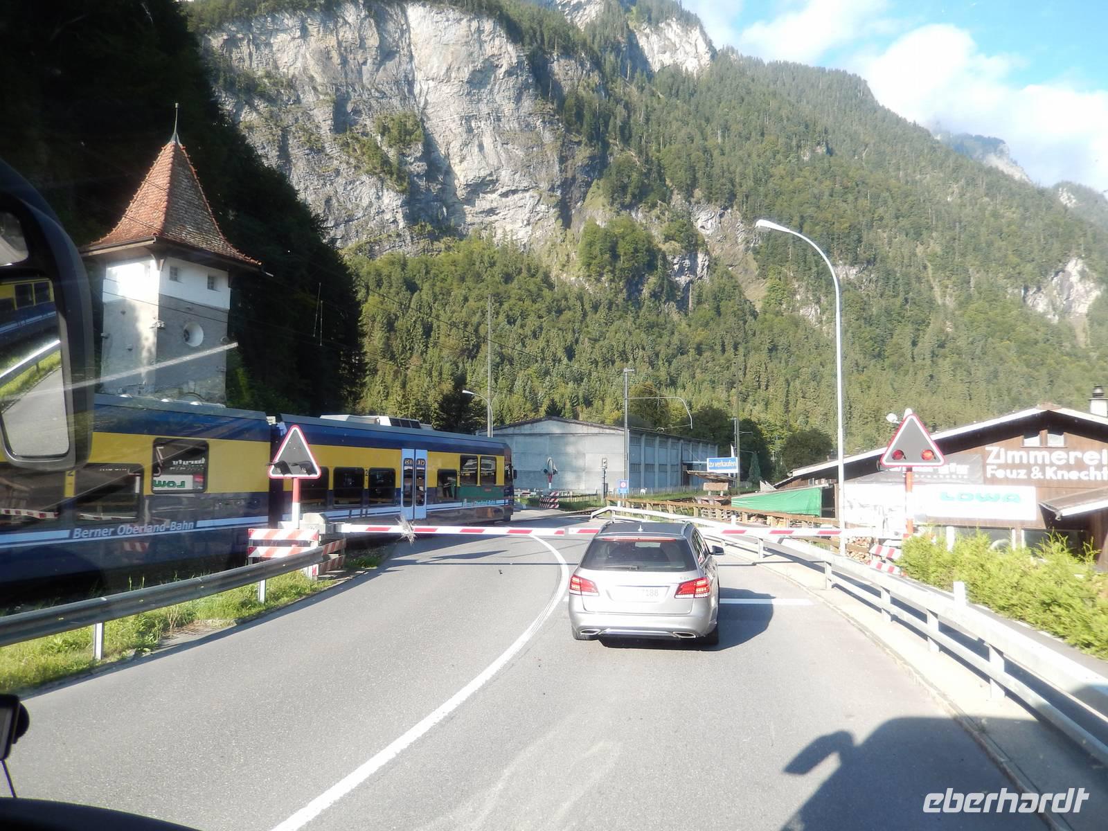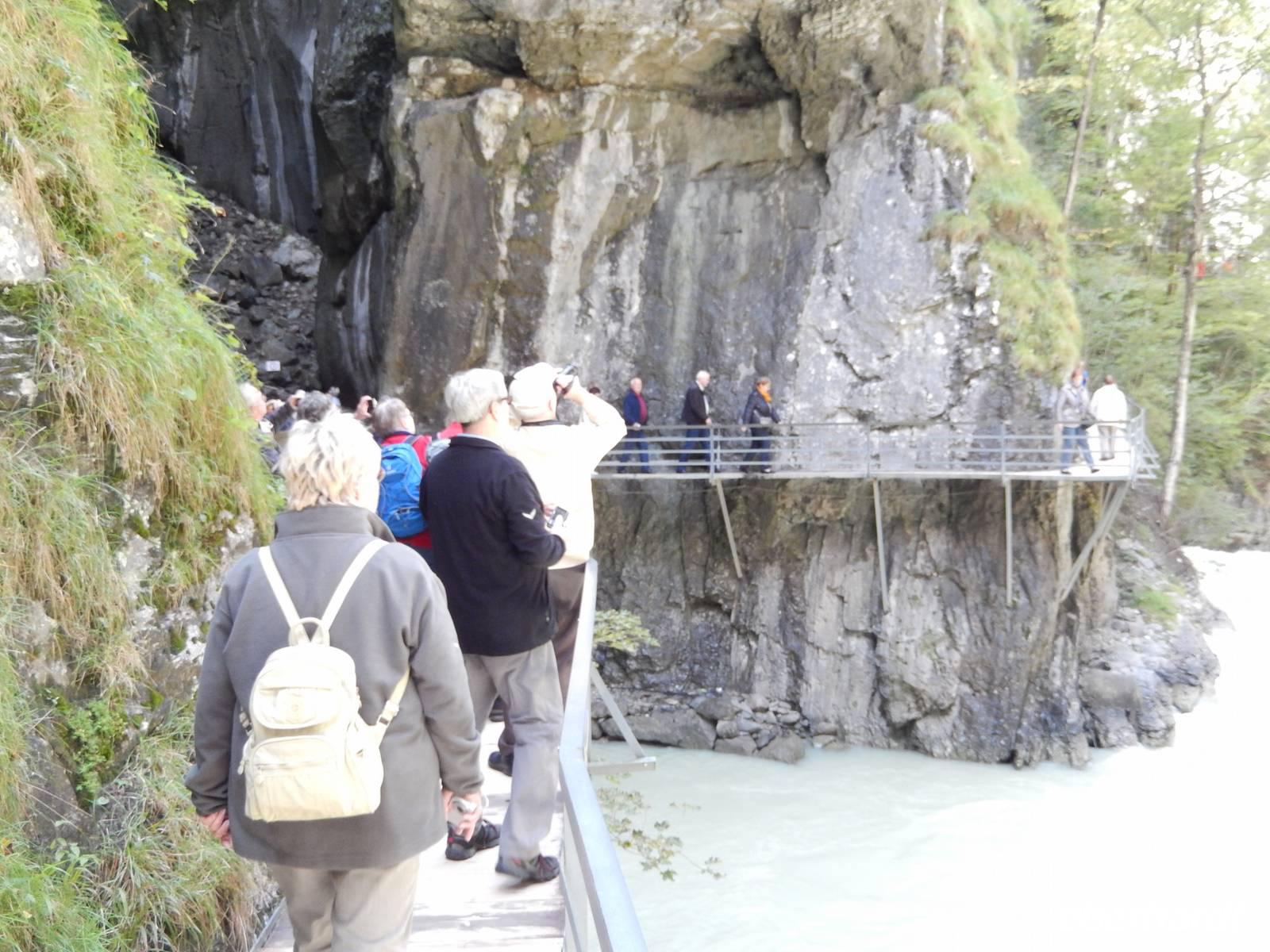 Sonnenschein, wohin man blickte. Fünf verschiedene Wetterberichte meldeten genauso viele verschiedene Wetterlagen. Trotzdem entschied sich das Wetter, uns zu verwöhnen. Bald nach dem Frühstück saßen wir im Bis und ab ging es in Richtung Aare und deren Schlucht. Dieter, unser Fahrer, und Stefan, unser Reiseleiter meinten, man müsse bei diesem Sonnenschein noch etwas mehr sehen. So fuhren sie vorerst an der Schlucht vorbei zur nächsten Passhöhe, von wo aus sich uns ein herrlicher Blick auf viele Viertausender und einige Murmeltiere eröffnete. Dann jedoch ging es zurück an die Aare. Wacker wanderten wir die gesamte Aareschlucht von Ost nach West hindurch, staunten über die Gewalt des Wassers, das am Ausfluss bis zu 12 Kilometer pro Stunde dahin rast. Nach so vielen Eindrücken schmeckte uns natürlich am Parkplatz eine Wurst sehr gut. Doch wir mussten bald weiter, denn Brienz lockte. Der kleine Ort am gleichnamigen See bot schöne Blicke entlang der Uferpromenade auf die Berge und das Wasser, ehe es weiter ging nach Interlaken, welches mit seiner Geschäftsstraße, vielen Fallschirmspringern, Cafés, schönen Häusern und interessanten einheimischen wie auch fremden Menschen zum Bummeln und Shoppen einlud, ehe es am Abend wieder zurück nach Grindelwald ging. Hier überraschte uns Stefan mit einem Begrüßungsdrink vor dem leckeren Abendessen. So ein gelungener Tag!