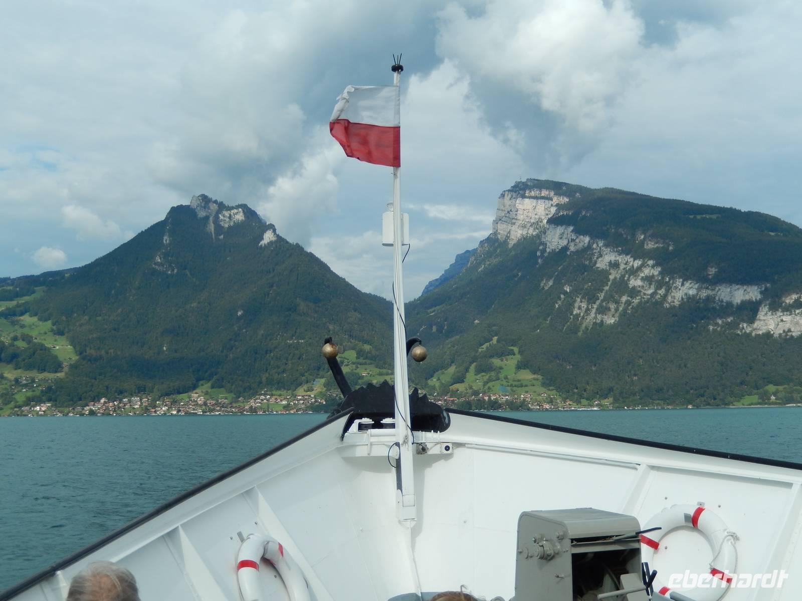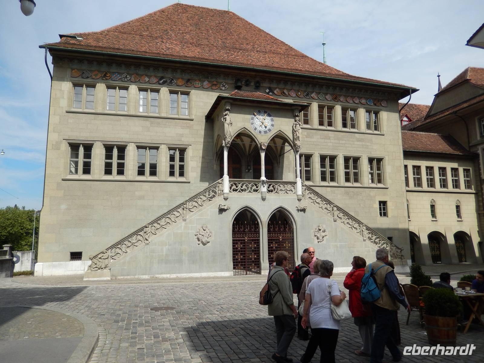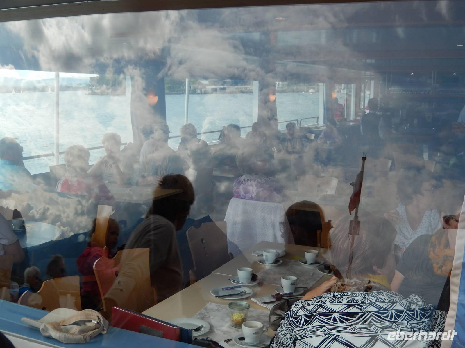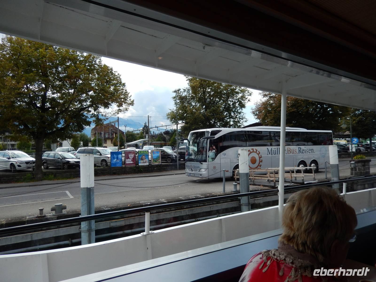 Einige gingen heute wandern, eroberten den Fürst, den Männlichen oder noch einmal die Kleine Scheidegg. Alle Anderen stiegen wieder in den Bus und ab ging es nach Bern, der Hauptstadt der Schweiz. Dort am Bärengraben angekommen, erwarteten uns bereits unsere Stadtführerinnen Ruth und Marie-Therese. Wir schauten gemeinsam vom Rosengarten auf die Berner Altstadt, fuhren und bummelten dann mit fachkundiger Begleitung durch die Stadt, schauten dem Glockenspiel zu und nutzten die Freizeit für kleine Einkäufe und individuelle Spaziergänge durch diese interessante und schöne Stadt, ehe wir uns bei den Bären am Bärengraben wiedertrafen, in den Bus stiegen und nach Thun an den Thuner See fuhren. Denn wir wollten die Berge und Ufer auch einmal vom Wasser aus betrachten. So stiegen wir bald auf unser Schiff, die ‚Stadt Thun' und wunderten uns sehr, als man uns gleich Kuchen und Kaffee bescherte. Wow! Das war aber eine gute Idee des Reiseveranstalters... Dankeschön! So bedacht machte die Fahrt gleich noch mehr Spaß. Viele Fotos der Berge, Burgen, Städte um uns herum entstanden, ehe wir in Interlaken West wieder von Bord gingen. Unser Bus fuhr wenige Minuten später vor und bald fuhren wir zurück nach Grindelwald zum Abendessen und einem weiteren kleinen Bummel durch die Stadt am Fuße des Eigers. Wieder ging ein schöner Tag zu Ende!
