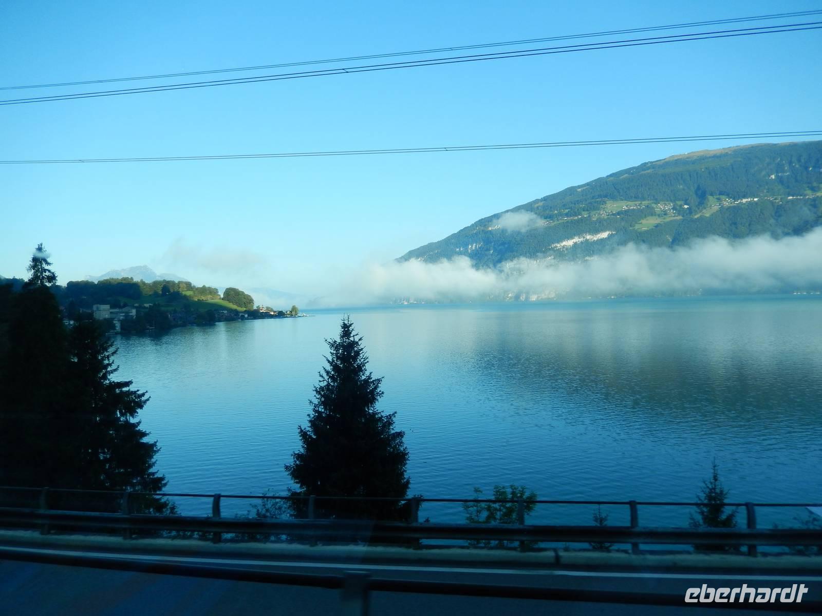 Über 900 Kilometer lagen vor uns, als der Bus am Dresdner Flughafen vorfuhr und die ersten Gäste einstiegen. Gut gerüstet nahm jeder seinen Platz ein und bald schon roch es um uns nach Kaffee, gab es, als wir schließlich hinter Himmelkron vollzählig waren, bald schon knackige Wiener Würstchen, Bockwürste und Suppen fürs leibliche Wohl, dazu einige Erklärungen von Reiseleiter Stefan zur Strecke und natürlich zu alledem, was uns in der Schweiz erwarten würde. Von Nürnberg ging es in Richtung Zürich, sogar mitten durch die Stadt hindurch und immer weiter in die Alpenregion hinein. Ein paar kurze Videos zur Schweizer Insel in Europa, Natur, Land und Menschen lockerten die lange Fahrt auf und so waren wir gar nicht zu geschafft, als wir schließlich gegen Abend bei Interlaken von der Autobahn abbogen und die schmale und steiler werdende Straße nach Grindelwald hinauffuhren. Im Hotel begrüßte man uns herzlich und kaum zwanzig Minuten nach unserer Ankunft konnten wir bereits unsere Zimmer im Schatten des Eigers beziehen und bereiteten uns auf das gemeinsame Abendessen vor. Ein langer und doch schöner Tag ging später nach einem kurzen Spaziergang durch den Ort an den vielen Uhren-, Kleidungs- und Souvenirläden vorbei zu Ende.