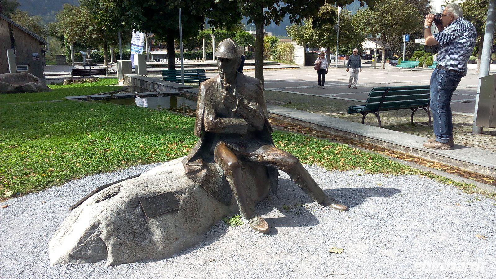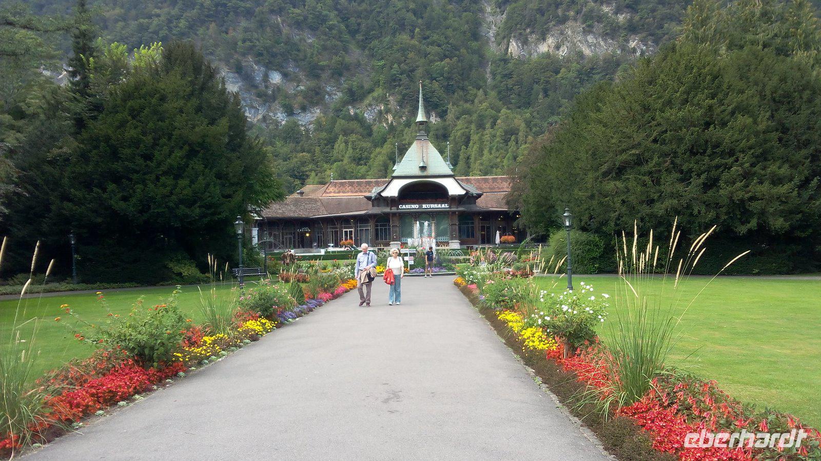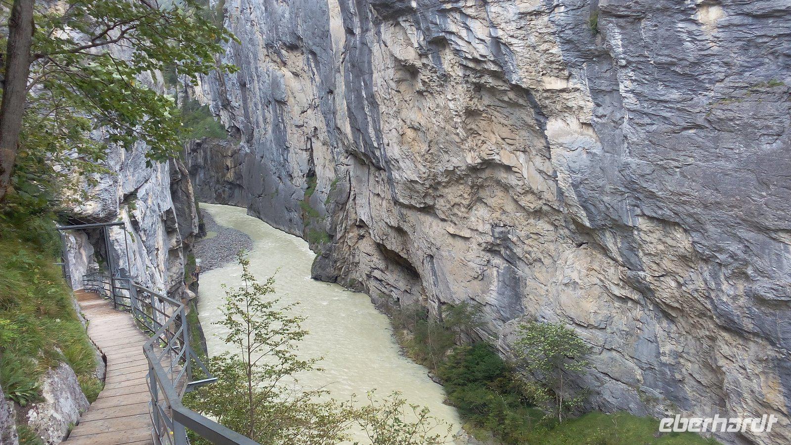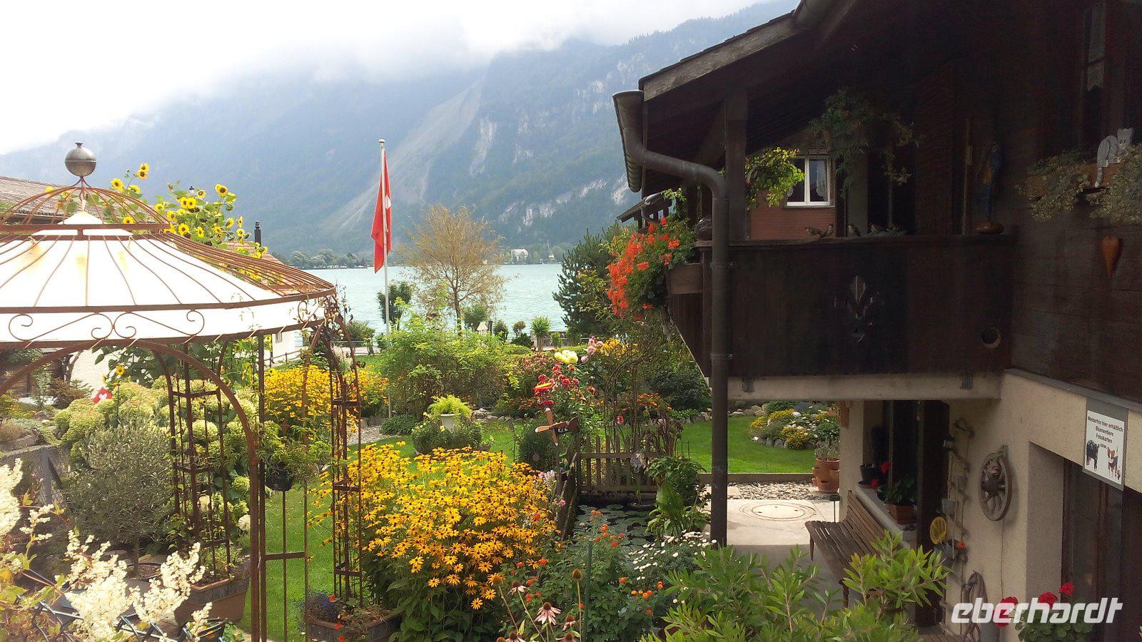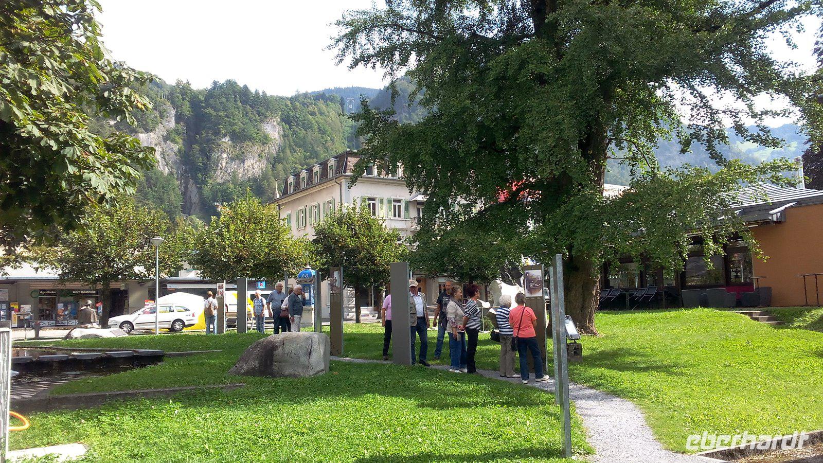 Wir können ausschlafen. Erst gegen 09.00 Uhr beginnen wir unsere kleine Rundfahrt. Von Grindelwald fahren wir ins Aaretal und entlang der Aare zur Aareschlucht. Die südöstlich von Meiringen liegt. Die Aare hat in den Felsriegel des Kirchet eine beeindruckende, ca. 1400 lange und bis zu 180 m tiefe und teils nur 1 m breite Schlucht gegraben. Wir benötigen ca. eine Stunde, um diese beeindruckende Schlucht zu durchwandern. Für heute war Regen angesagt und wir freuen uns, dass unsere kleine Wanderung durch die Schlucht von Sonnenstrahlen begleitet wird. Am Ende der Schlucht wartet Dieter auf uns und wir fahren nach Meiringen. Besondere Beachtung findet die Englische Kirche, in der ein Museum für den berühmten Meisterdetektiv Sherlock Holms untergebracht ist. Der obere Reichenbachfall war der Ort an dem Sherlock Holms im "Der letzte Fall" zu Tode gekommen ist. Danach fahren wir an den Brienzer See und planen einen Aufenthalt im Hauptort des Sees in Brienz. Hier ist der Mittelpunkt der Oberländer Holzschnitzkunst und wir nehmen uns Zeit, uns davon zu überzeugen. Unser Bus steht an der Schiffsanlegestelle, gegenüber der Rothornbahn. Die Rothornbahn ist natürlich Mittelpunkt der Eisenbahnfans. Einige von uns besuchen aber auch die Schnitzerei Jobin. Mit Blick auf die schönen Promenaden am See fahren wir gegen Mittag weiter nach Interlaken. Die Hauptachse des Ortes ist der Höheweg. Am Casino gegenüber der Höhematte steigen wir aus dem Bus. Freizeit ist angesagt und jeder erkundet den Ort nach seinen Wünschen. Einige Gäste spazieren entlang der Aare nach Unterseen mit den schönen historischen Bauten. Zurück in Interlaken geht es vorbei an der Höhematte ein zentraler Punkt, wo man bei schönem Wetter viele Paragleiter beobachten kann. Hoch über uns können wir auch das Restaurant auf der Harder Kulm erkennen, dem Hausberg von Interlaken. Nach einem Kaffee und dem Bummel entlang dem Höheweg fahren wir zurück zum Hotel. Wir haben noch Zeit, um Grindelwald zu erkunden.