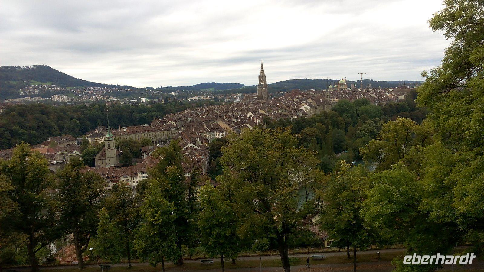 Wir fahren hoch über die Stadt zum ehemaligen Friedhof und dem heutigen Rosengarten. Er ist ein großzügig angelegter Park mit wunderschöner Aussicht auf die Altstadt und die Aareschleife. Im Park befinden sich 220 verschiedene Rosensorten, 200 Irisarten und Moorbeeten mit 28 verschiedenen Rhododendren.
