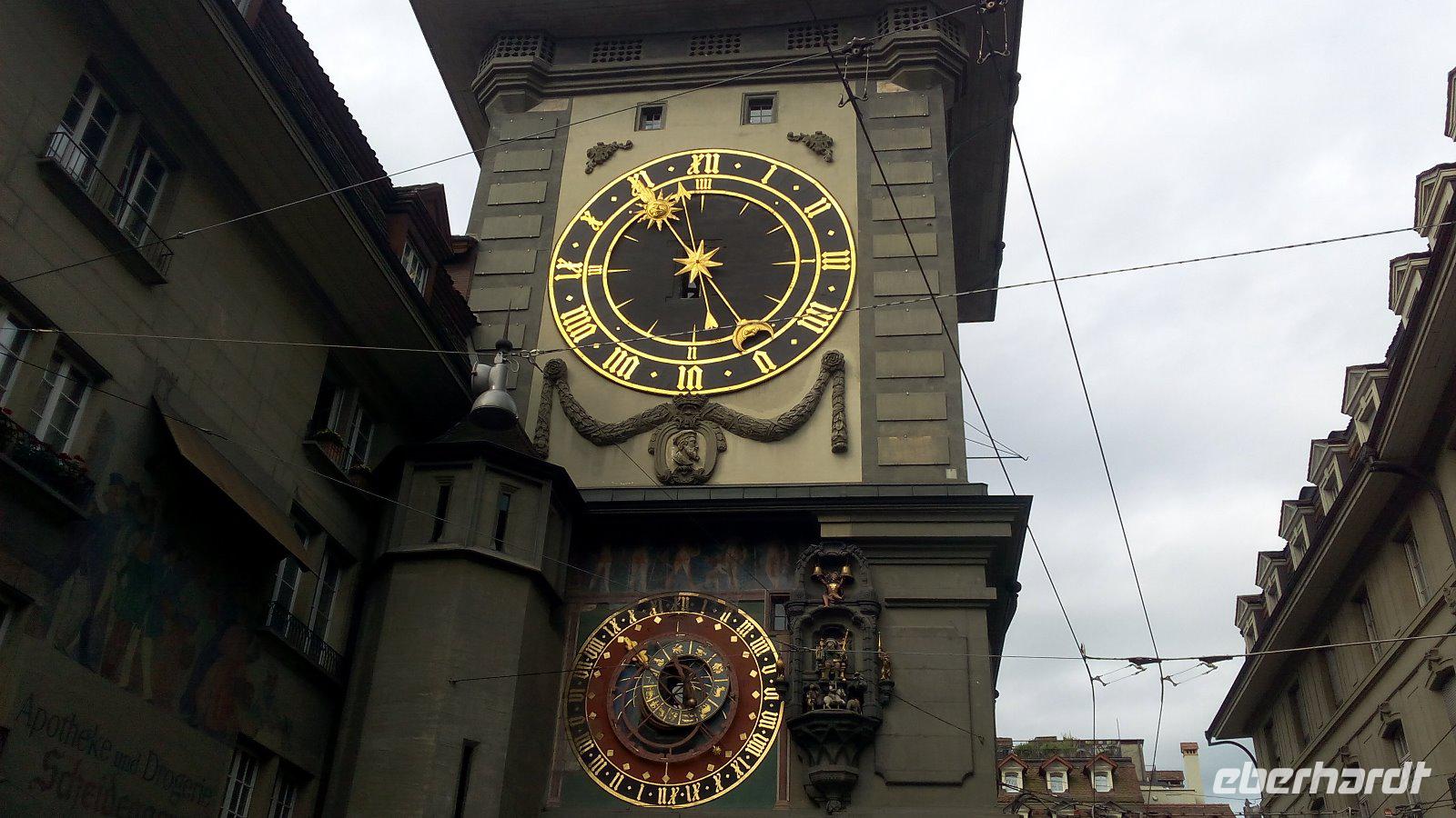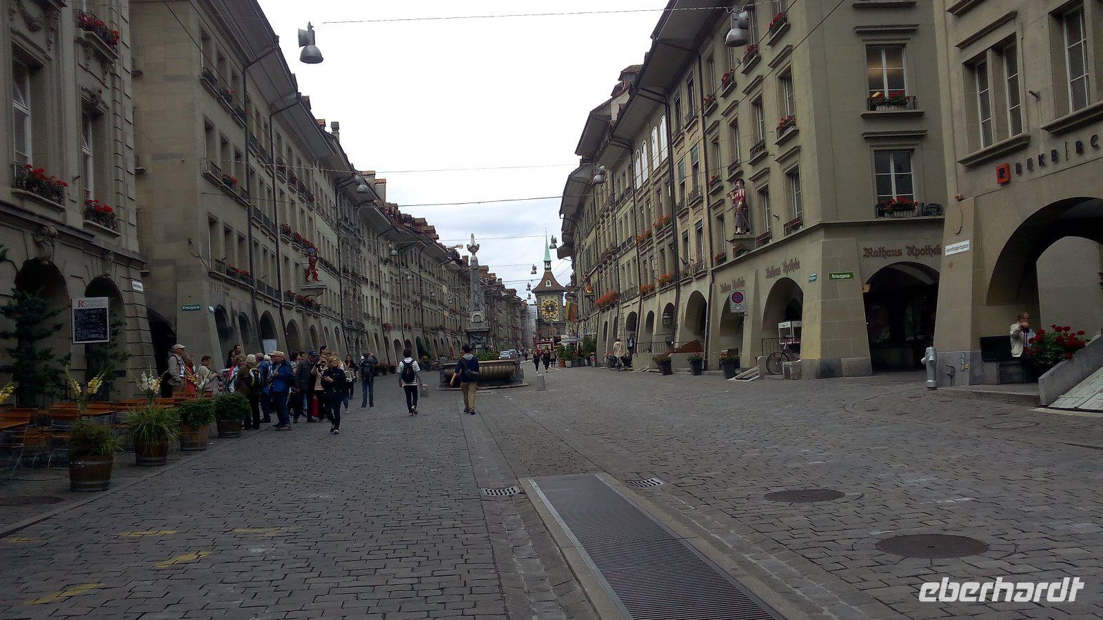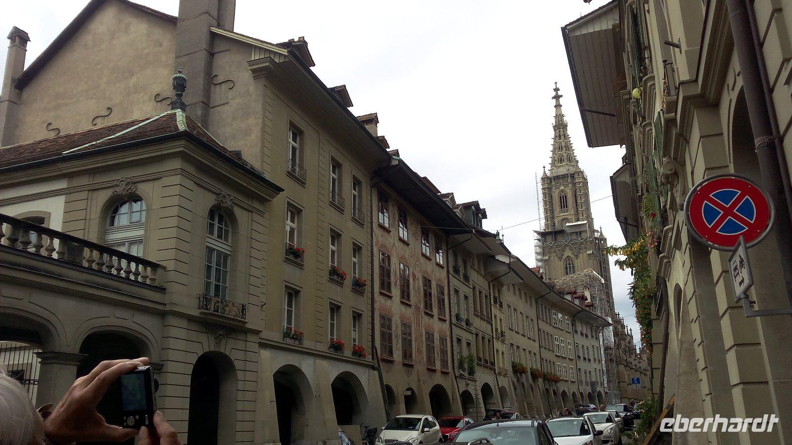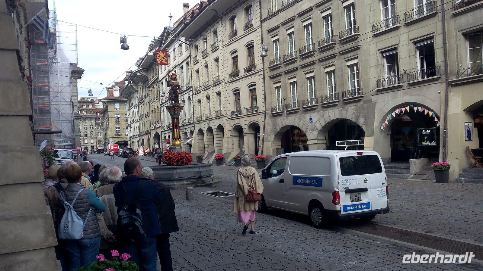 Die Stadtführung zu Fuß führt uns entlang des Bundesplatzes , über den Bärenplatz, Marktgasse, Kramgasse, bevor es zum Münster geht, stehen wir 11.00 Uhr am Zeitglockenturm (Zytglogge) und beobachten das Figurenspiel. Unterwegs erhalten wir Informationen zum politischen Geschehen in der Stadt. 12% der Beschäftigten sind in der Verwaltung tätig. Interessant sind in der Stadt aber auch die 11 Brunnen.