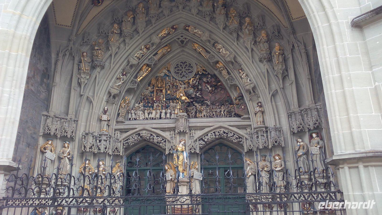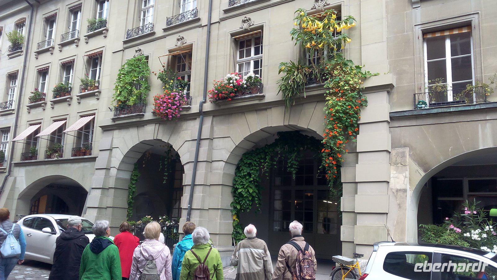 Auf unseren Rundgang durch die Stadt sind die vielen Lauben auffallend, die einen Rundgang auch bei Regen angenehm machen. Am Einstein-Haus werden wir an Albert Einstein erinnert, der von 1902-1909 als Angestellter des Patentamtes in Bern lebte. Zum Abschluss der Führung stehen wir vor dem spätgotischen Münster St. Vinzenz mit seinem beeindruckenden Hauptportal. Nach zwei Stunden verabschieden wir uns von Ruth und Marie -Therese, die uns durch die einzigartige Altstadt, die 1983 in das UNESCO-Welterbe aufgenommen wurde, so unterhaltsam geführt haben.