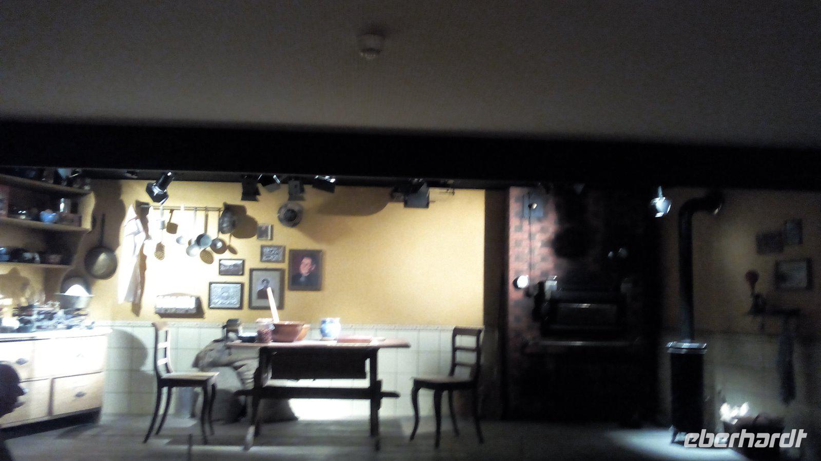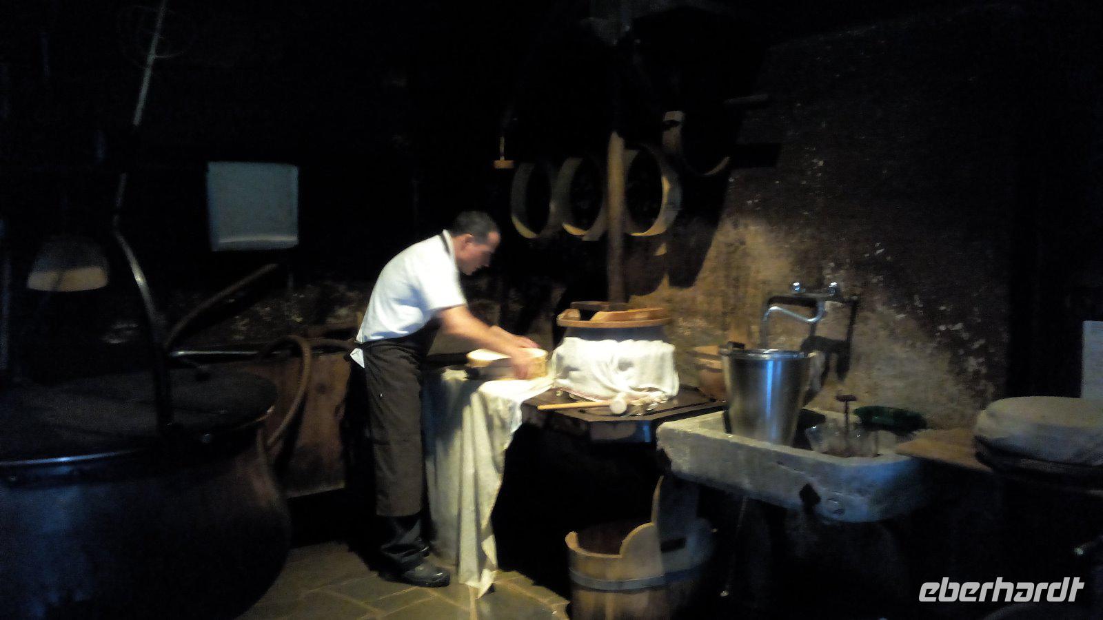 Wir sehen in der Schaukäserei die historische aber auch die heutige Produktion des Käses.