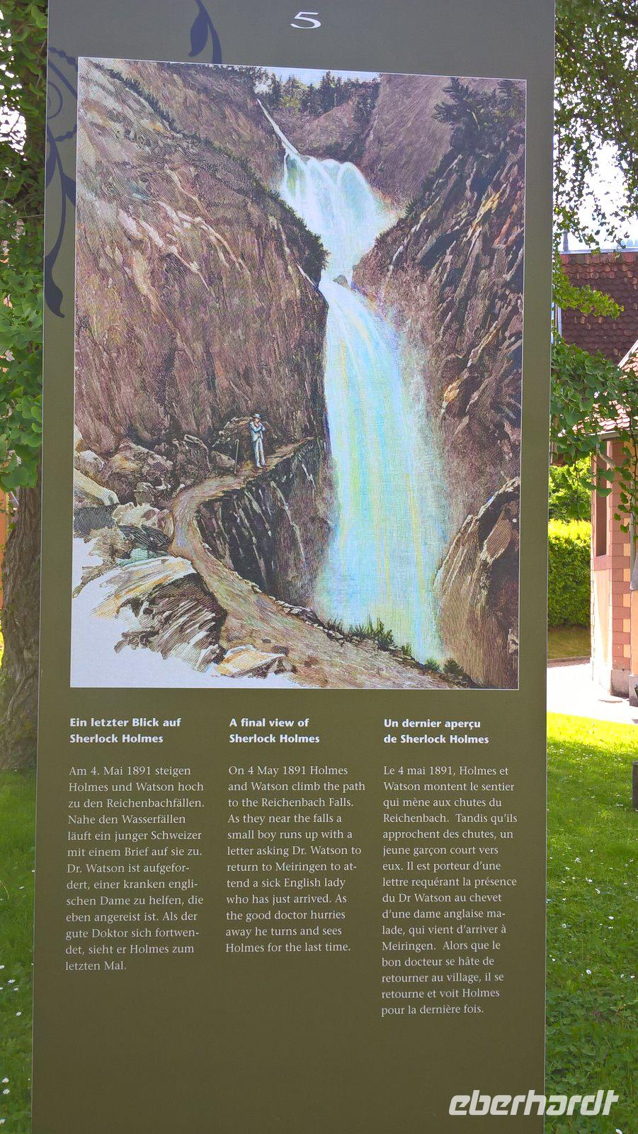 Danach fahren wir weiter nach Meiringen, um bei einem kurzen Stop die Geschichte des berühmten Detektivs Sherlok Holmes zu studieren.