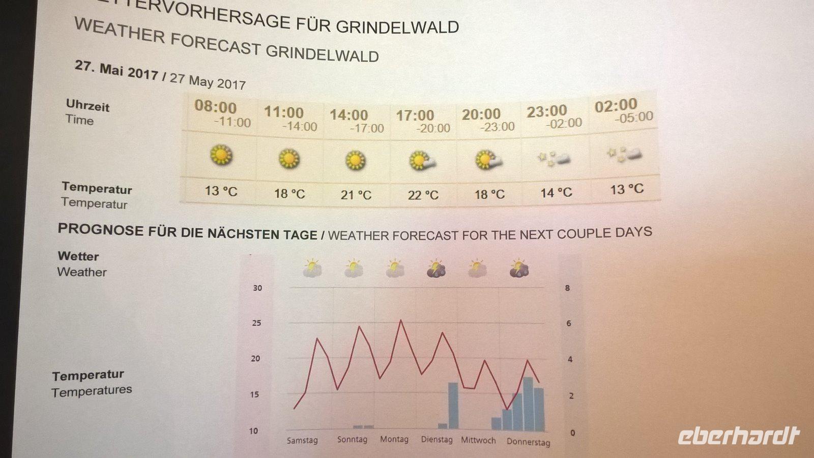 Am nächsten Tag beim Frühstück schwärmen alle von dem herrlichen Ausblick. Grindelwald liegt im Berner Oberland zwischen Eiger, Wetterhorn, Fiescherwand und Faulhorn. Mit einer Fläche von 171.1 km² ist Grindelwald die drittgrösste Gemeinde des Kantons Bern. Höchster Punkt bildet mit 4.107 m ü. M. der Mönch, der tiefste Punkt liegt auf 720 m ü. M.